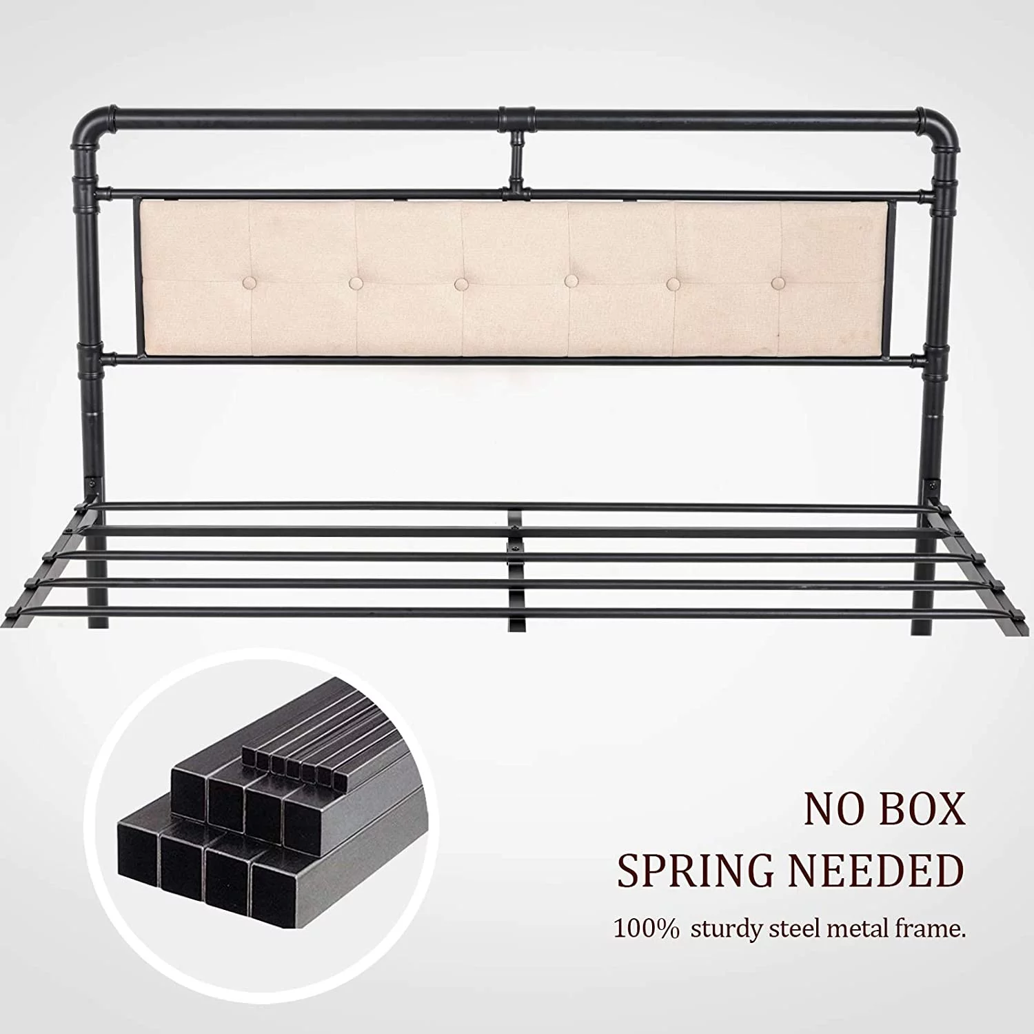 Javlergo Metal Platform Bed Frame with Upholstered Tufted Headboard and Footboard Beige - Full