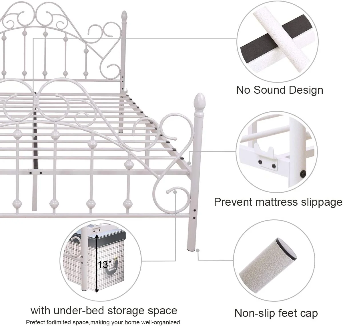 CoSoTower Queen Size Metal Bed Frame with Headboard and Footboard White