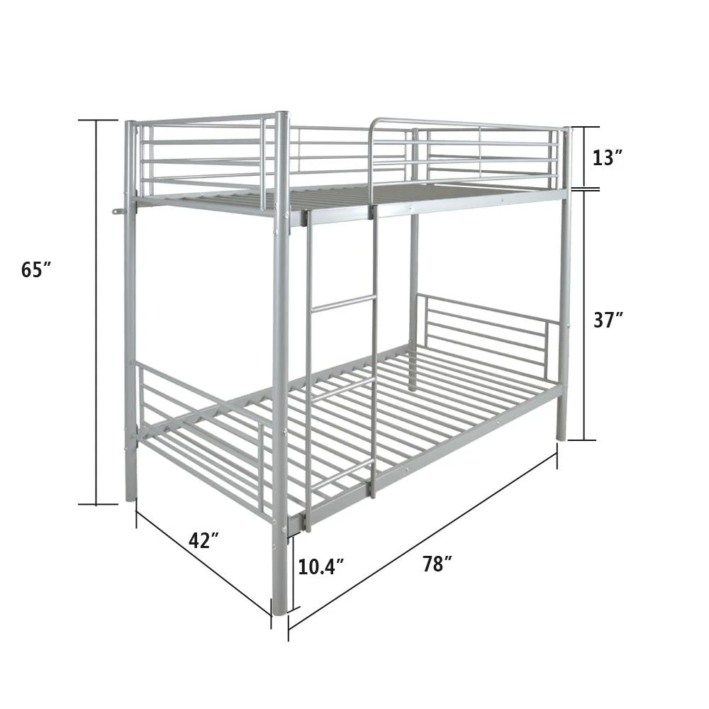 Ktaxon Twin over Twin Metal Bunk Bed, Sturdy Frame with Metal Slats For Bedroom,Gray