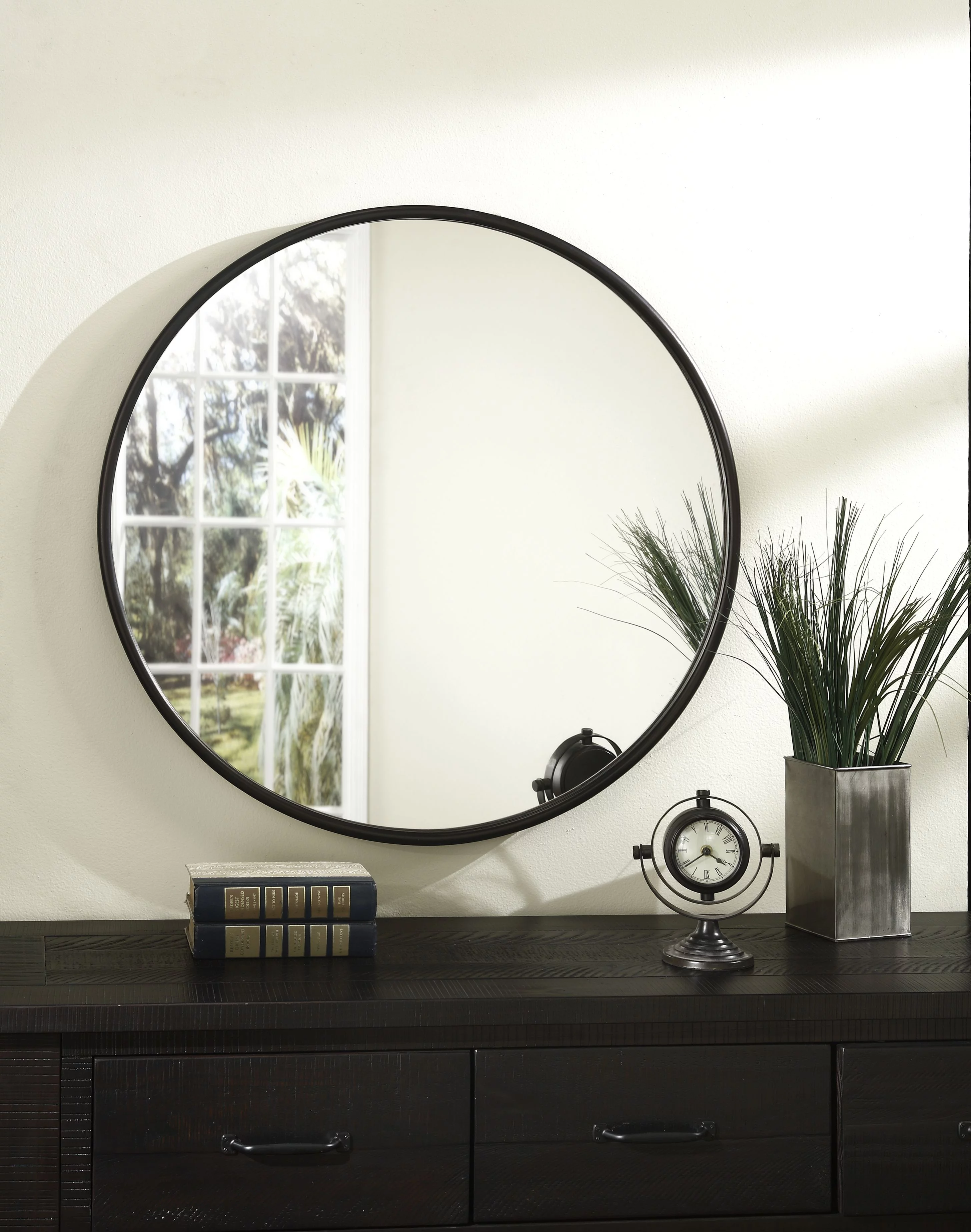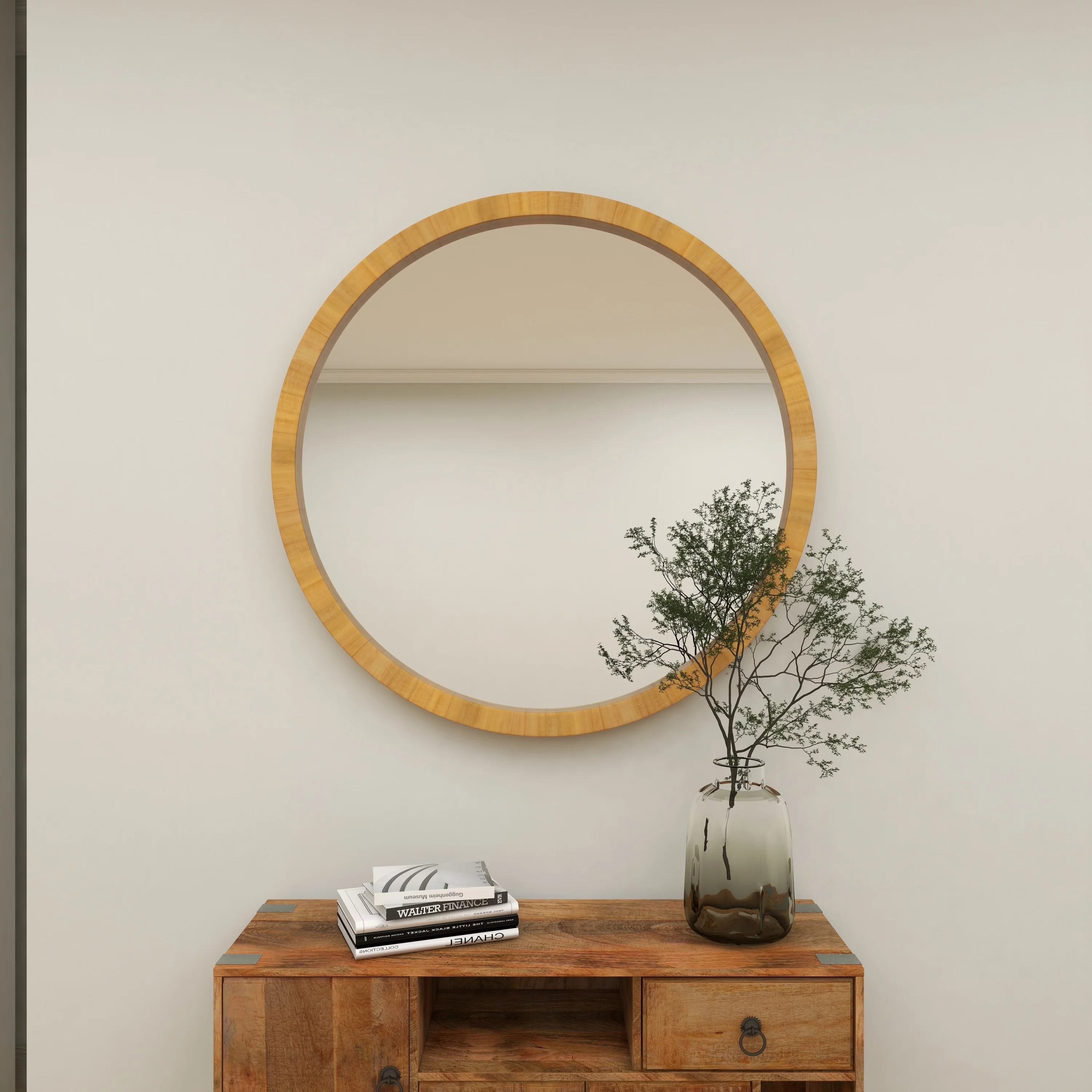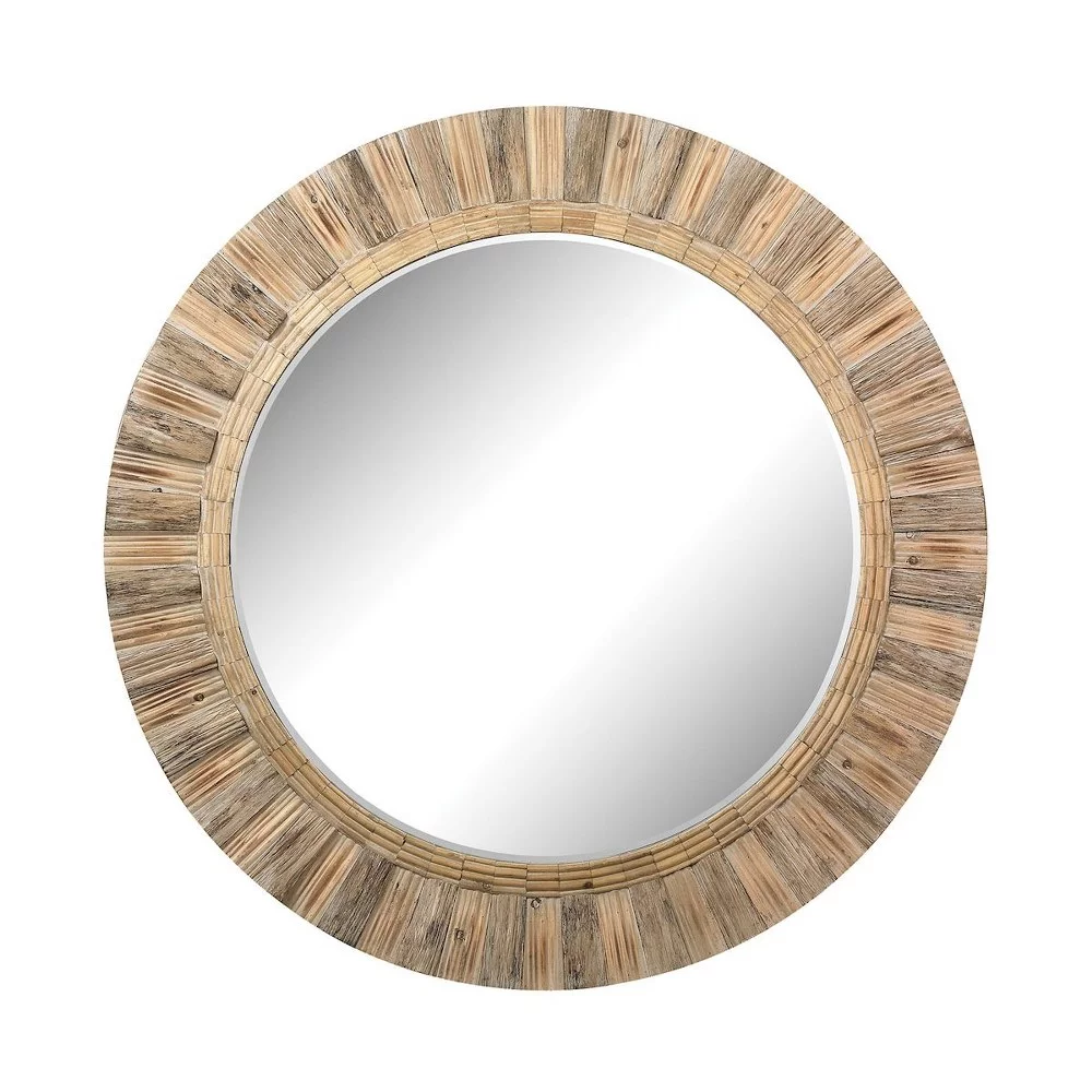 DecMode Contemporary Round Decorative Wall Mirror with Natural Brown Finish, 40"D