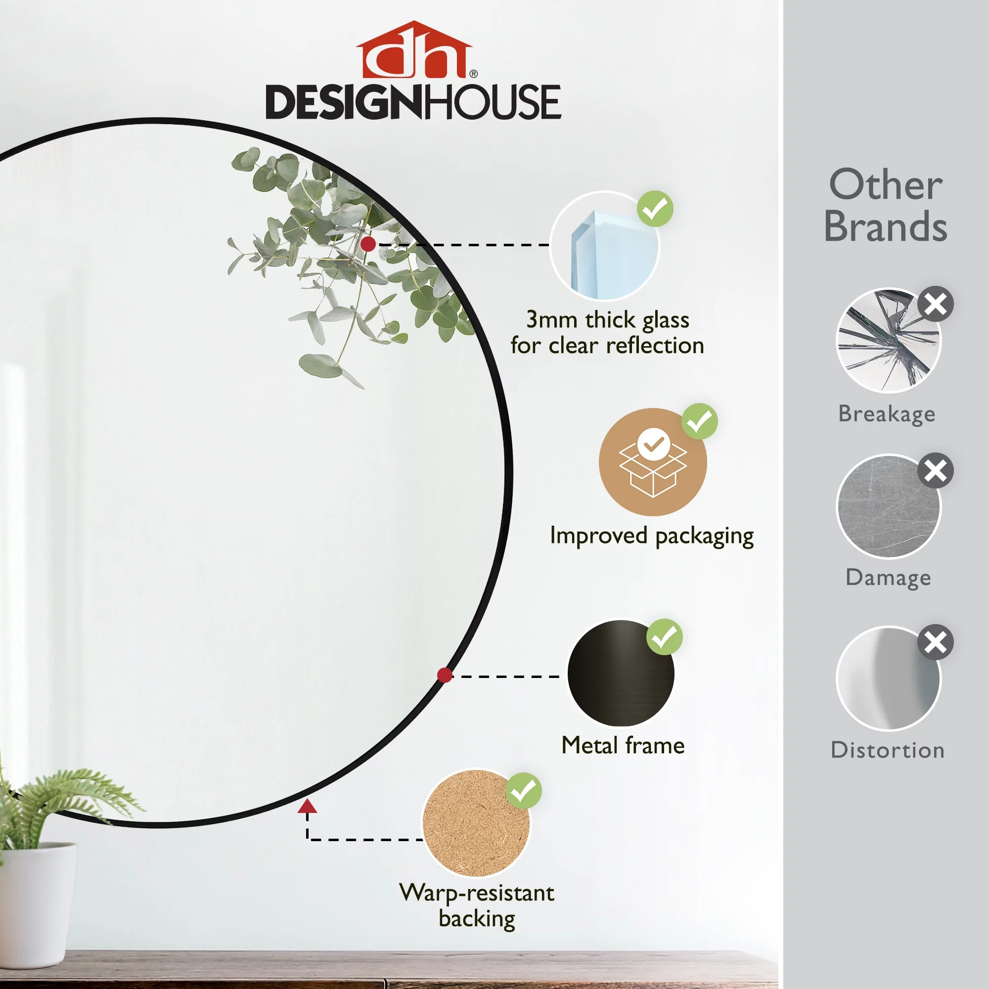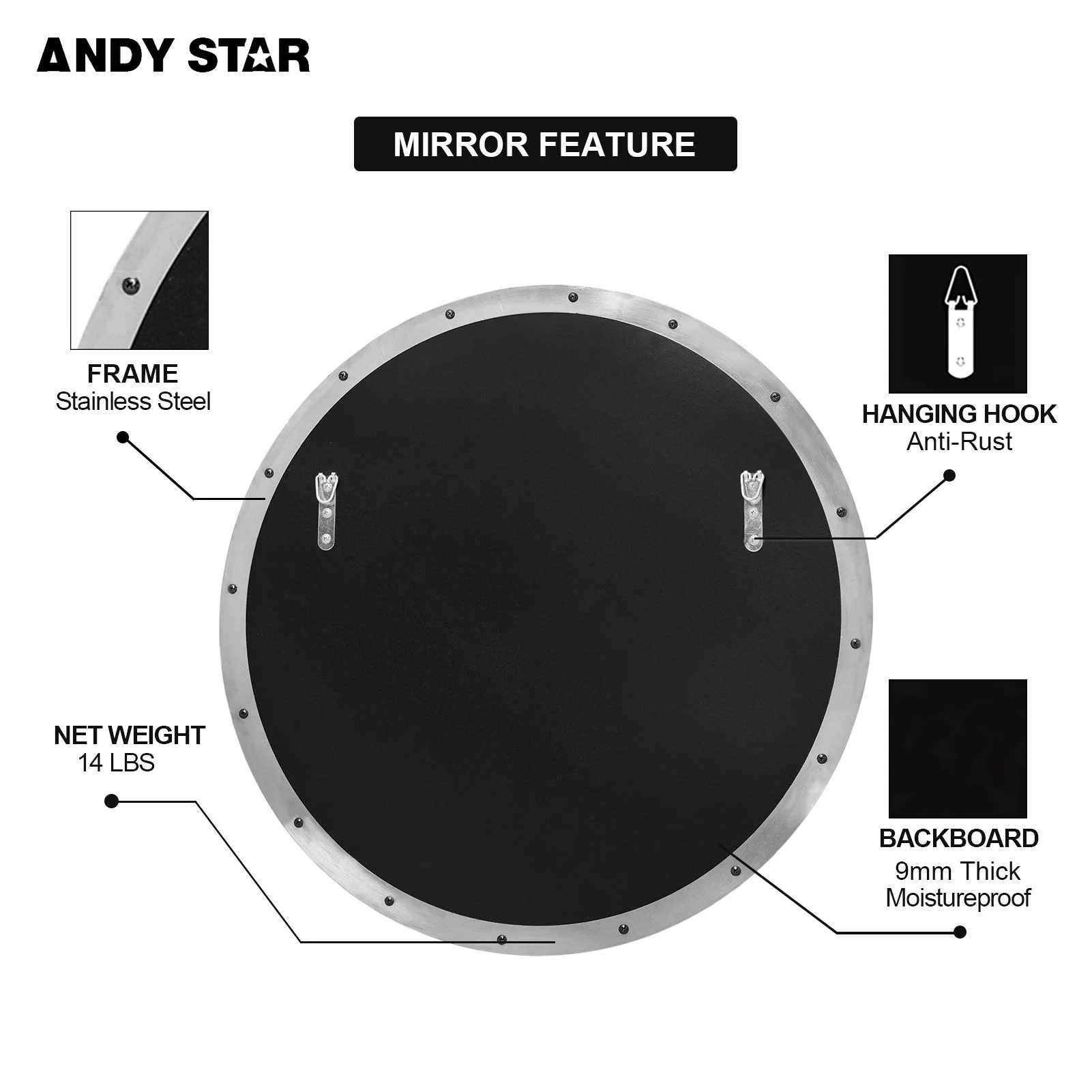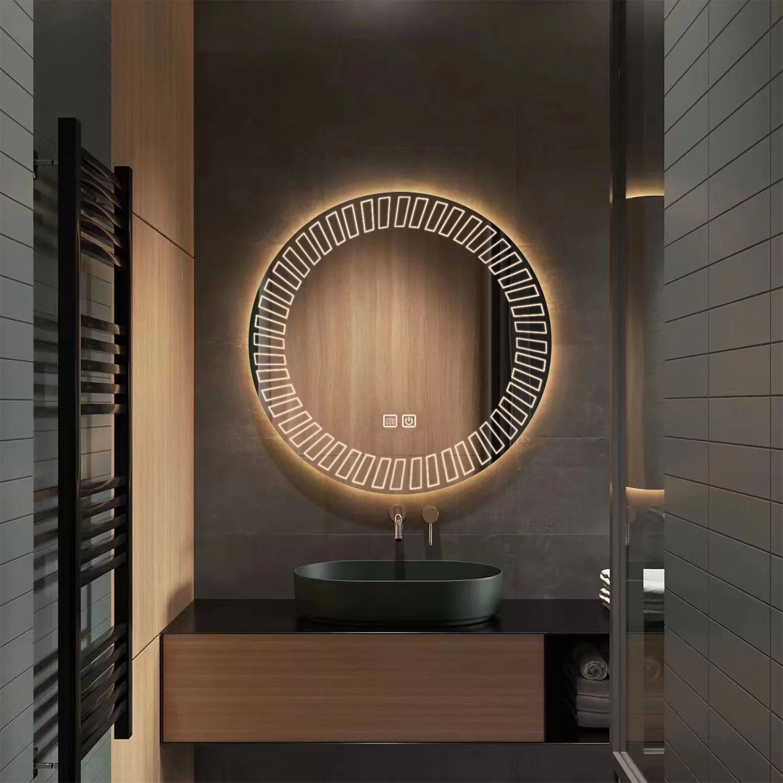 DecMode Contemporary Round Decorative Wall Mirror with Natural Brown Finish, 40"D
