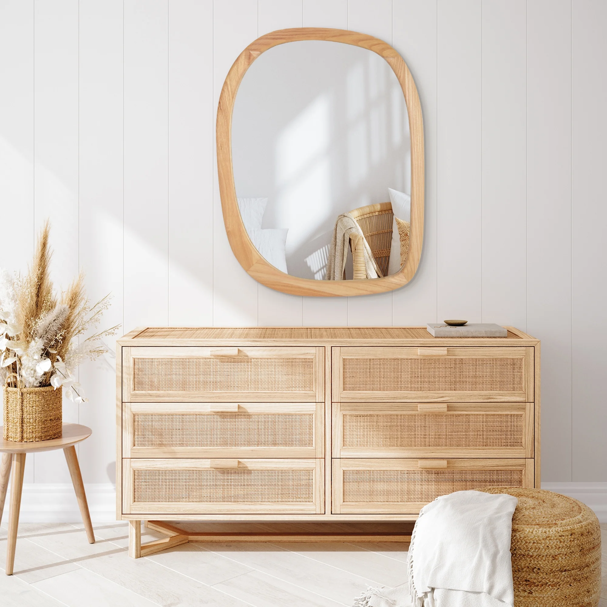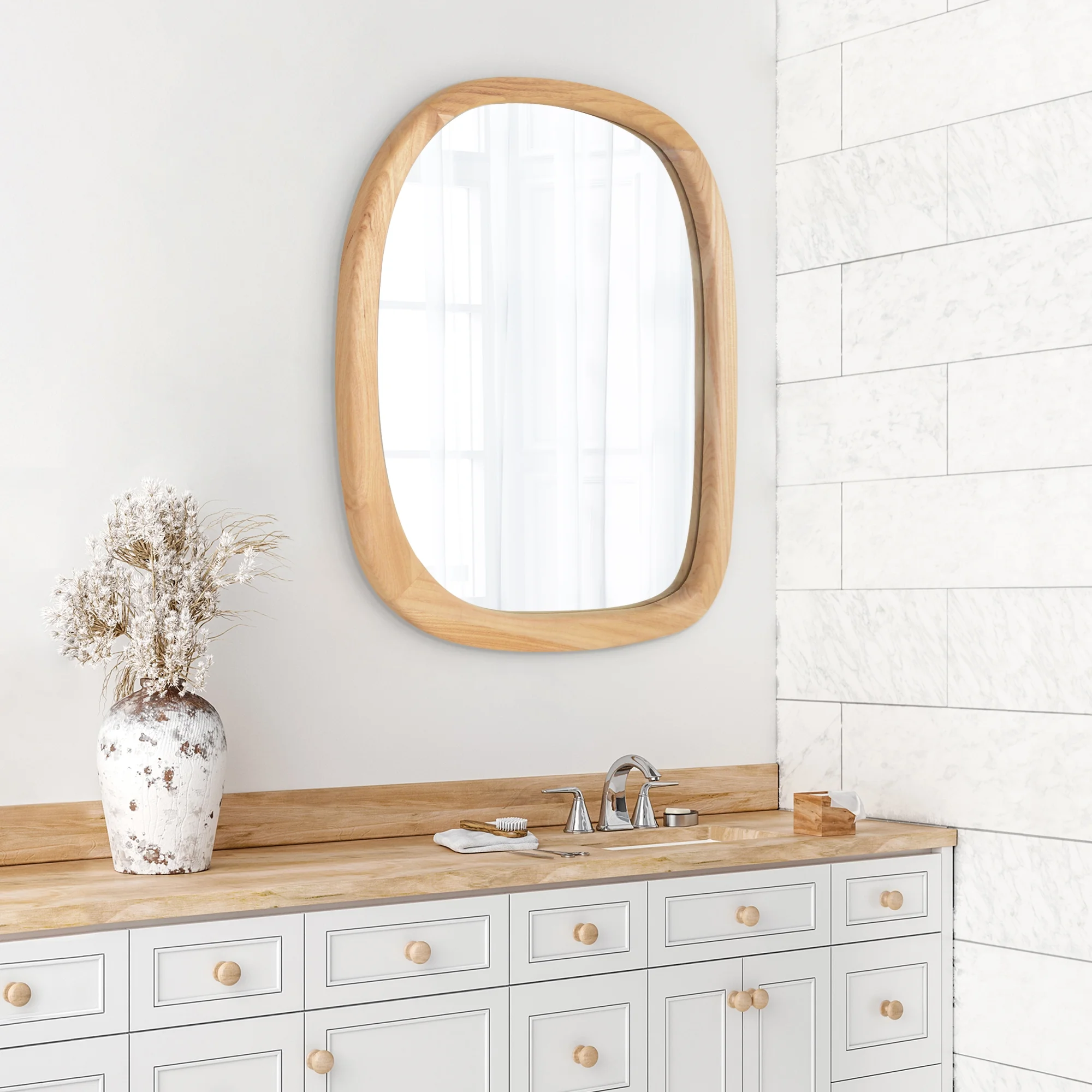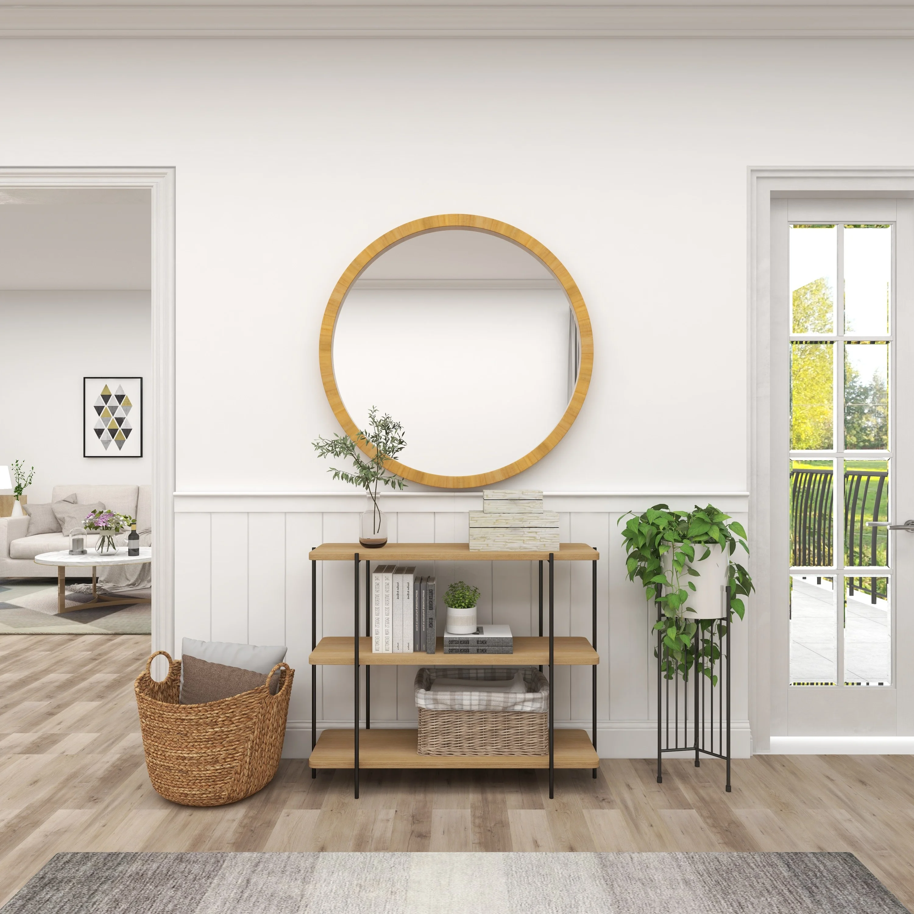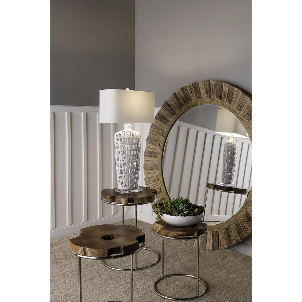 Modern Farmhouse Handcrafted Artistic Style Glamour Round Mirror with Natural Driftwood Frame 64 inches W 64 inches H Bailey Street Home