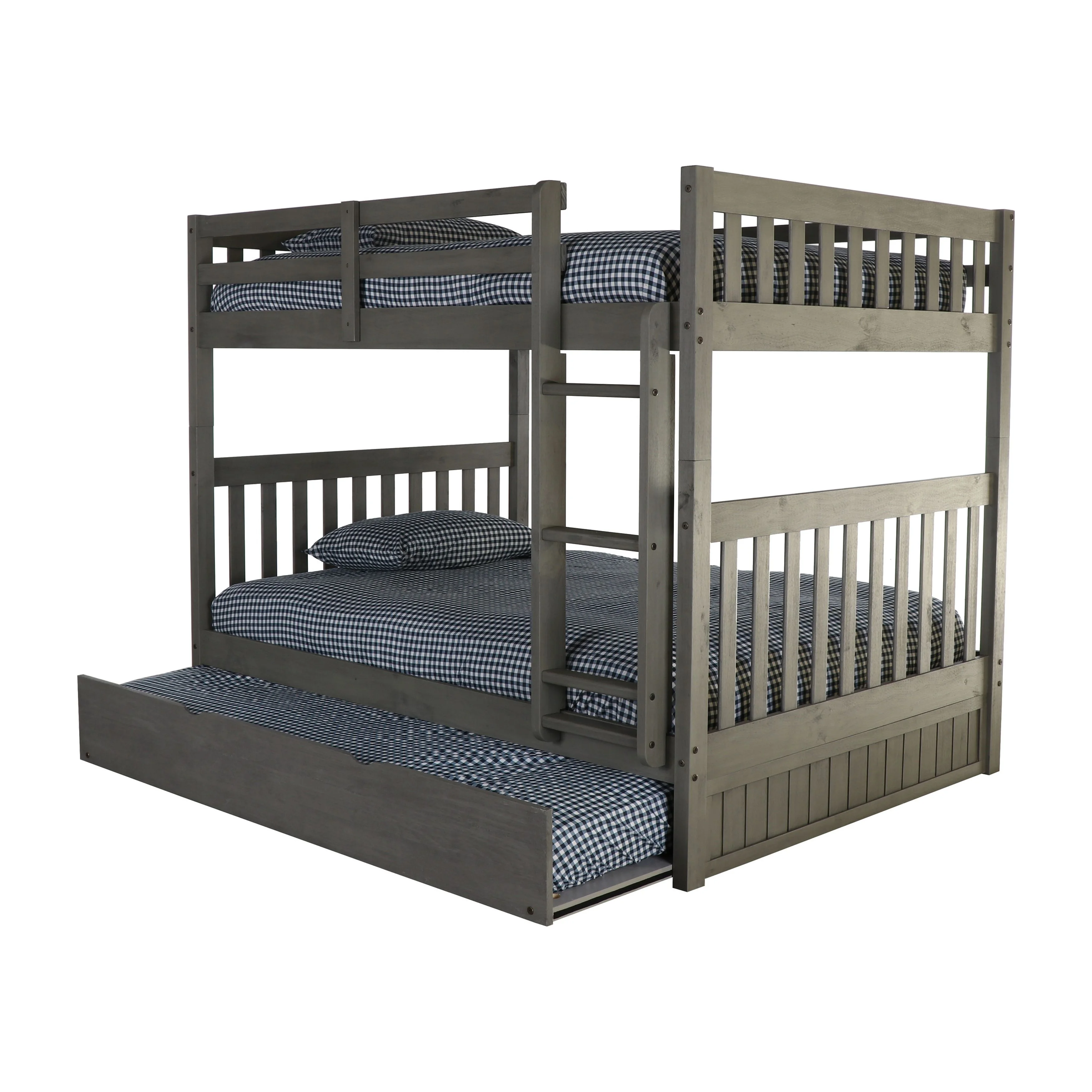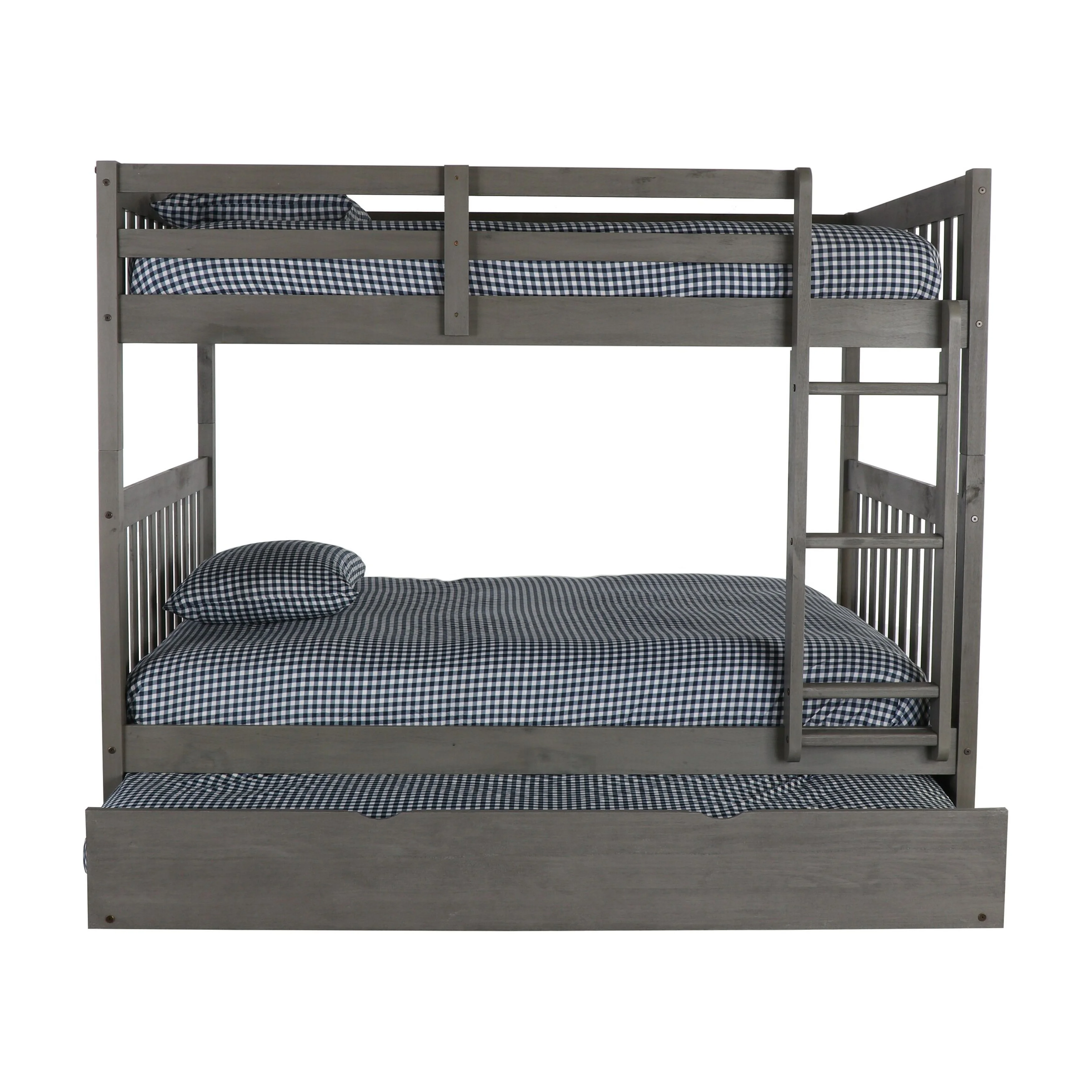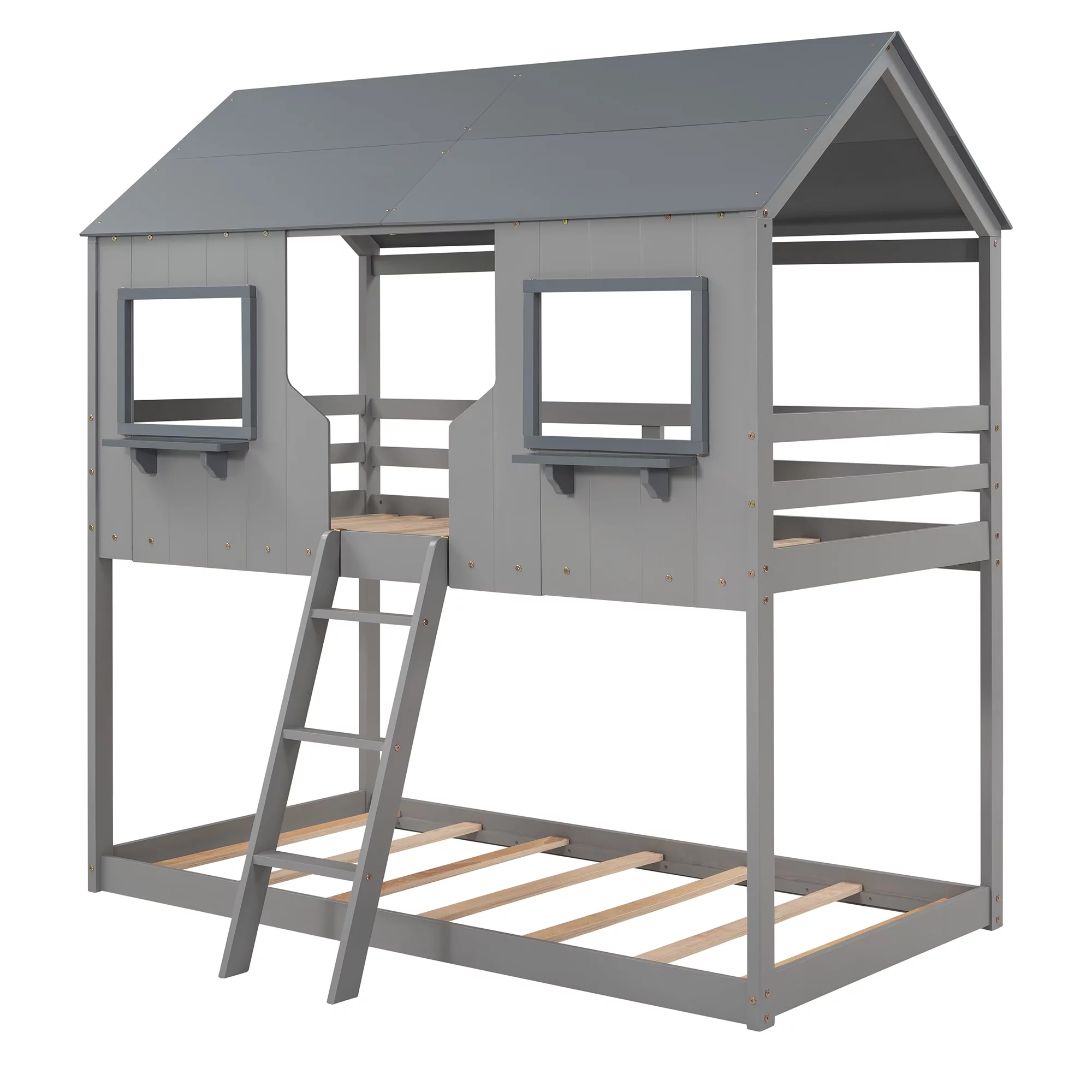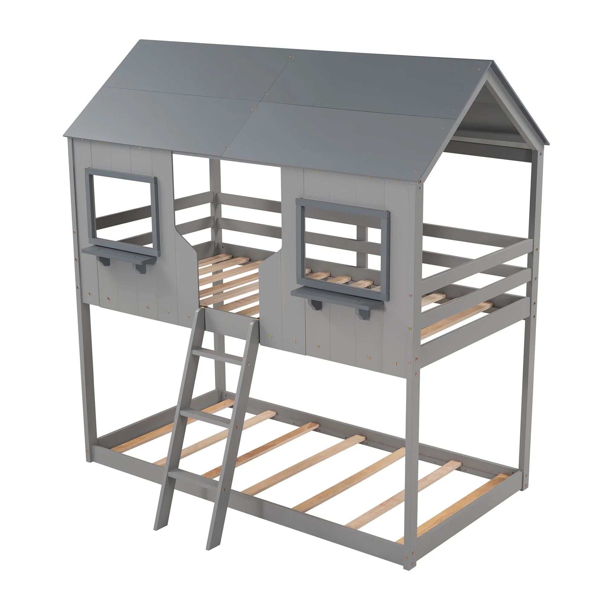 Twin Over Twin Bunk Bed Wood Bed with Roof, Window, Guardrail, Ladder (Gray)