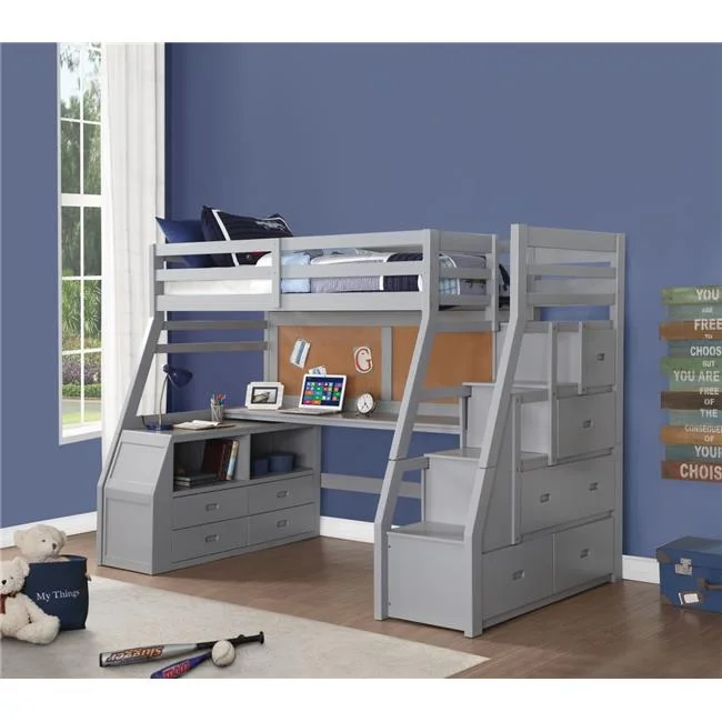 Solid Wood Twin Size Loft Bed with Ladder(Gray)(OLD SKU: WF191903AAE)