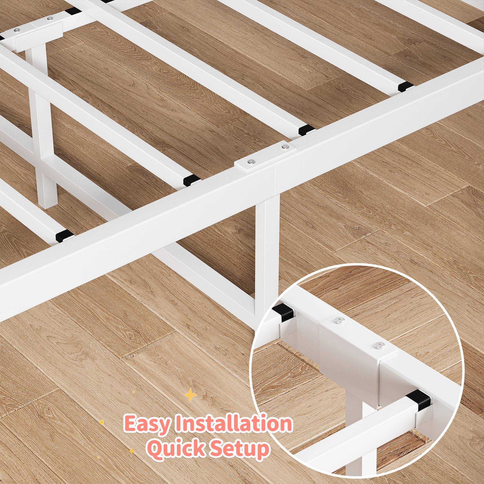 OWSOO Metal Bed Frame with Headboard, Exceptional Sturdiness and Stability, Black, 39.4"x78.7"