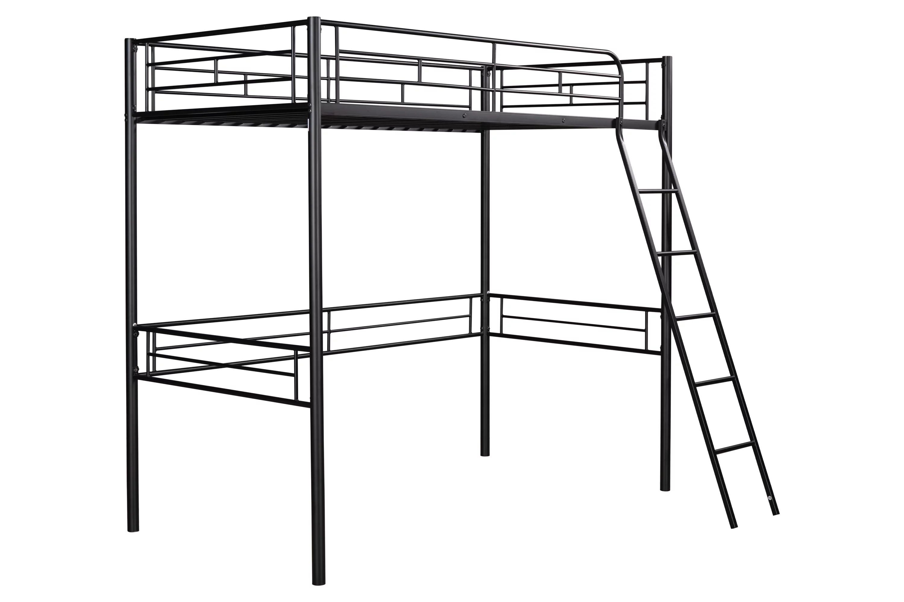 Twin Metal Loft Bed with 2 Shelves and one Desk ,BLACK(Old SKU: MF281206AAB)
