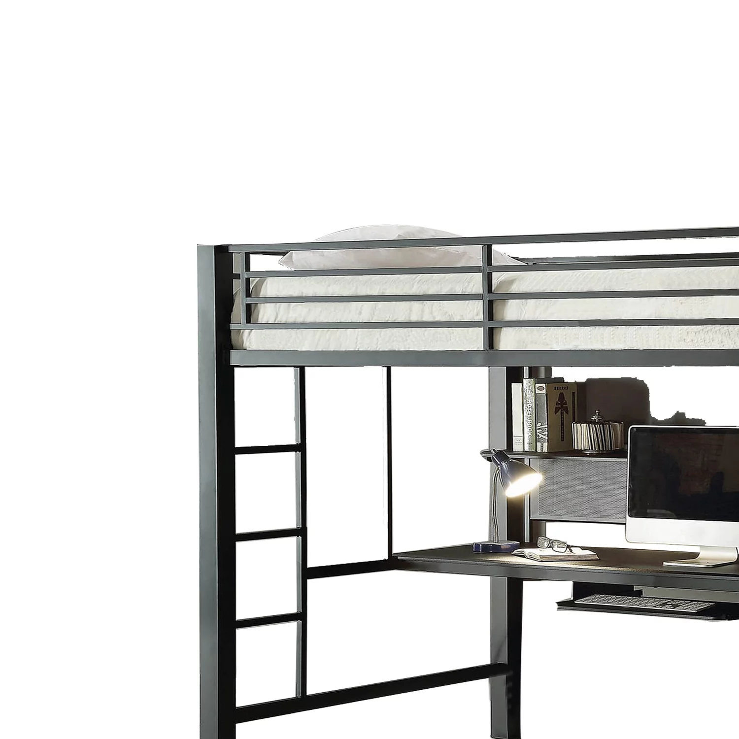 Euroco Metal Twin Size Loft Bed with Desk, Shelf and Clothes Hanger, Desktop for Storage, Black & White