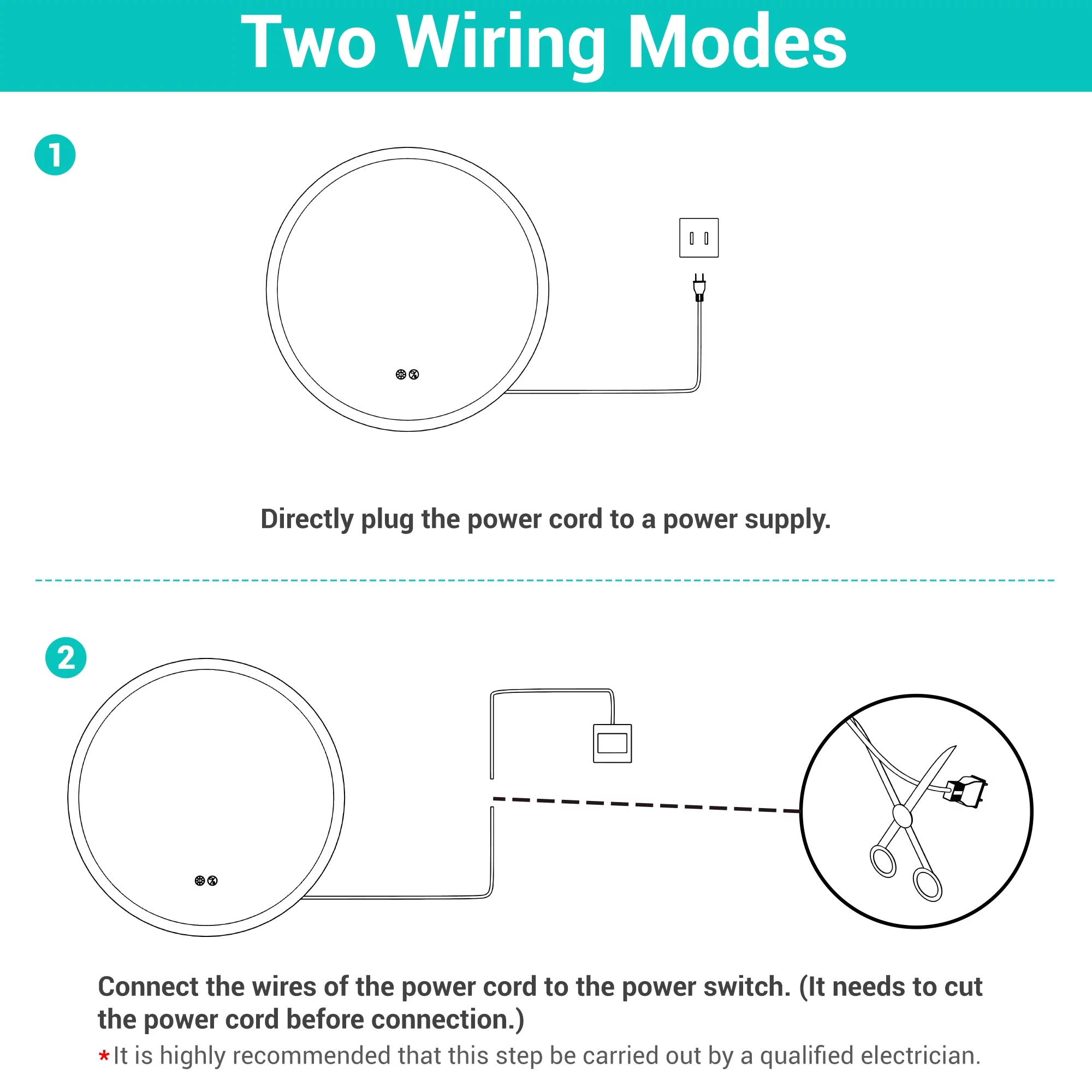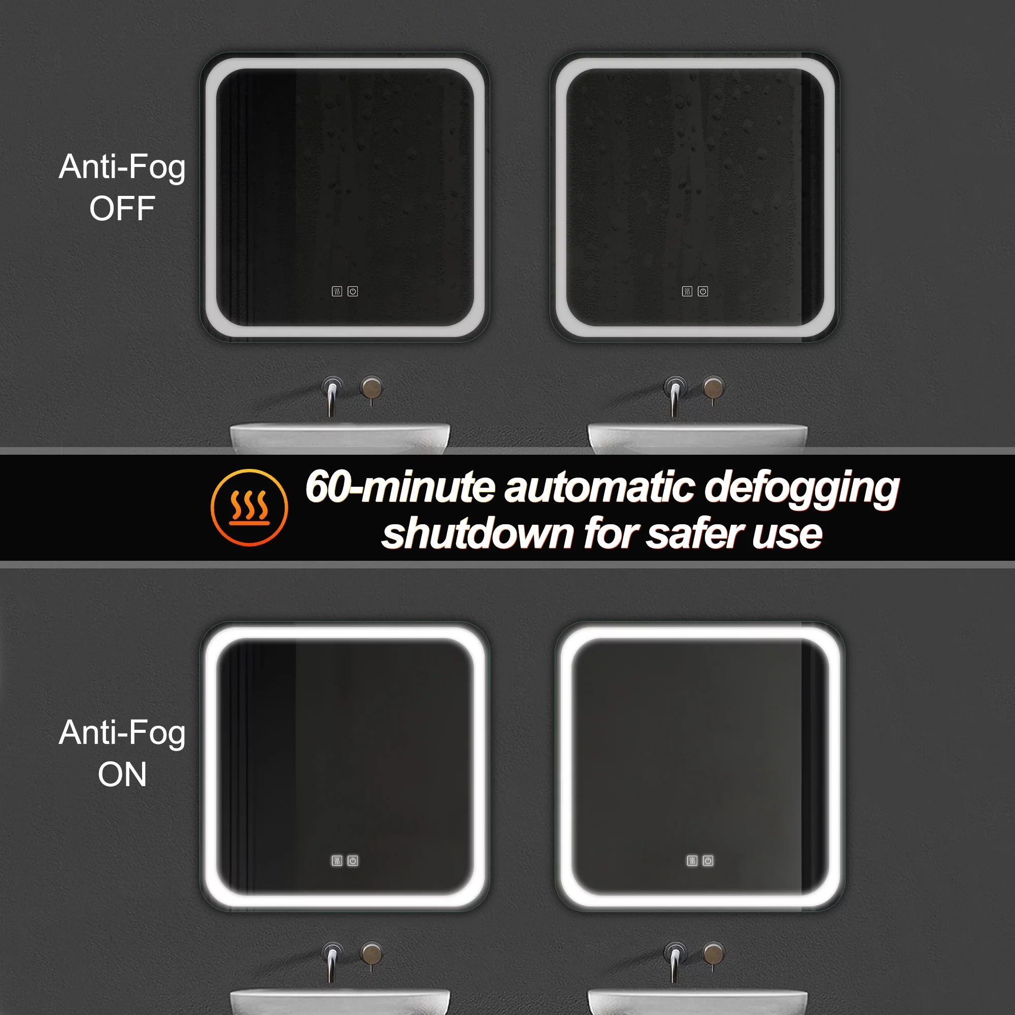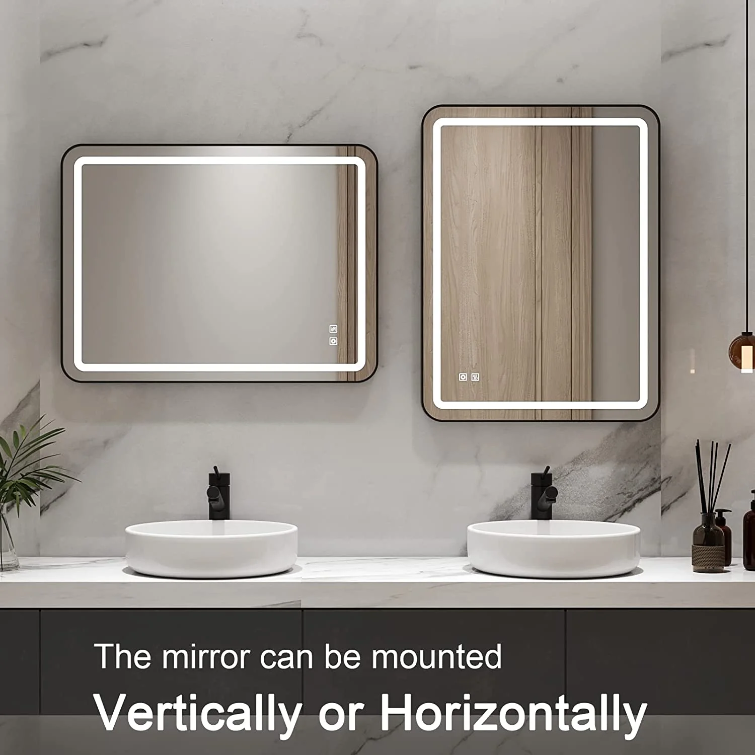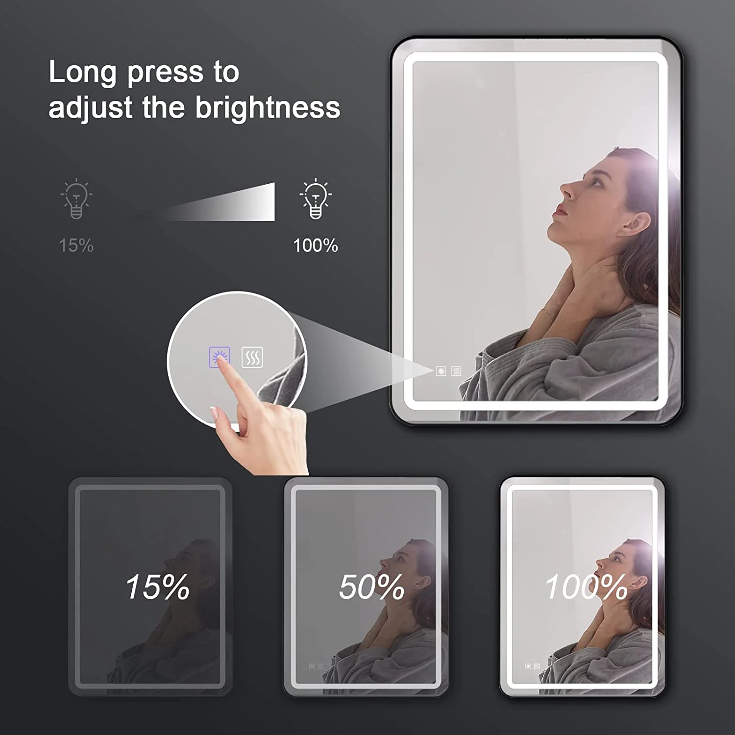 Aquaterior 22" Round LED Bathroom Mirror,Anti-Fog Dimmable IP65 Touch Switch