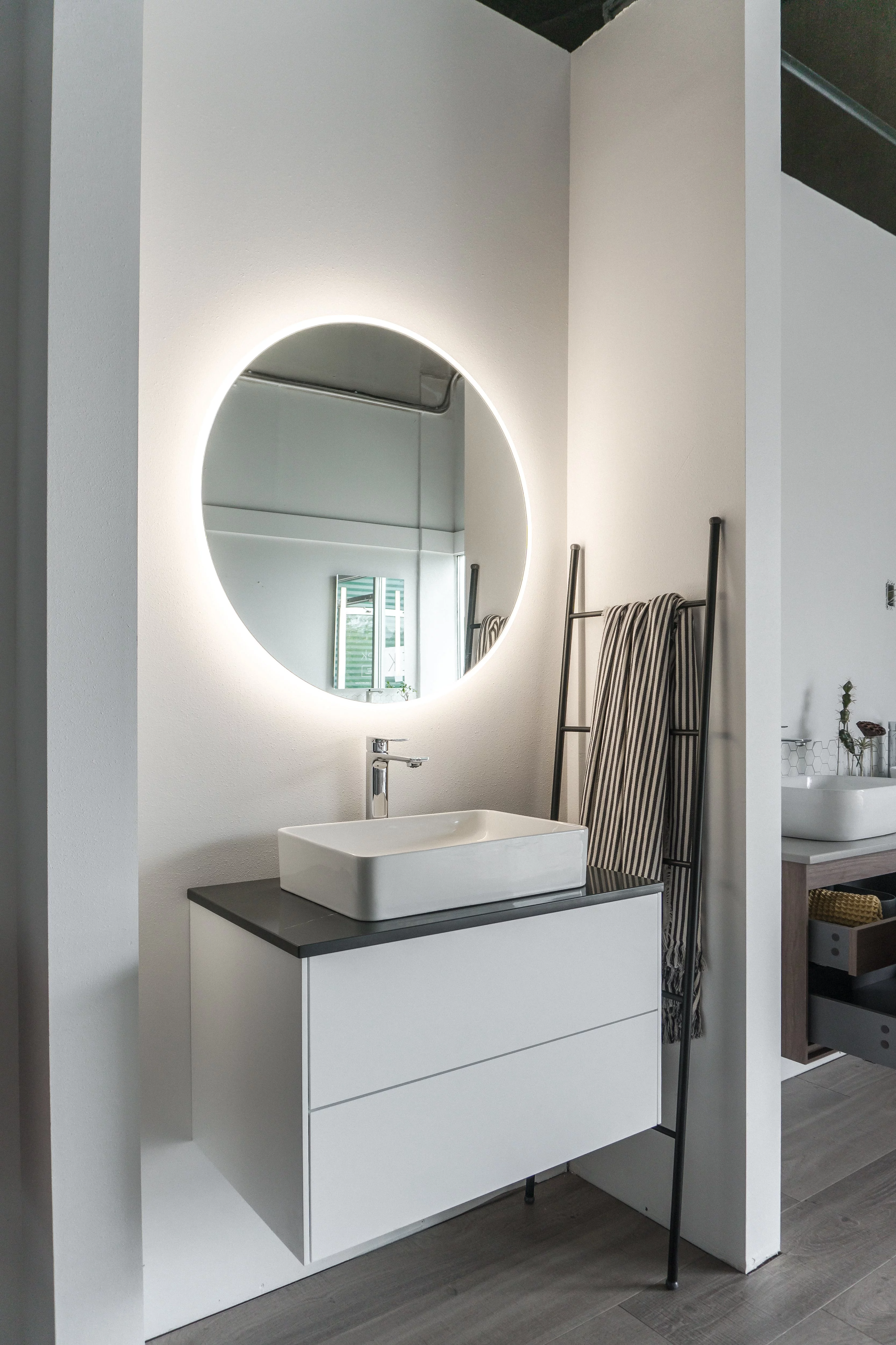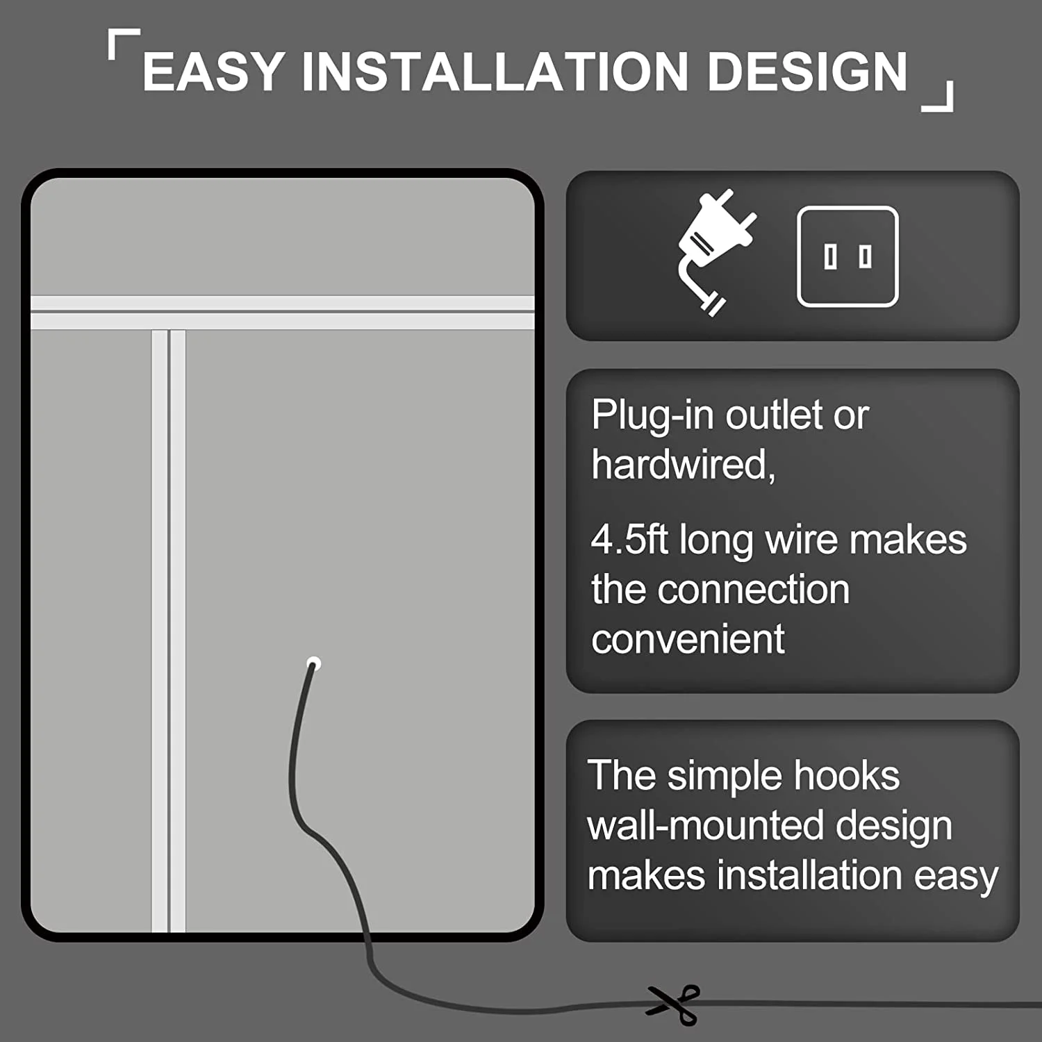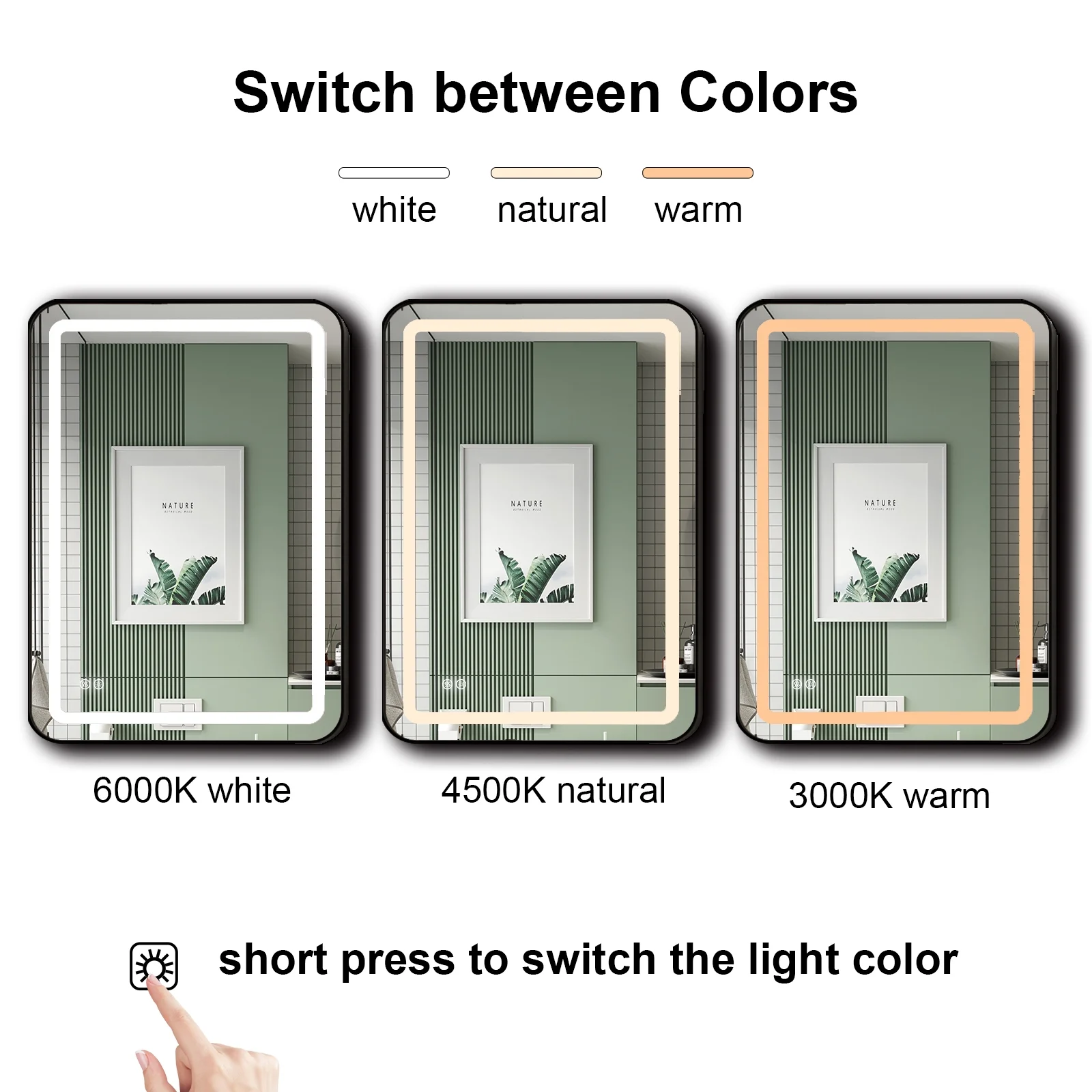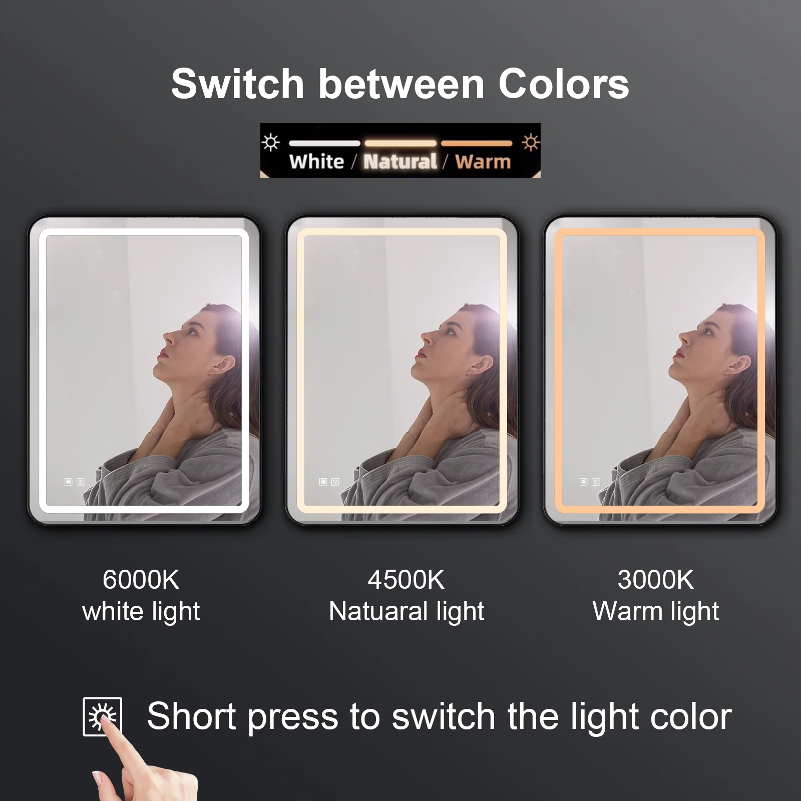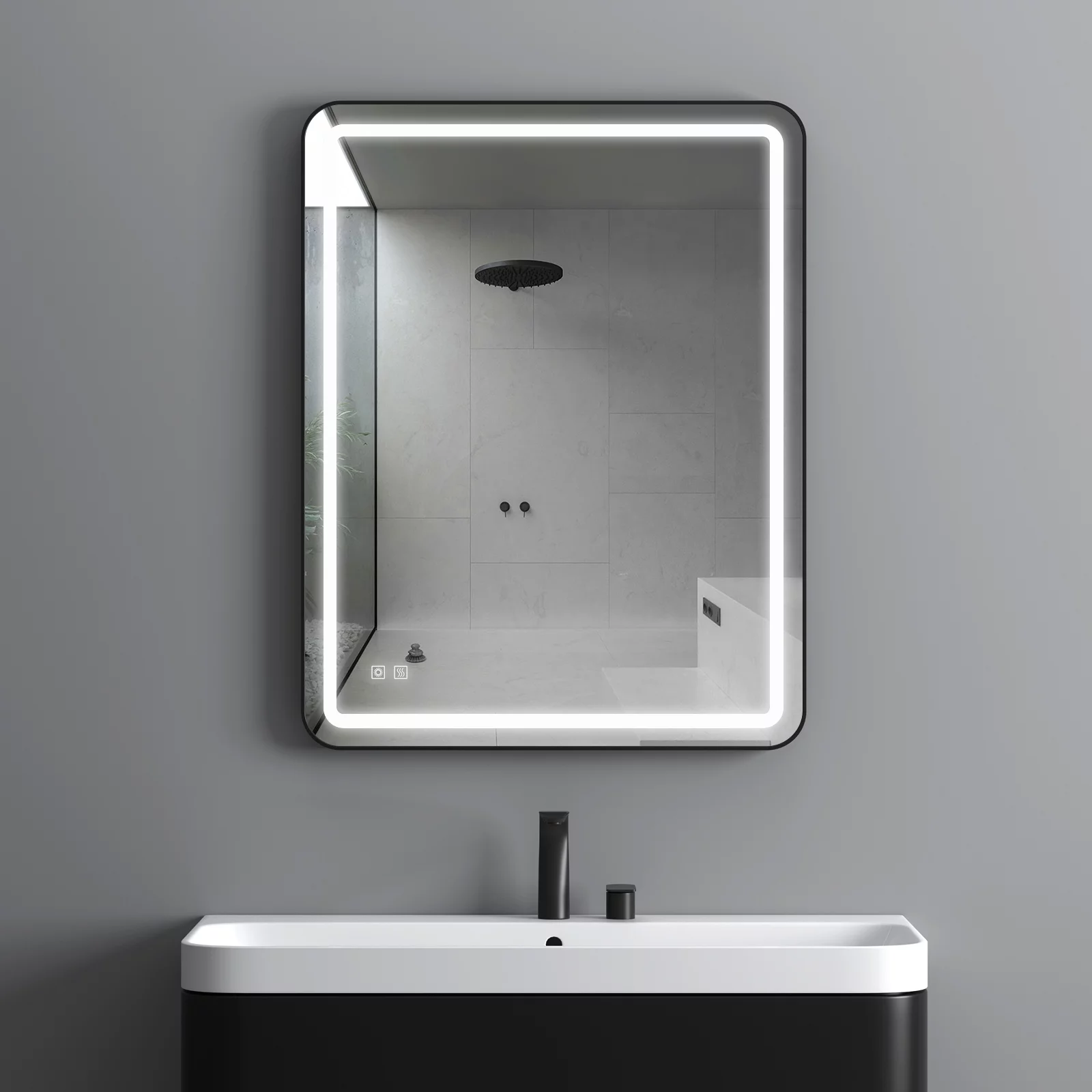 Aquaterior 22" Round LED Bathroom Mirror,Anti-Fog Dimmable IP65 Touch Switch