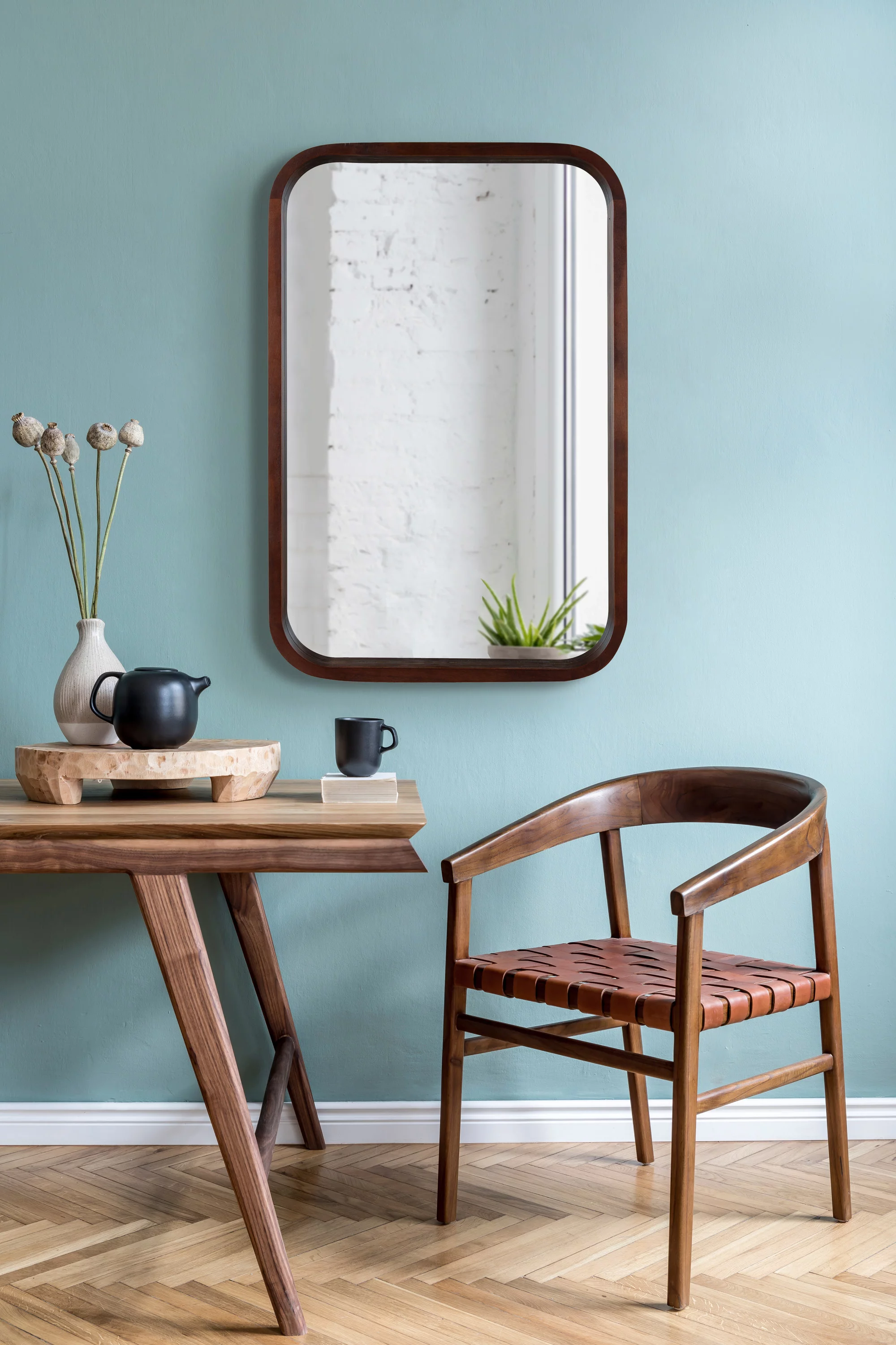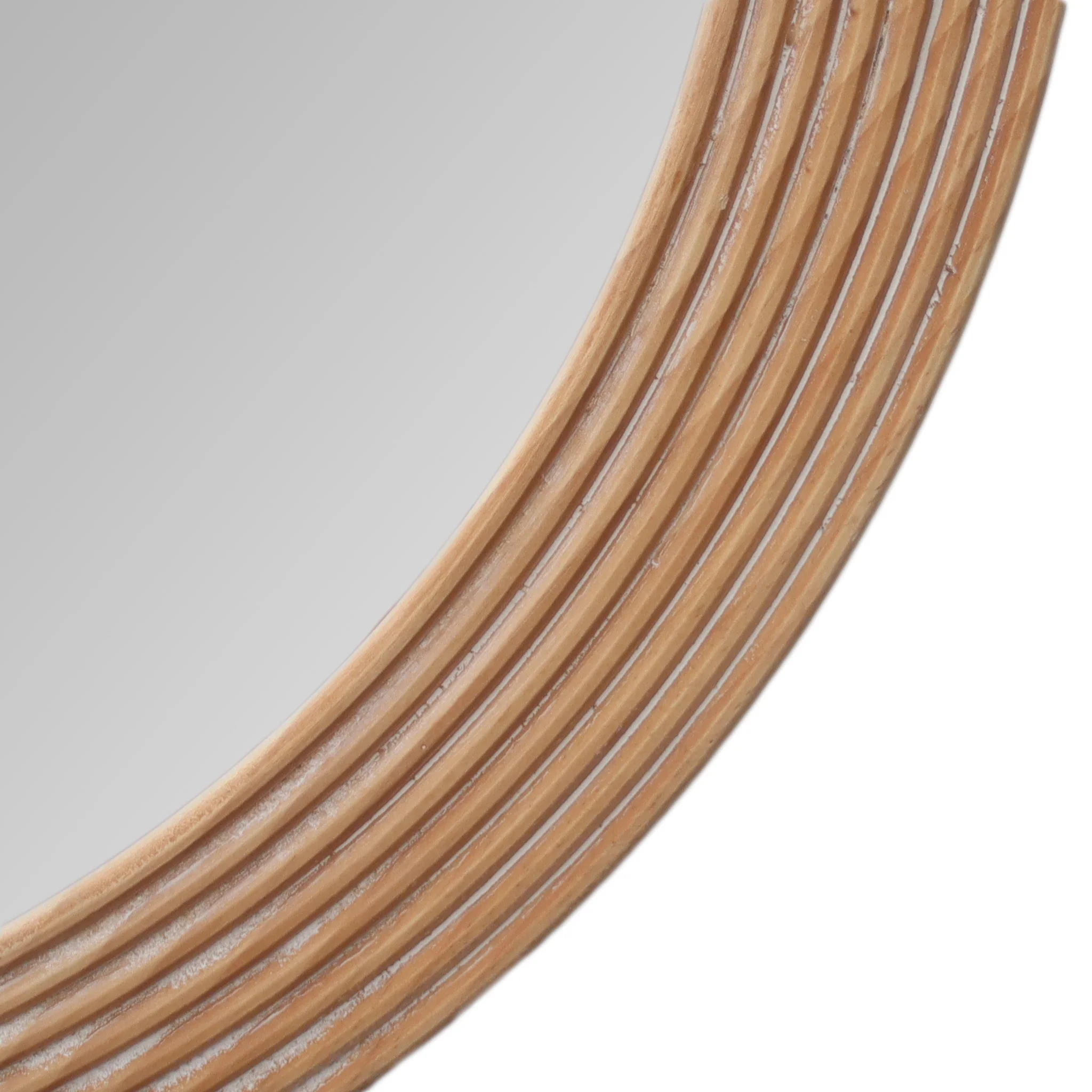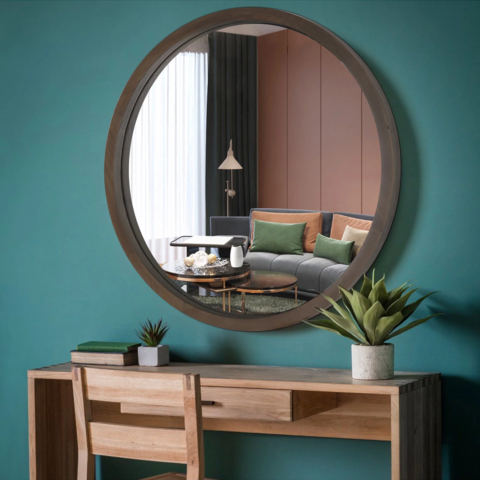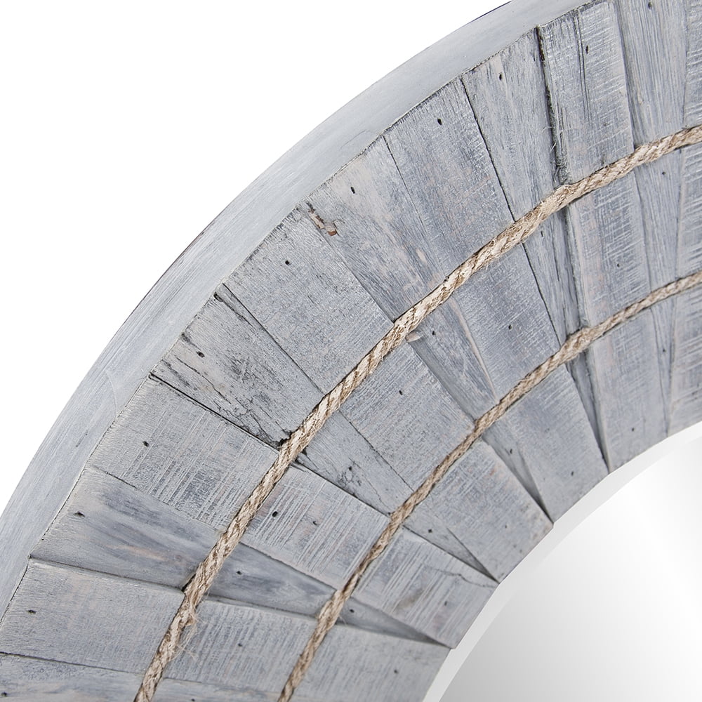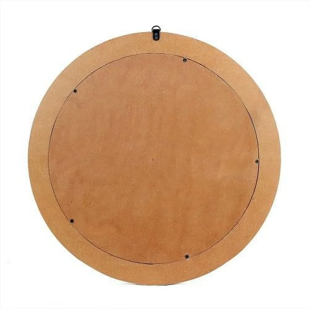 Parisloft 31.5 Inch Round Natural Wood Decorative Wall Mirror, Farmhosue Rustic Wall Mirror