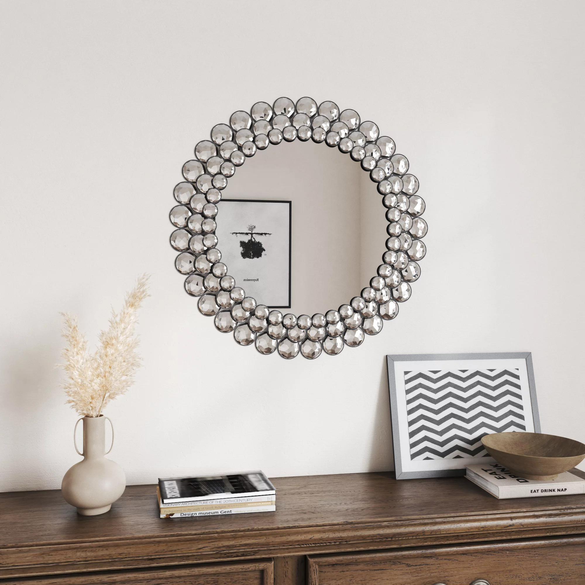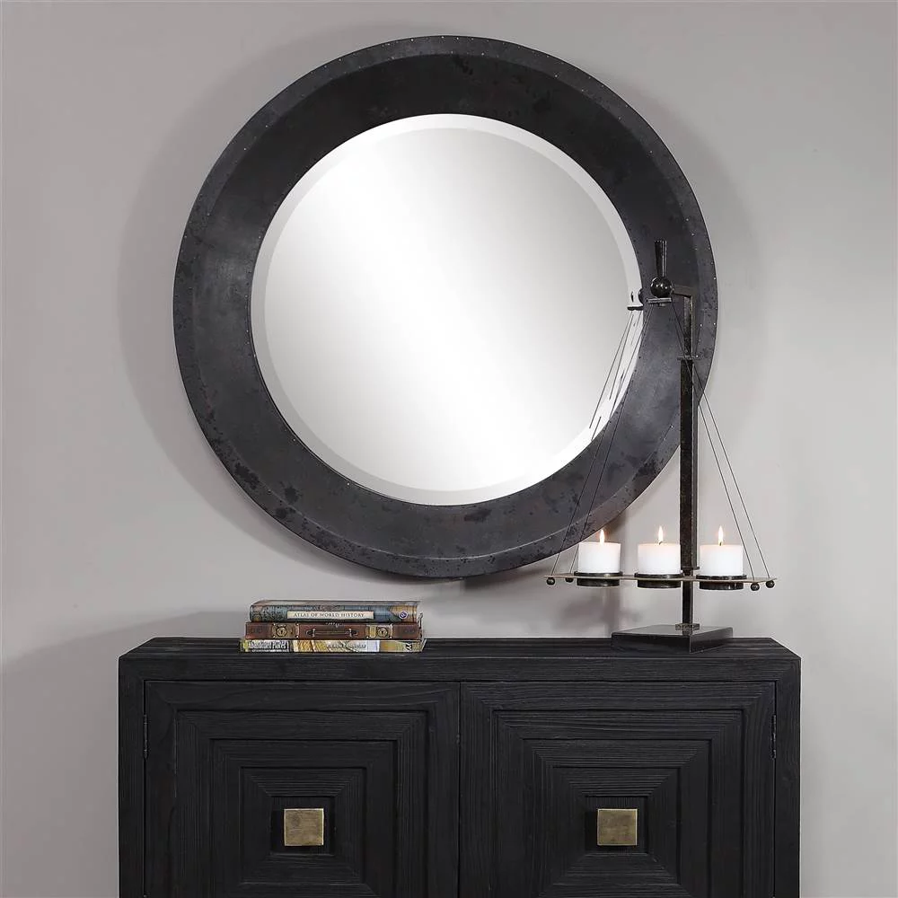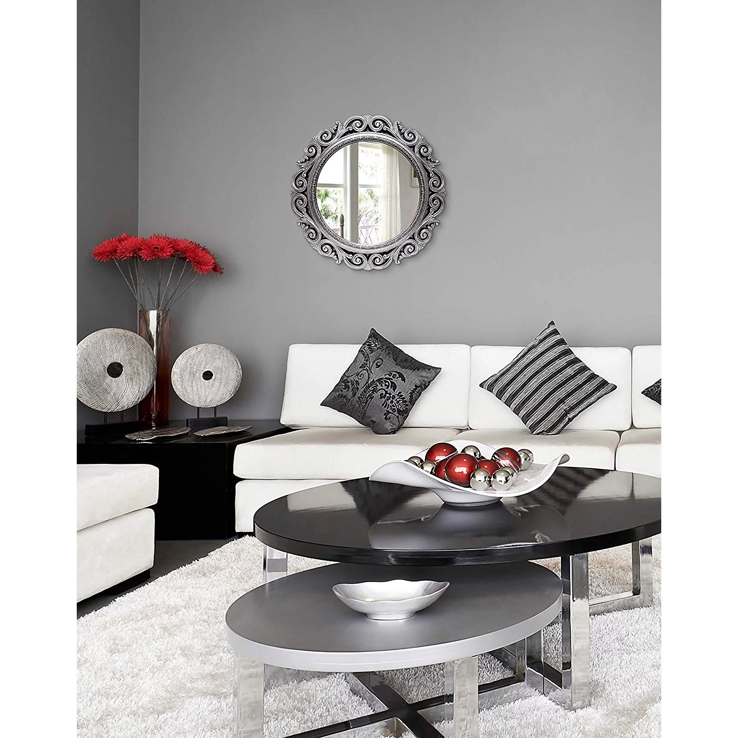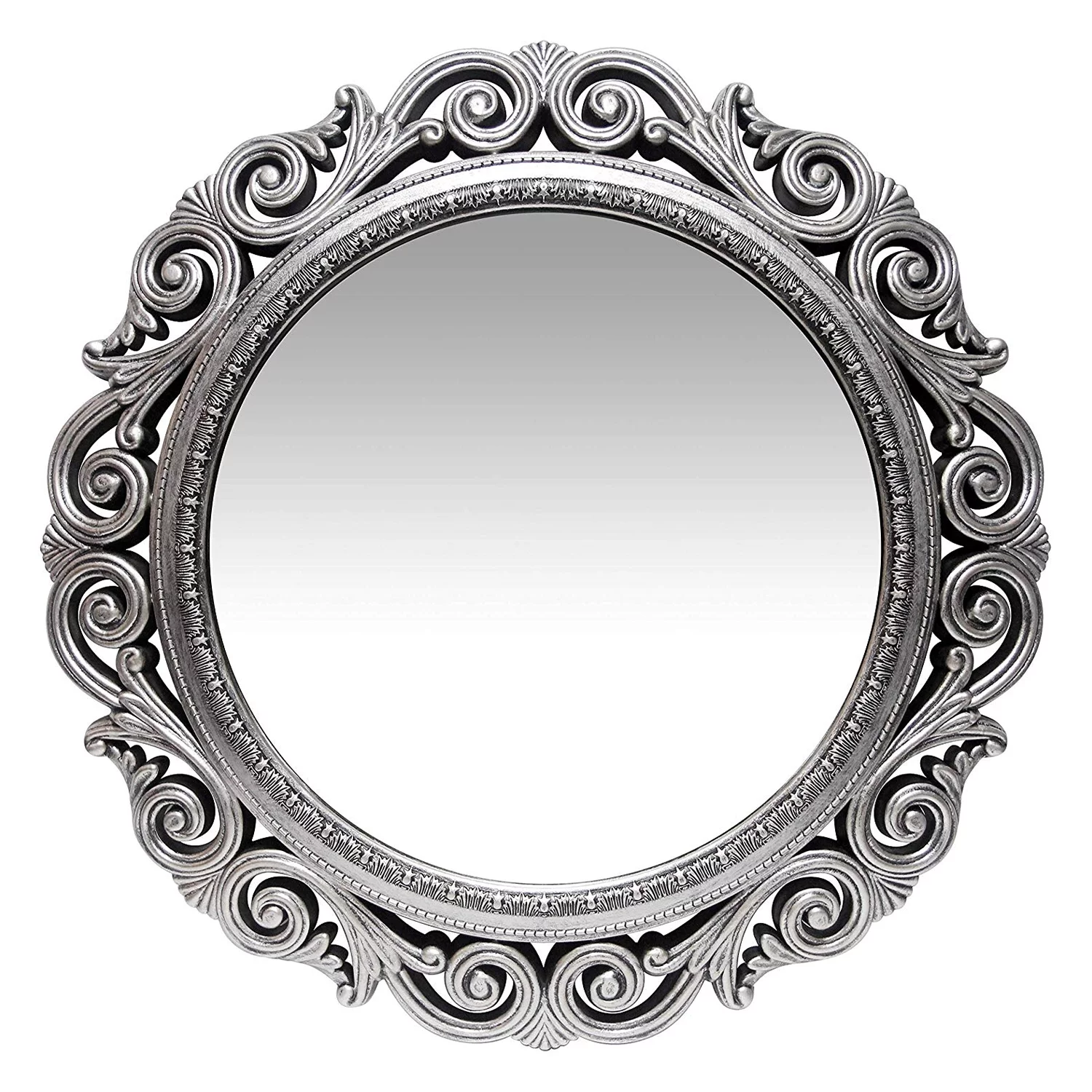 Infinity Instruments Antique Design Large 24-Inch Round Wall Mirror, Silver