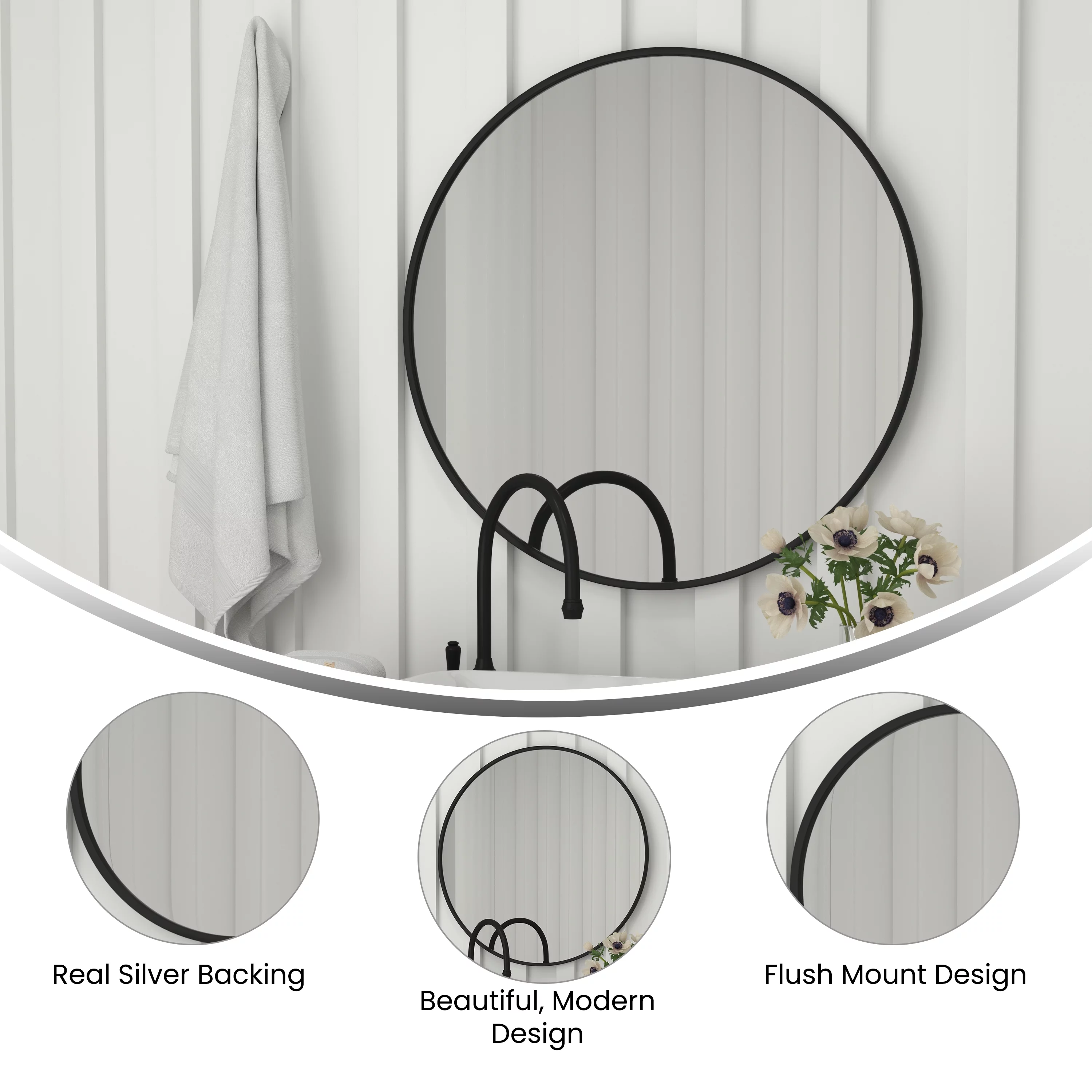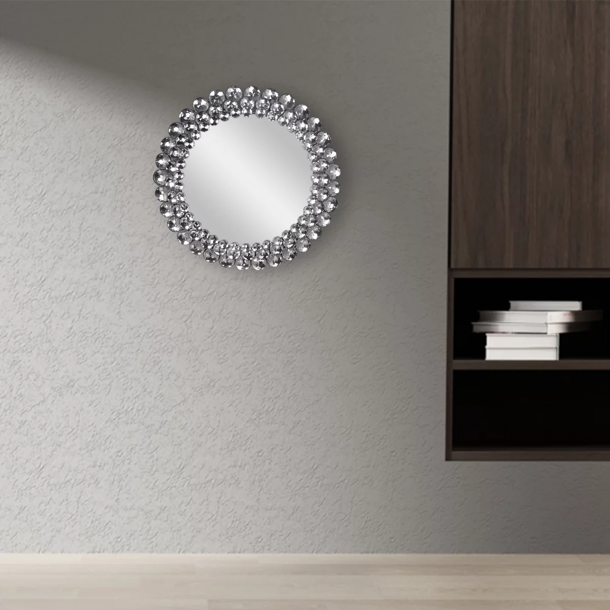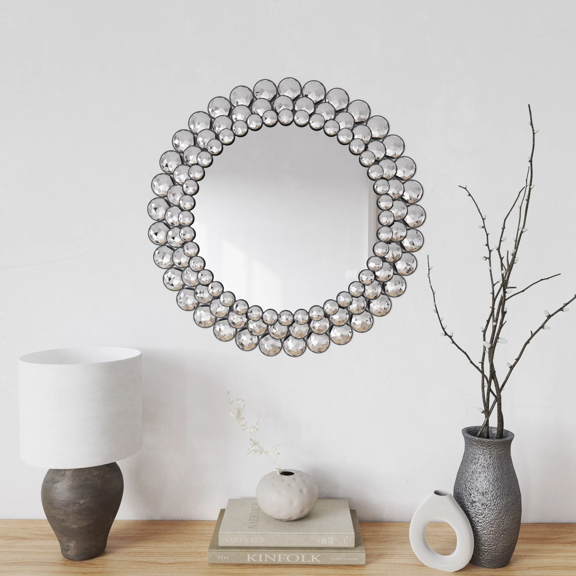 Infinity Instruments Antique Design Large 24-Inch Round Wall Mirror, Silver