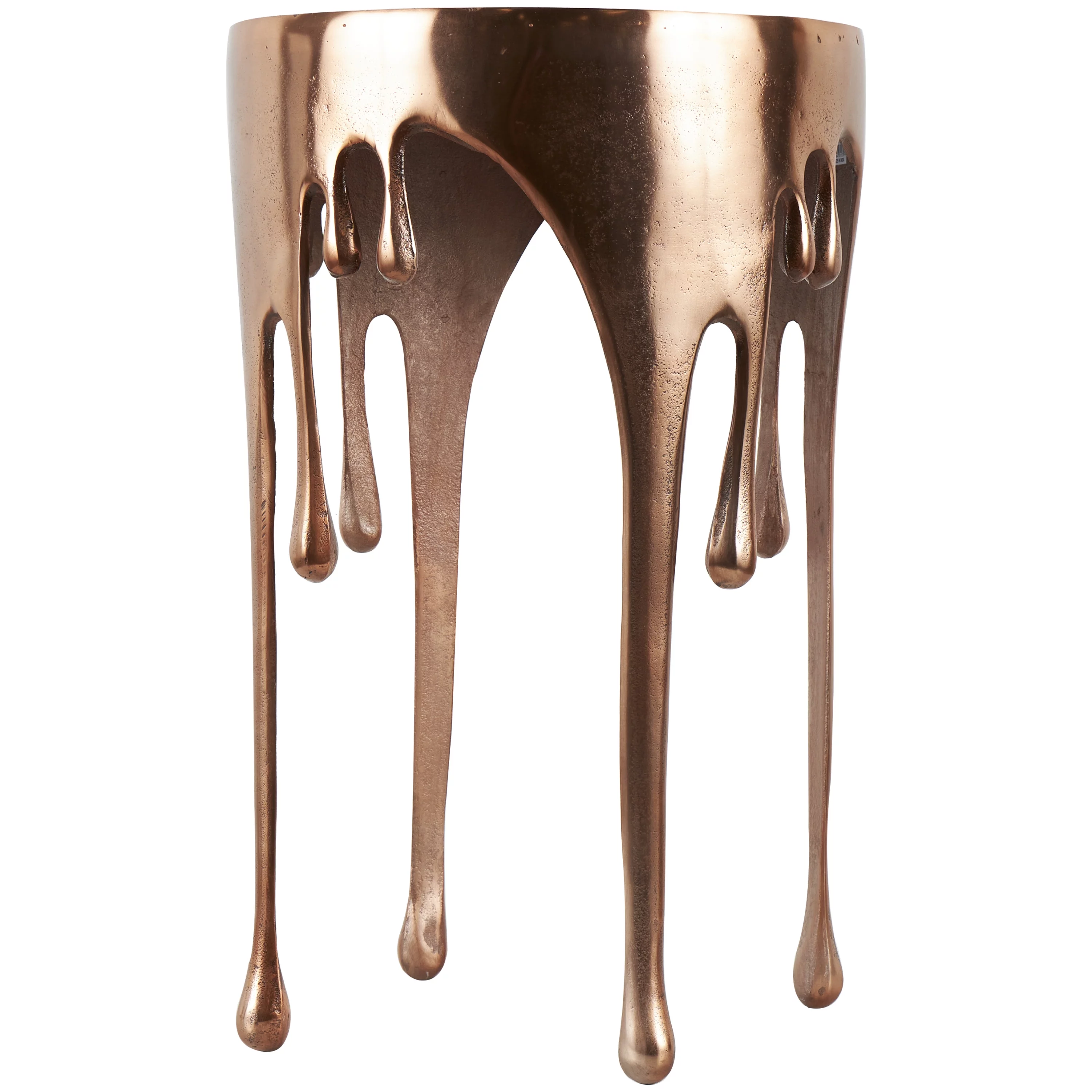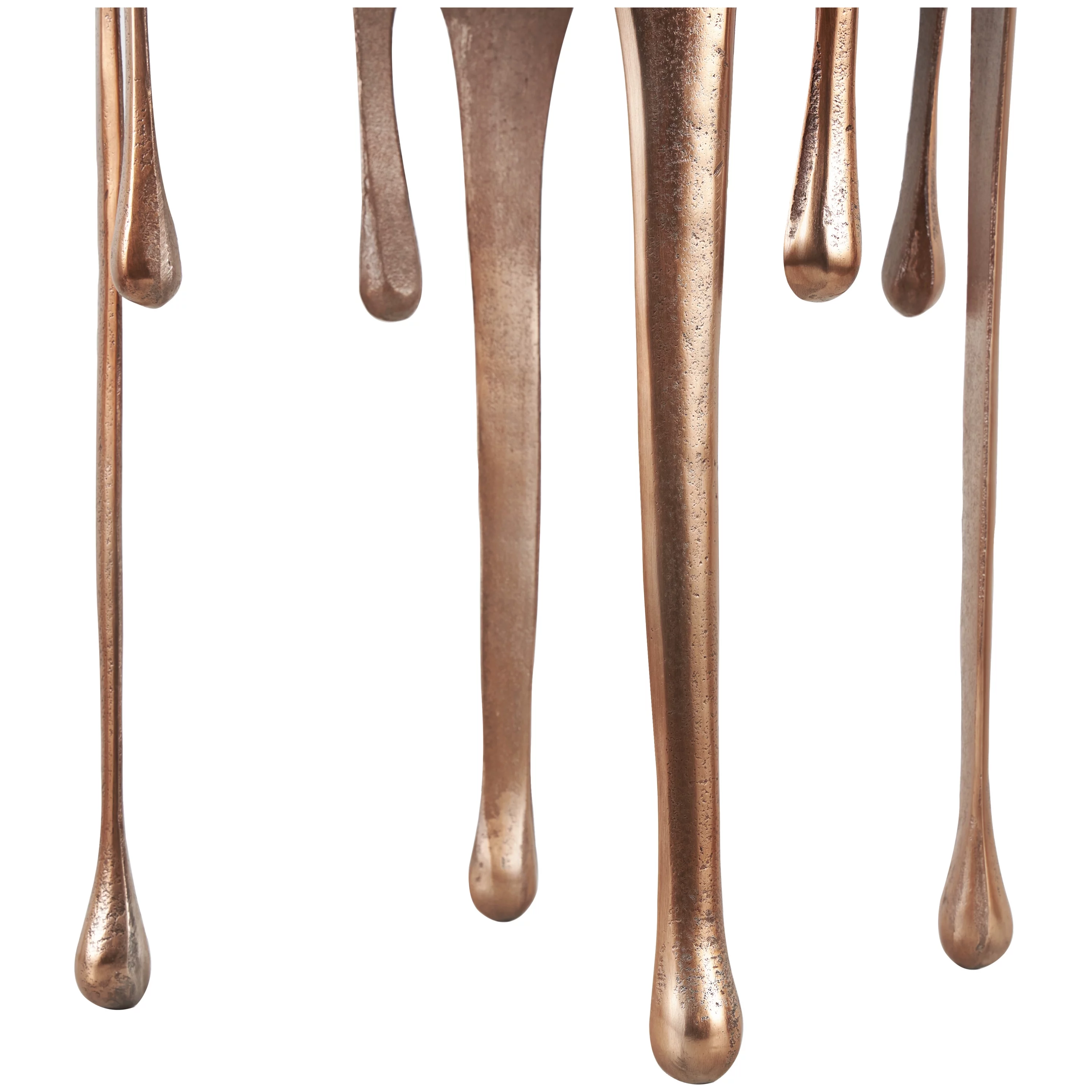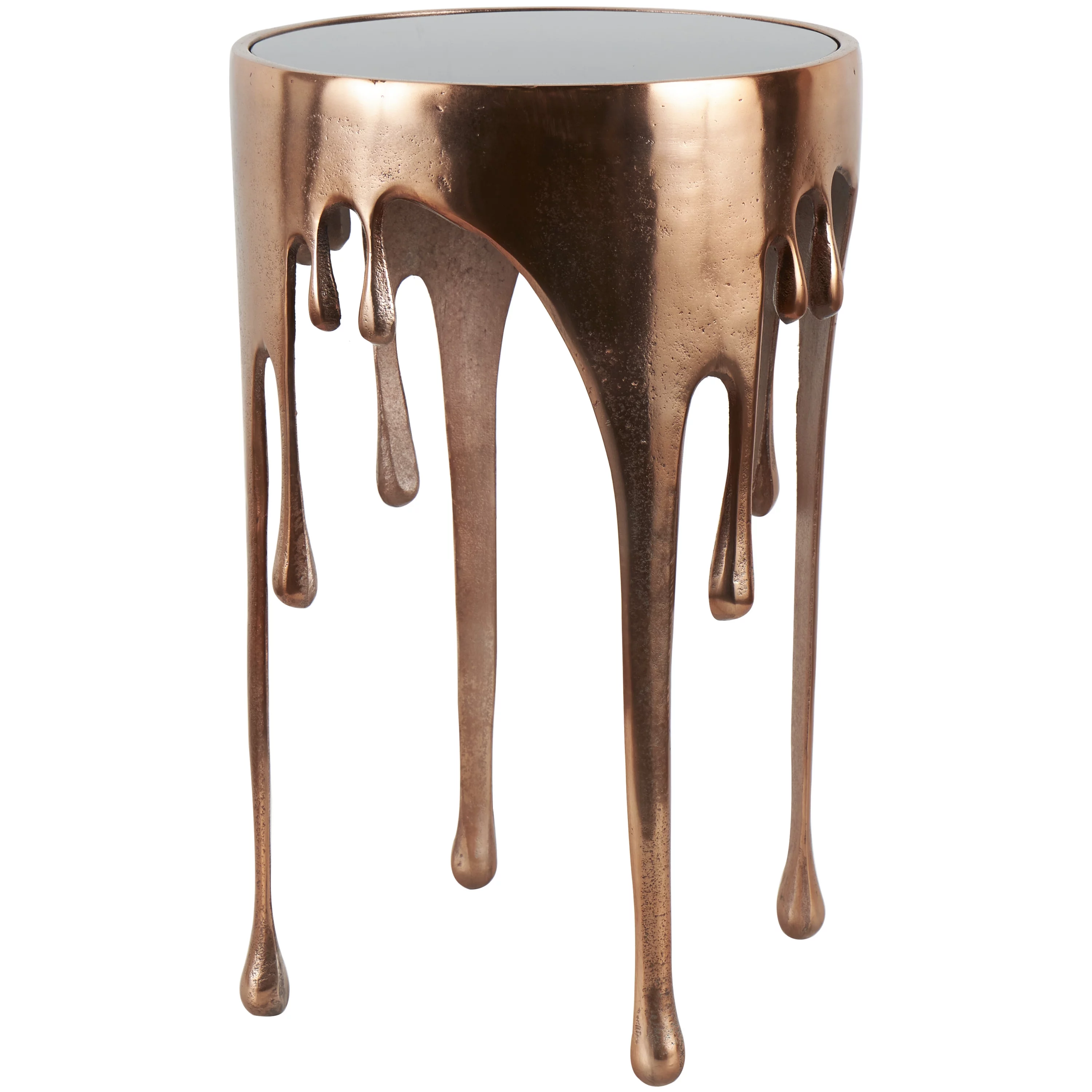 DecMode 16" x 25" Copper Aluminum Drip Accent Table with Melting Design and Shaded Glass Top, 1-Piece