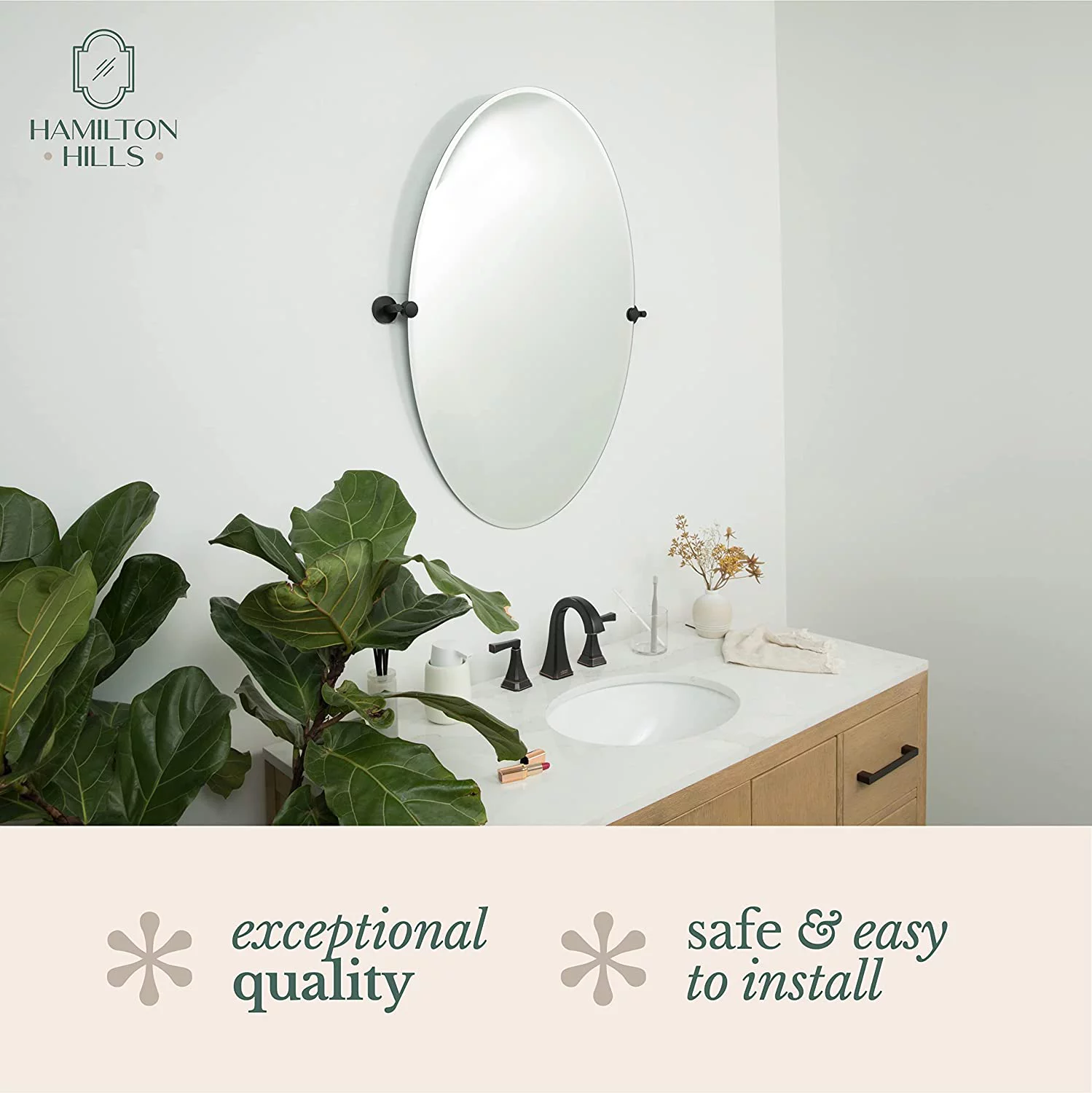 Hamilton Hills Large Pivot Oval Mirror With Oil Rubbed Bronze Wall Anchors