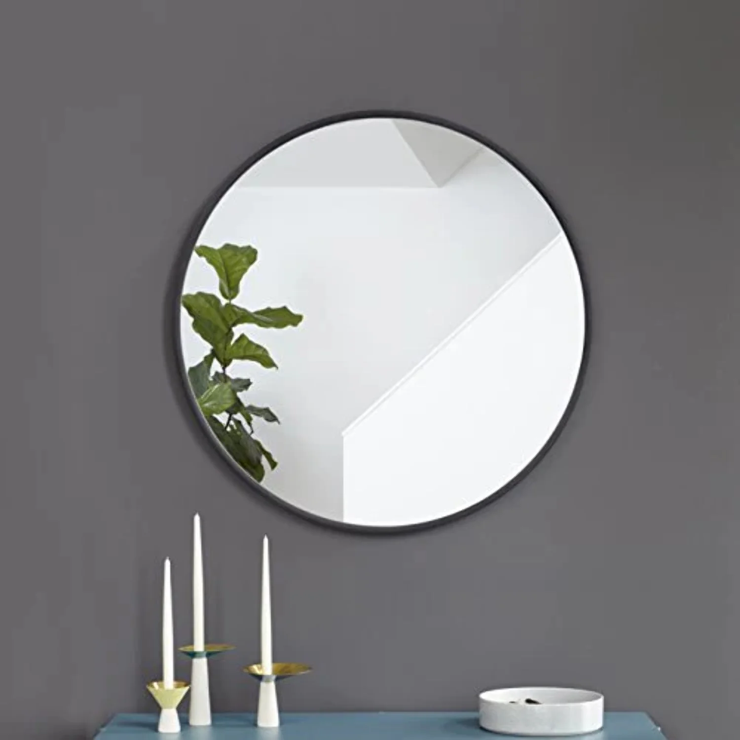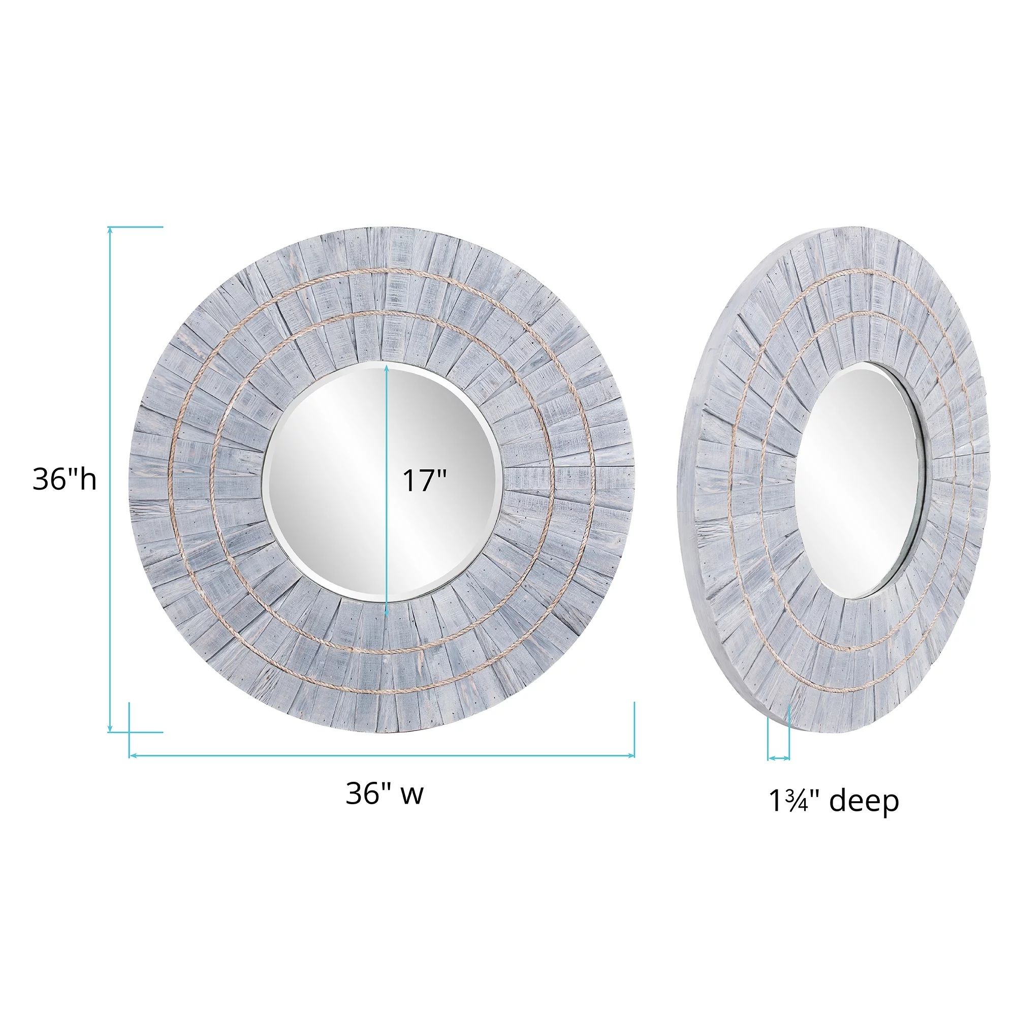 Tyler Dillion Decorative Round Wall Mirror with Blue Gray Slat Wood Frame 36"D