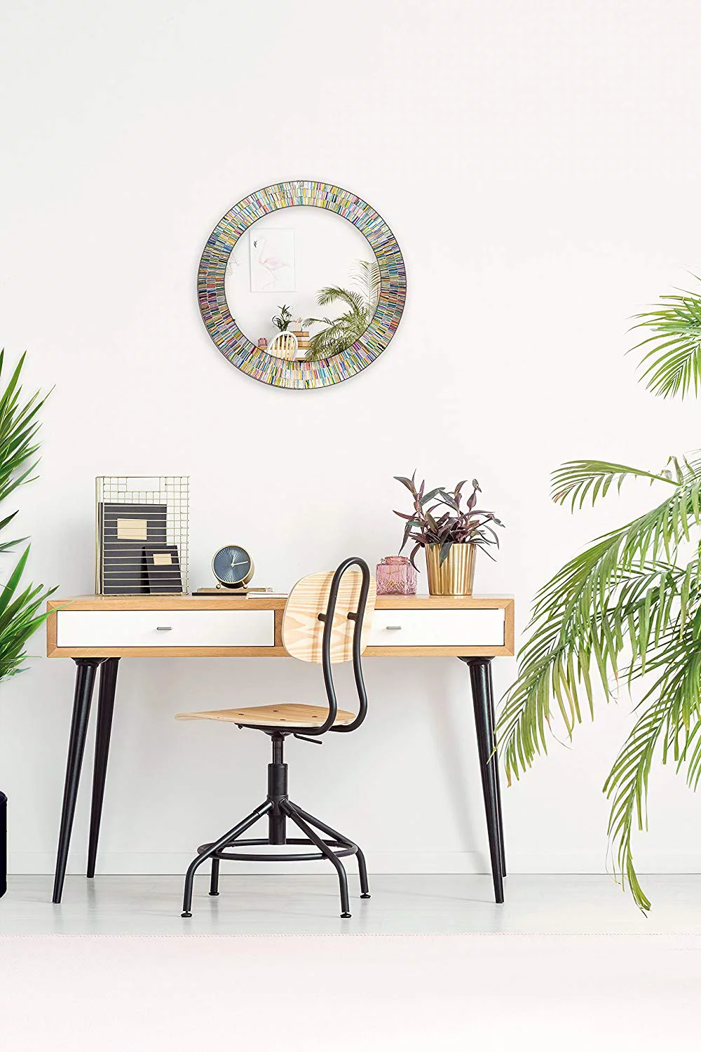 Bohemian Rainbow Rhapsody Round Mosaic Wall Mirror-Multi Color Spectrum 24" Wall Mirror by Decorshore