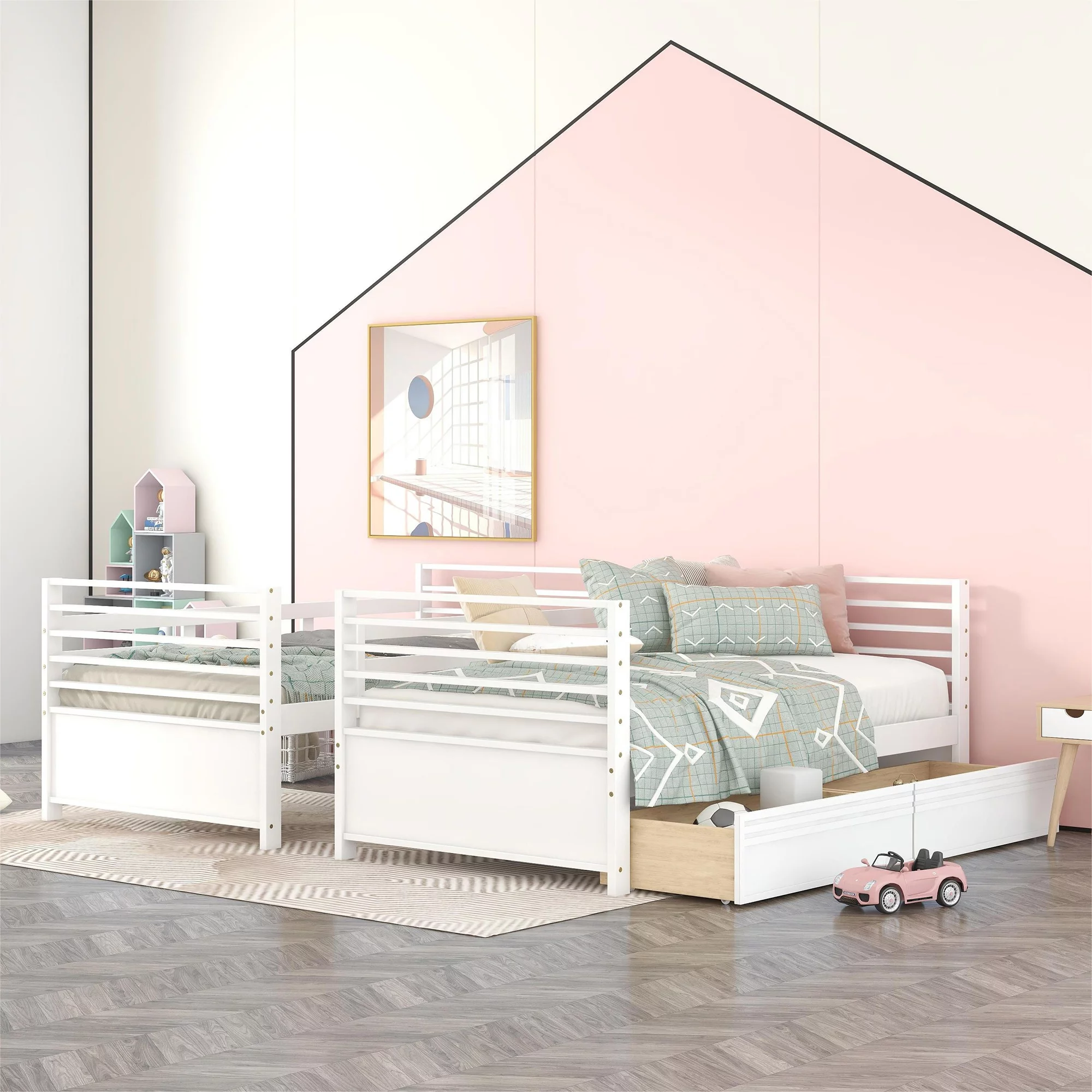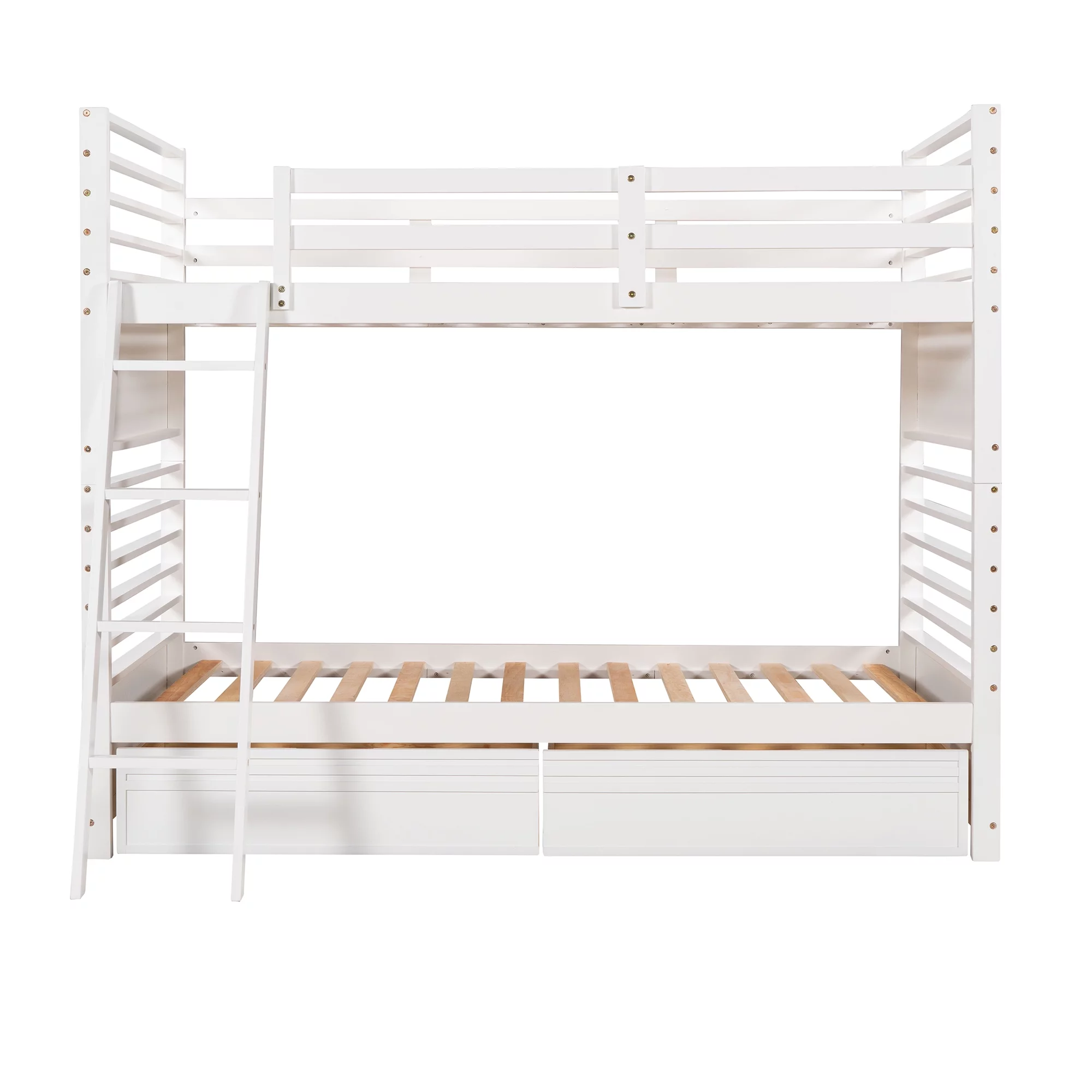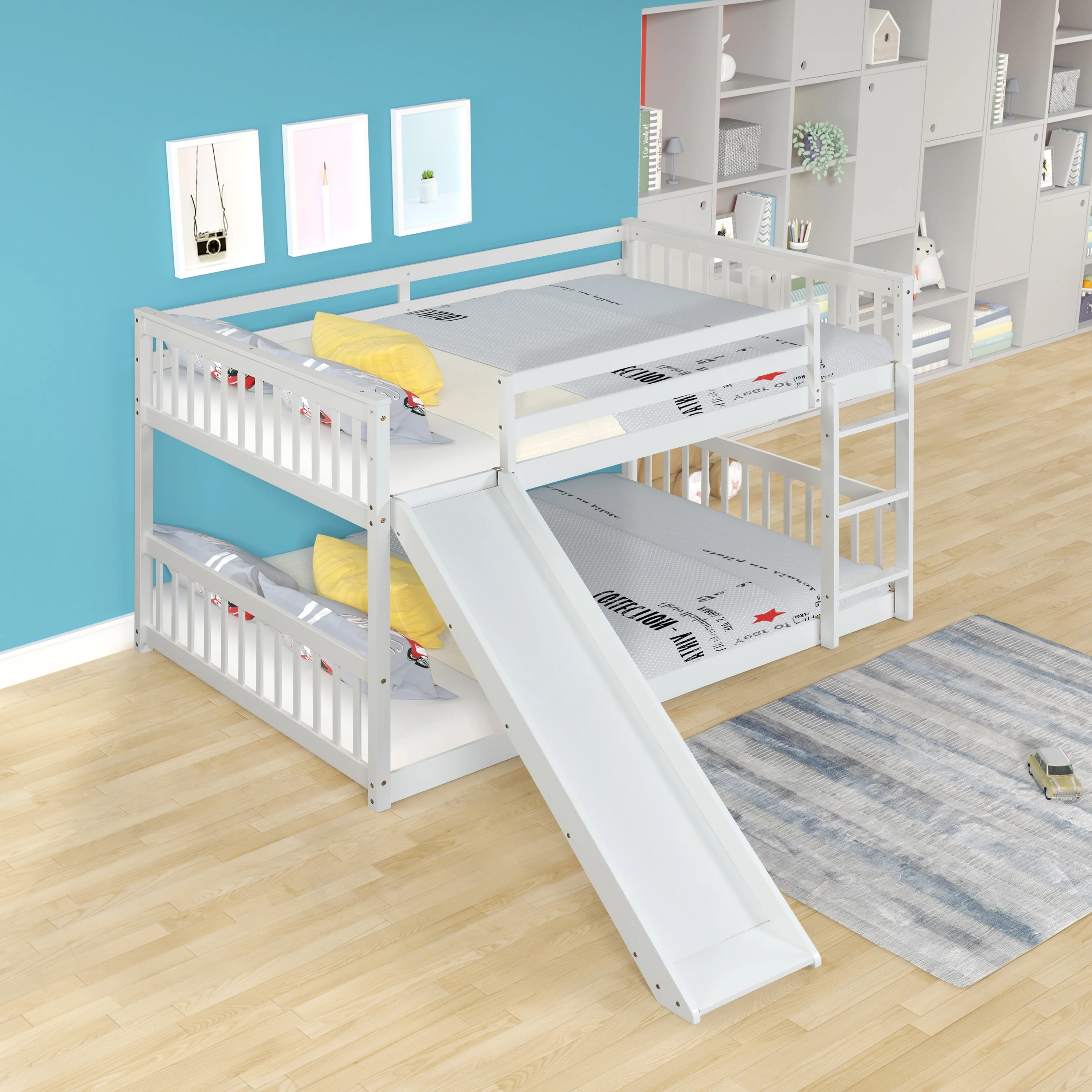 Momspeace Full Size Loft Bed with Ladder, Shelves, and Desk, White - Gray