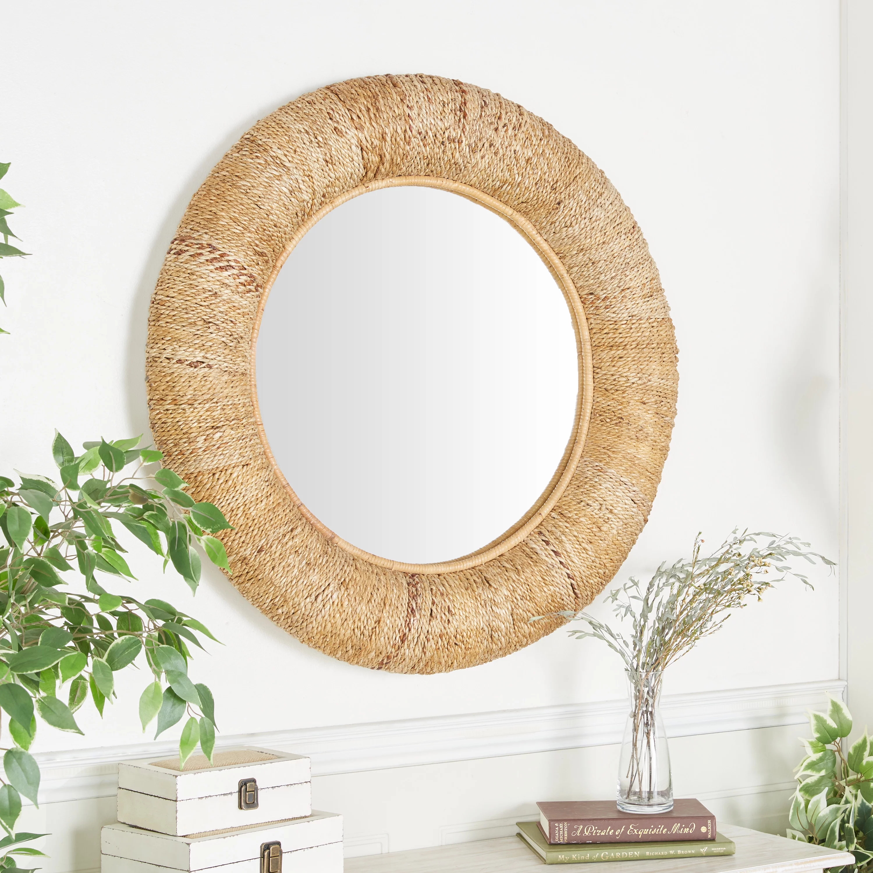 Foreside Home and Garden 23.75 inch Diameter Round Wrapped Rope Wall Mirror, Brown