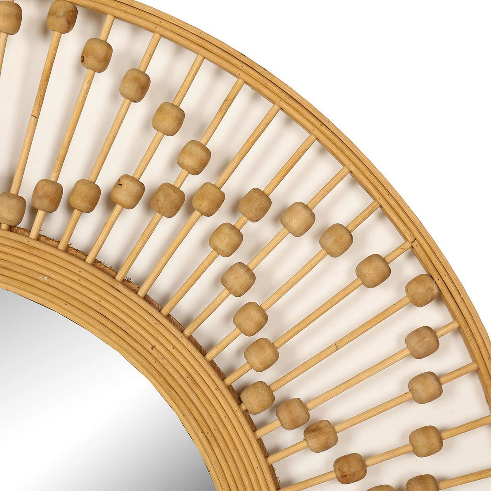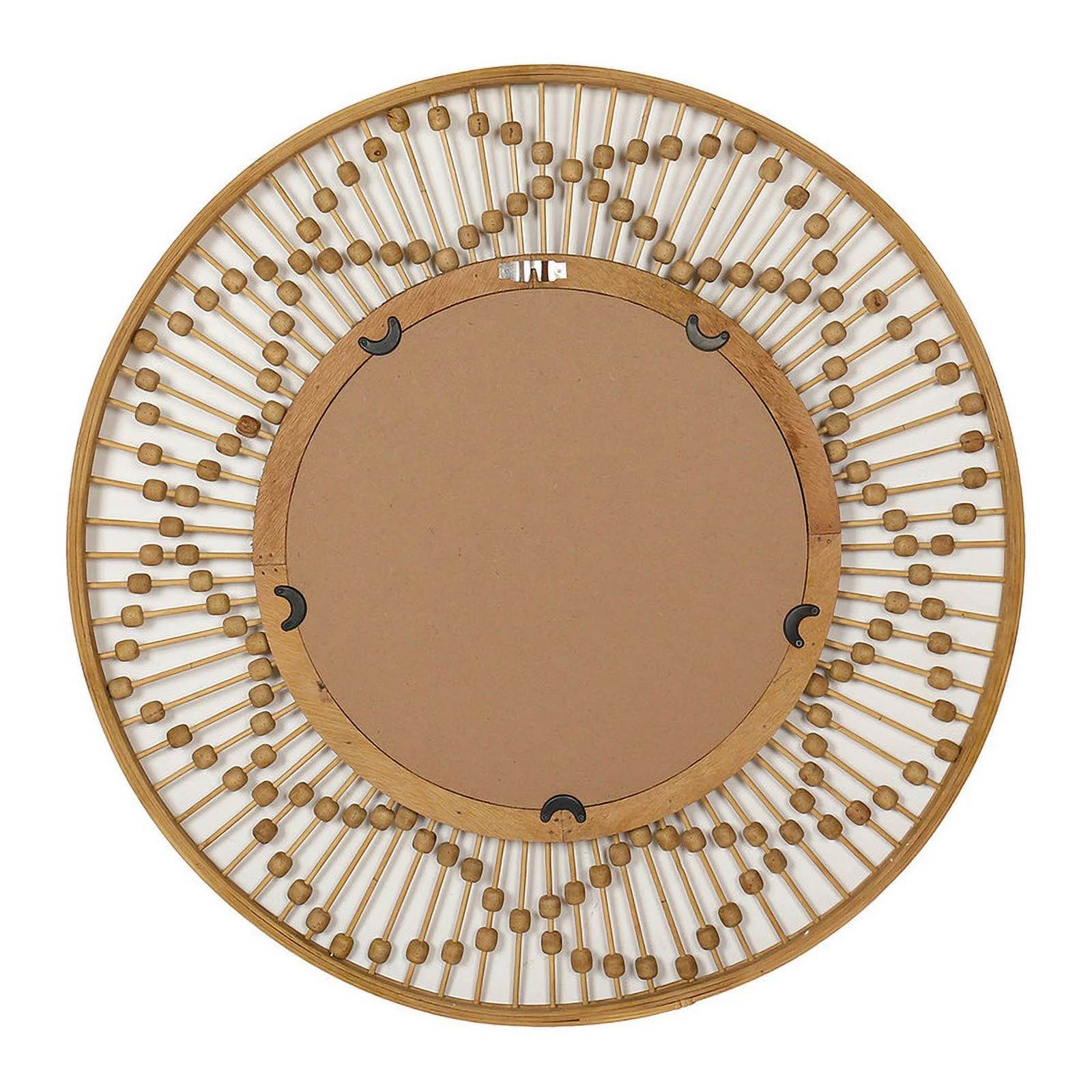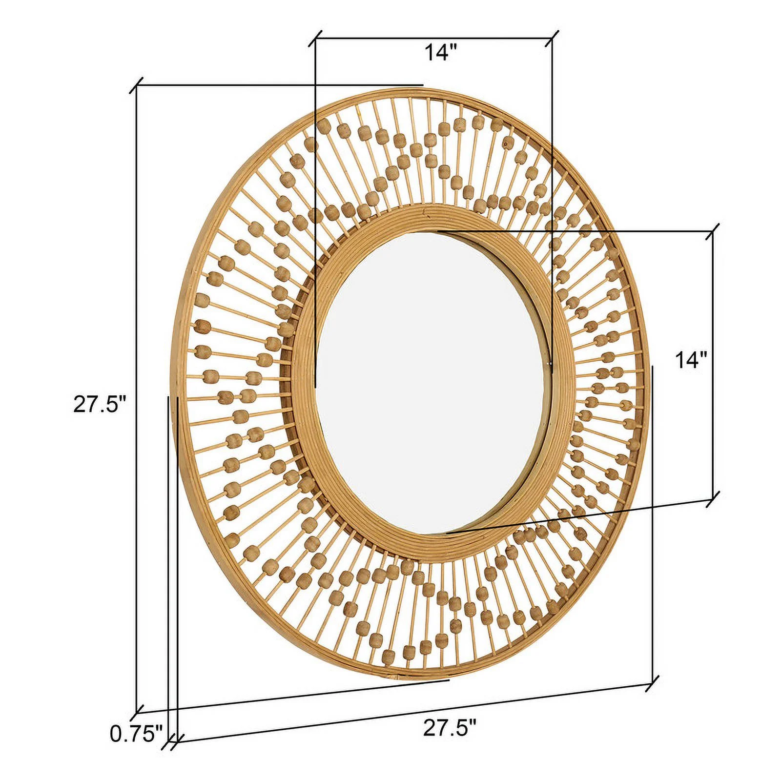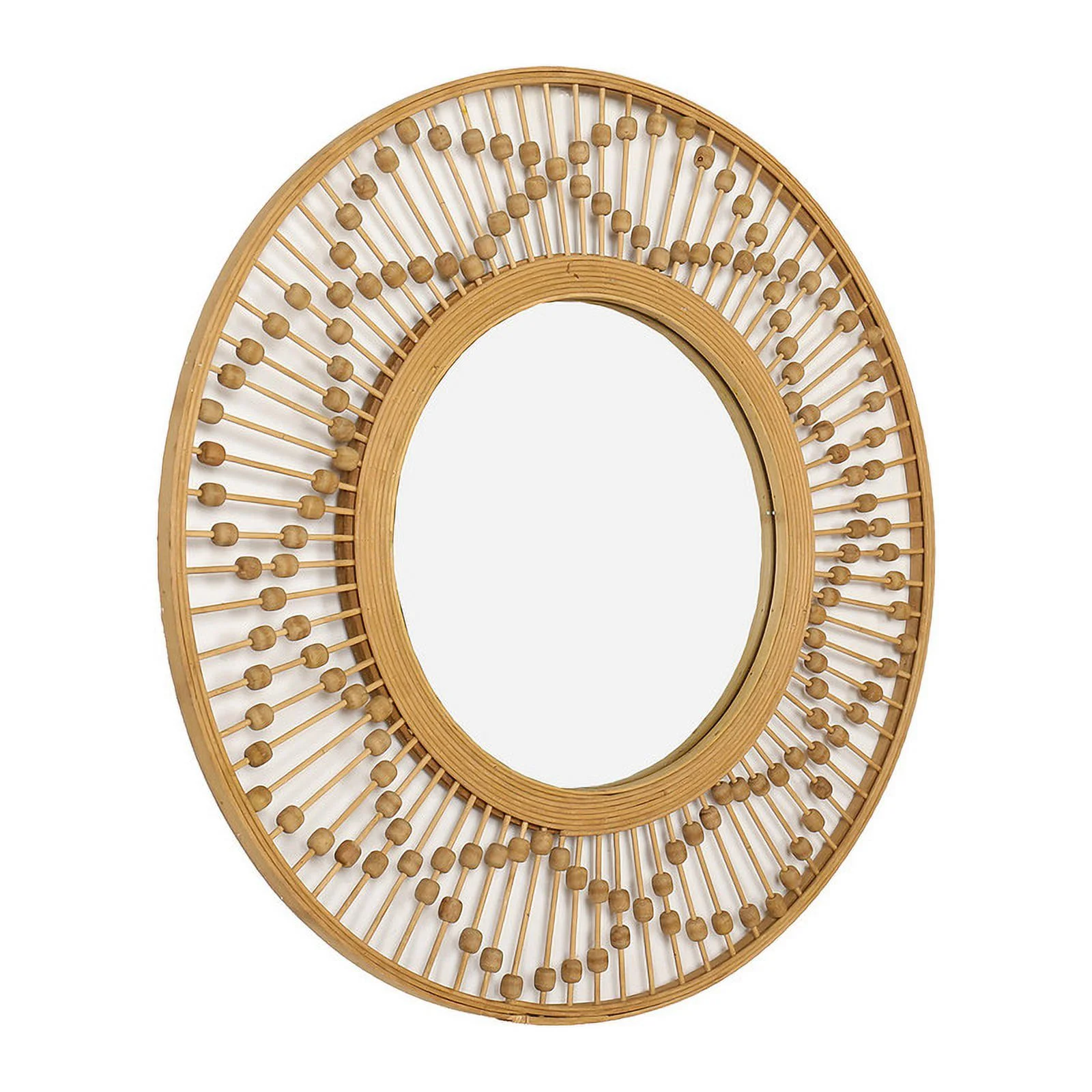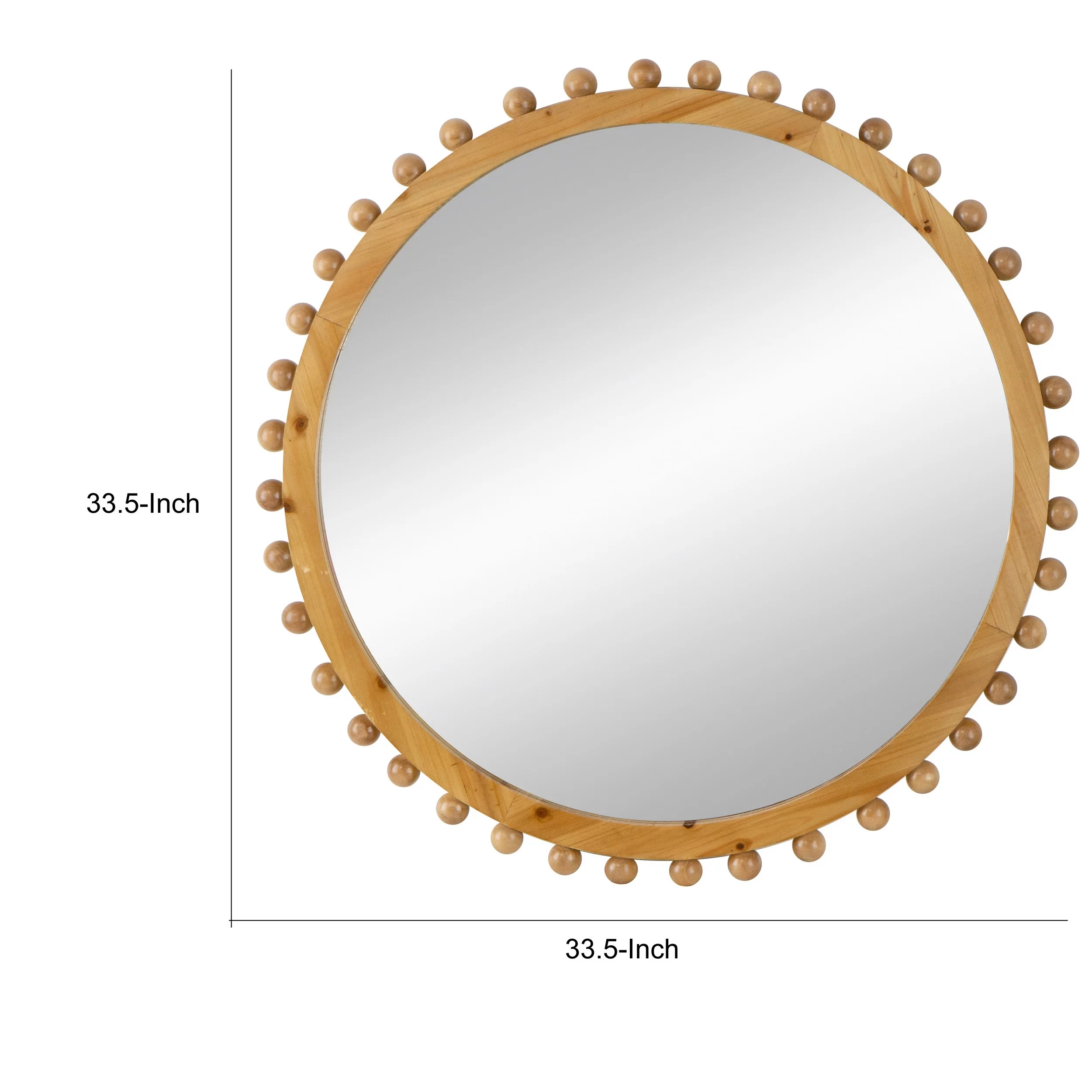 Emu 34 Inch Round Wall Mirror with Beaded Natural Brown Fir Wood Frame- Saltoro Sherpi