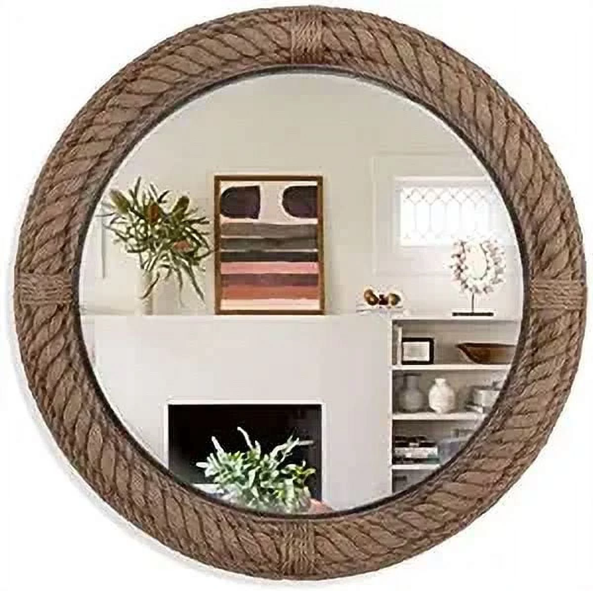 Home Dress Premium Nautical Round Rope Mirror Jute Framed Full Length Wall Hanging Mirror (24 inch)