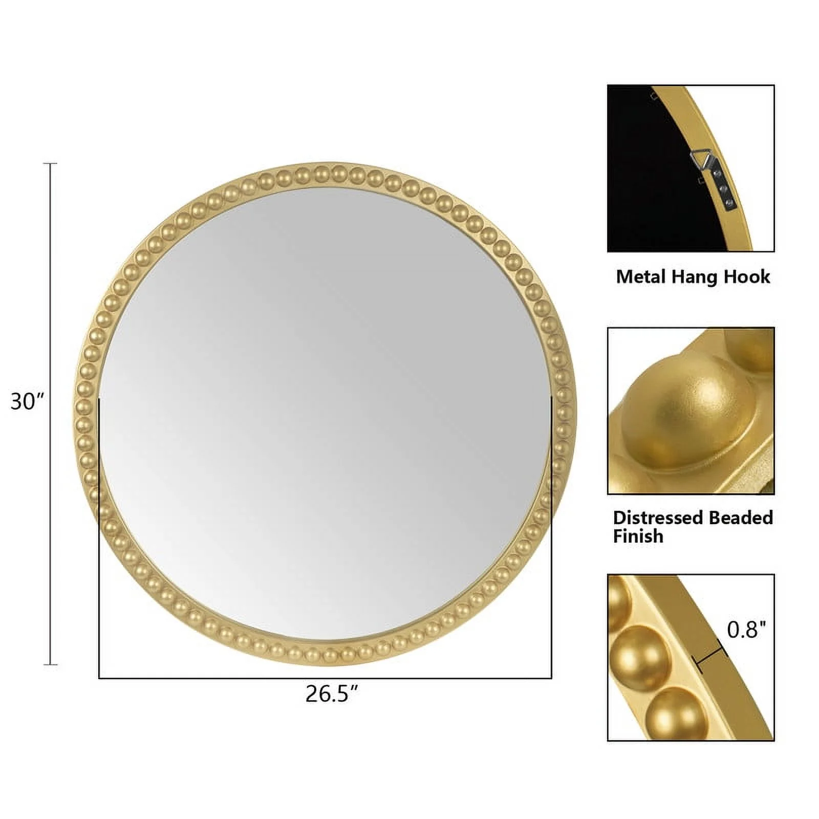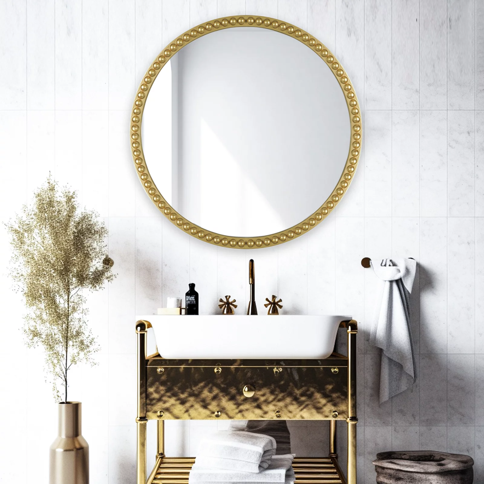 Magnifique Wall Decor Mirror Beaded Framed Round Mirror Circle Mirror for Home Decoration Bathroom 30inch, Gold