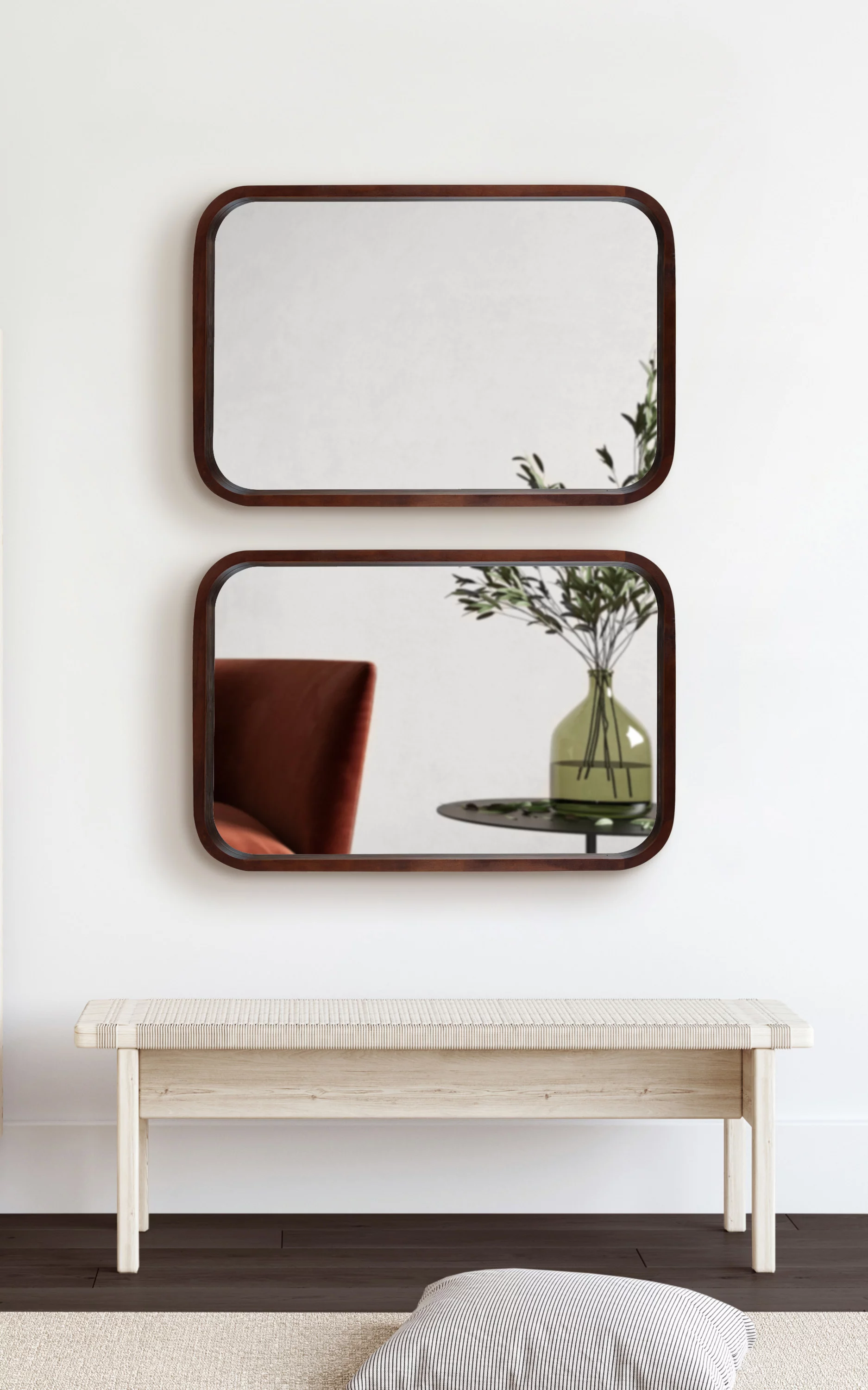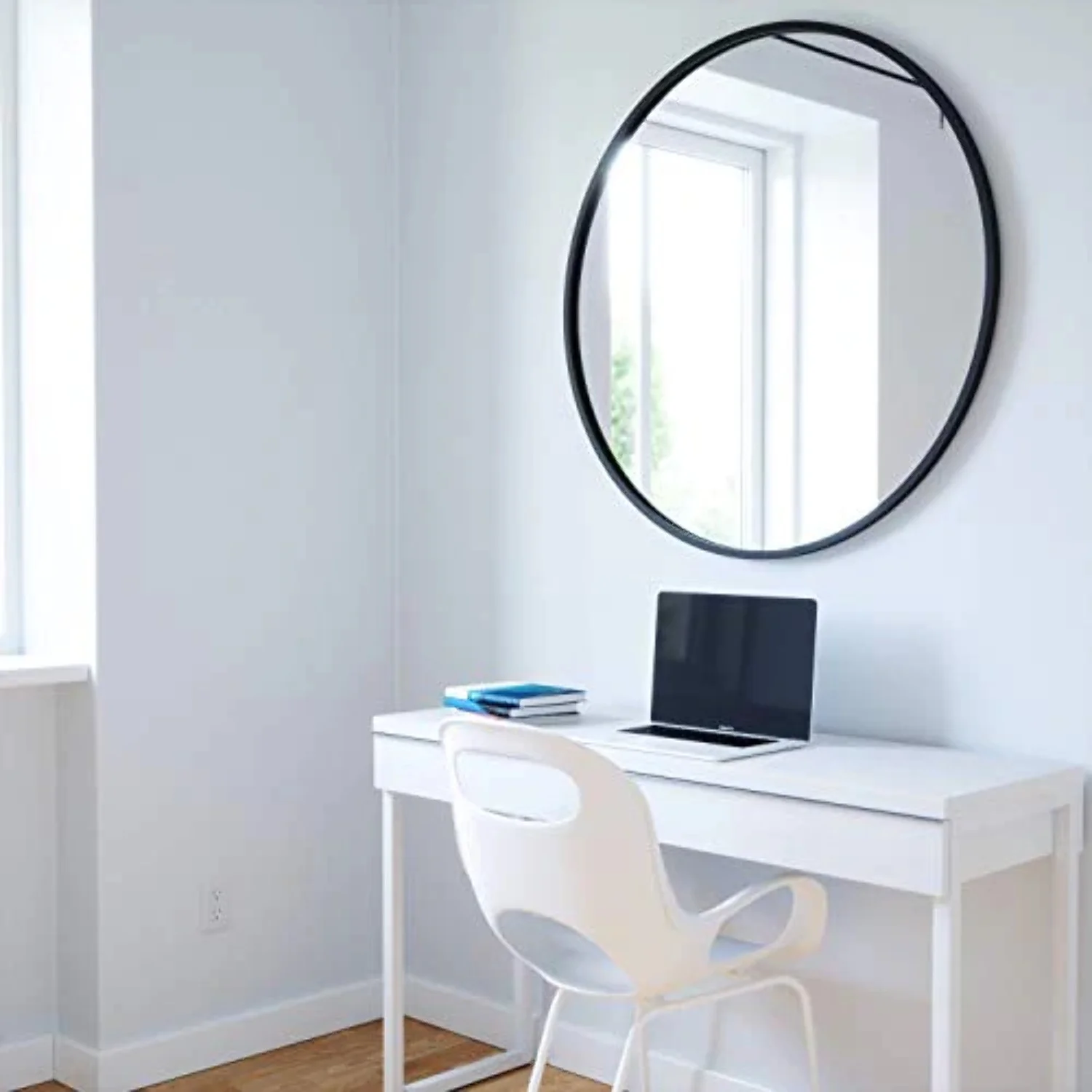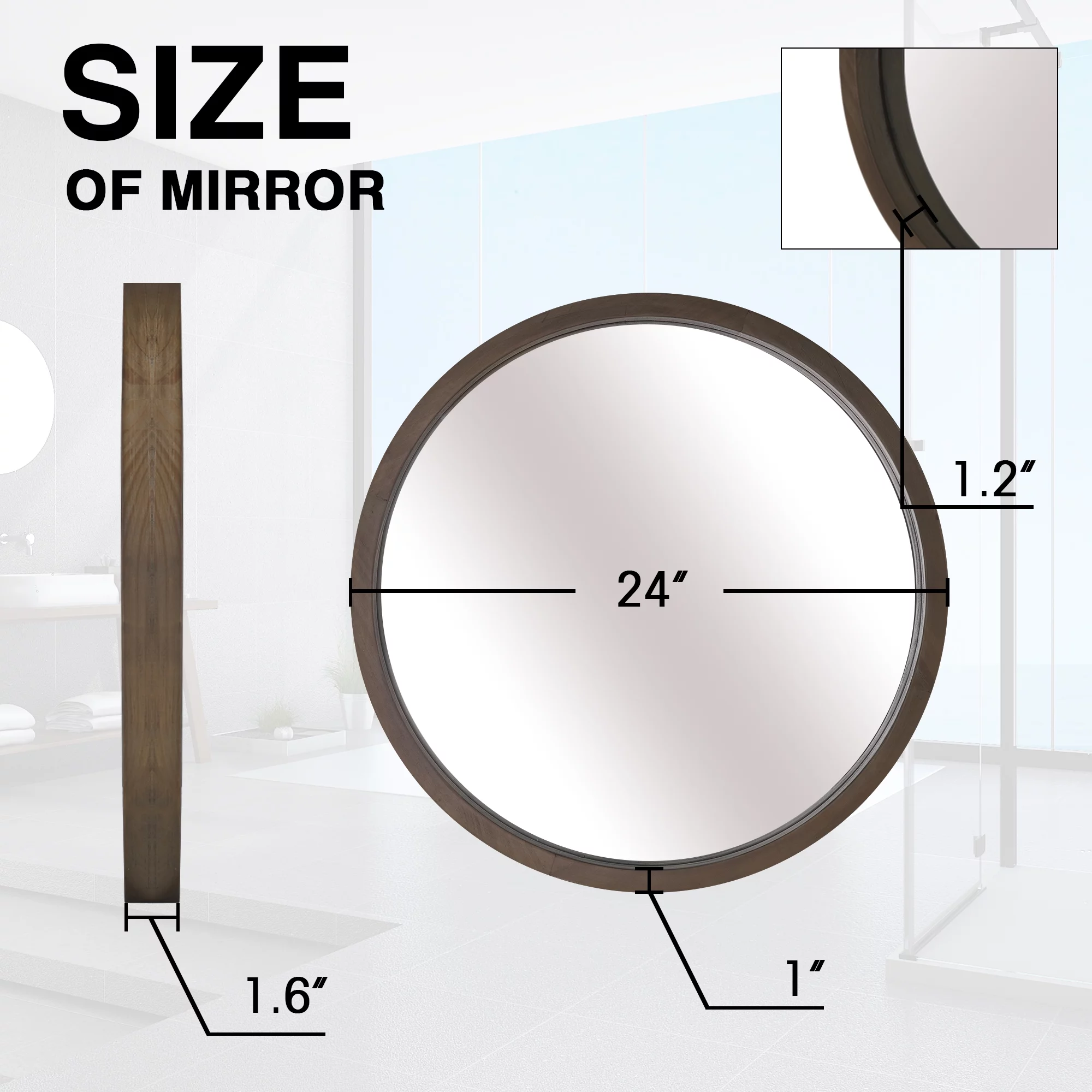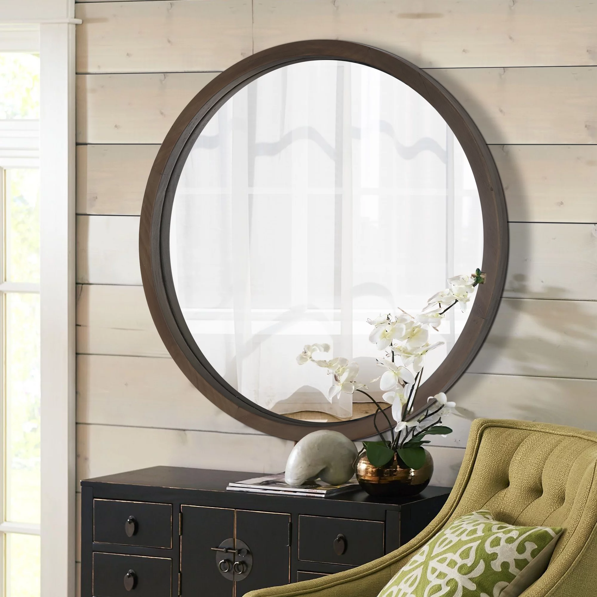 Clavie 24" Round Wall Mirror Farmhouse Mirror for Entryway, Bathroom, Livingroom, Wood Frame