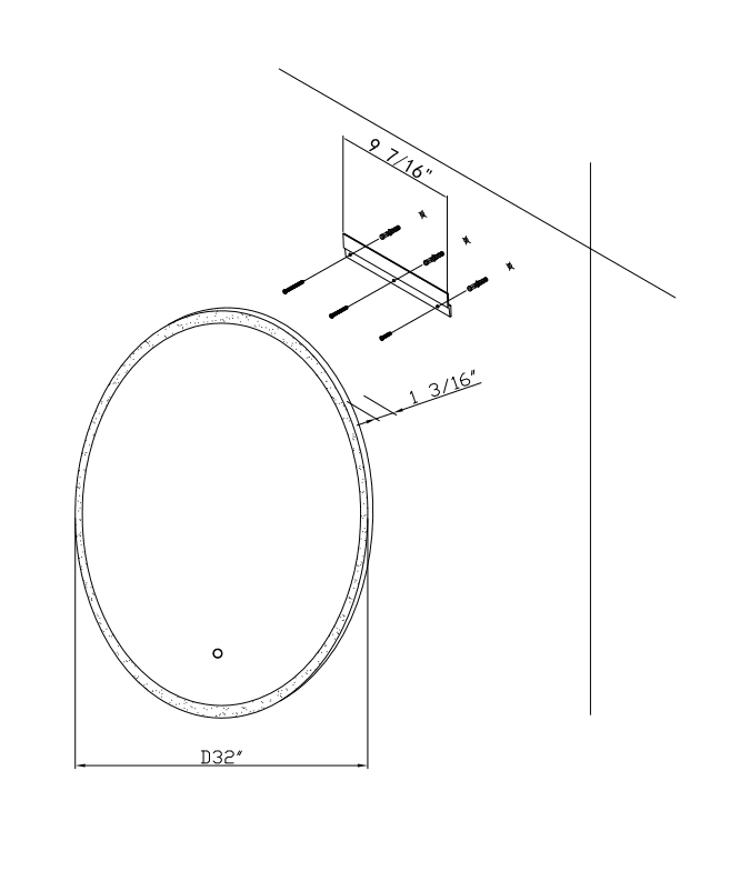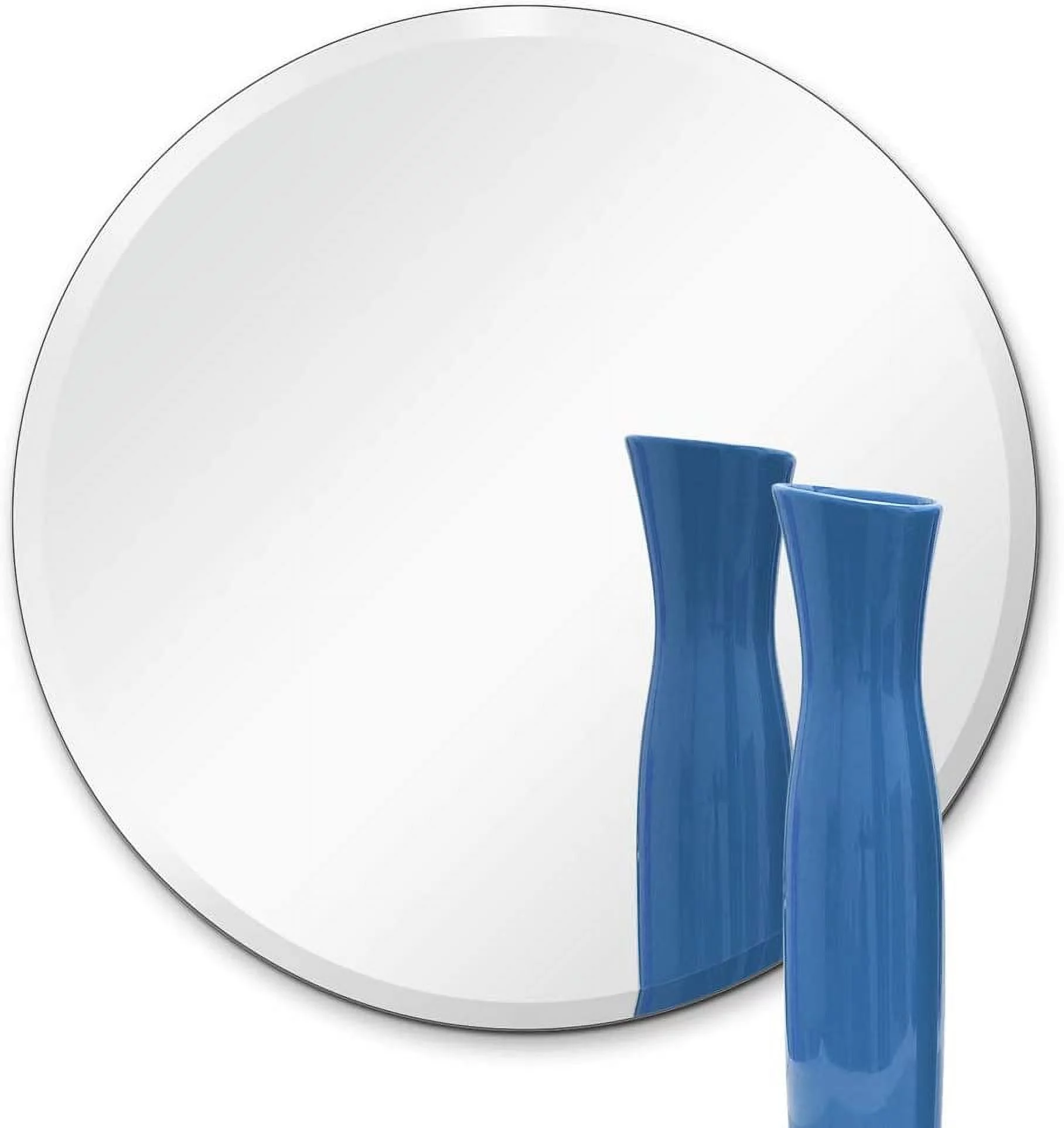 36 " Round Frameless Beveled Glass Mirror - 1/4 " Thick - With Hooks - By Dulles Glass