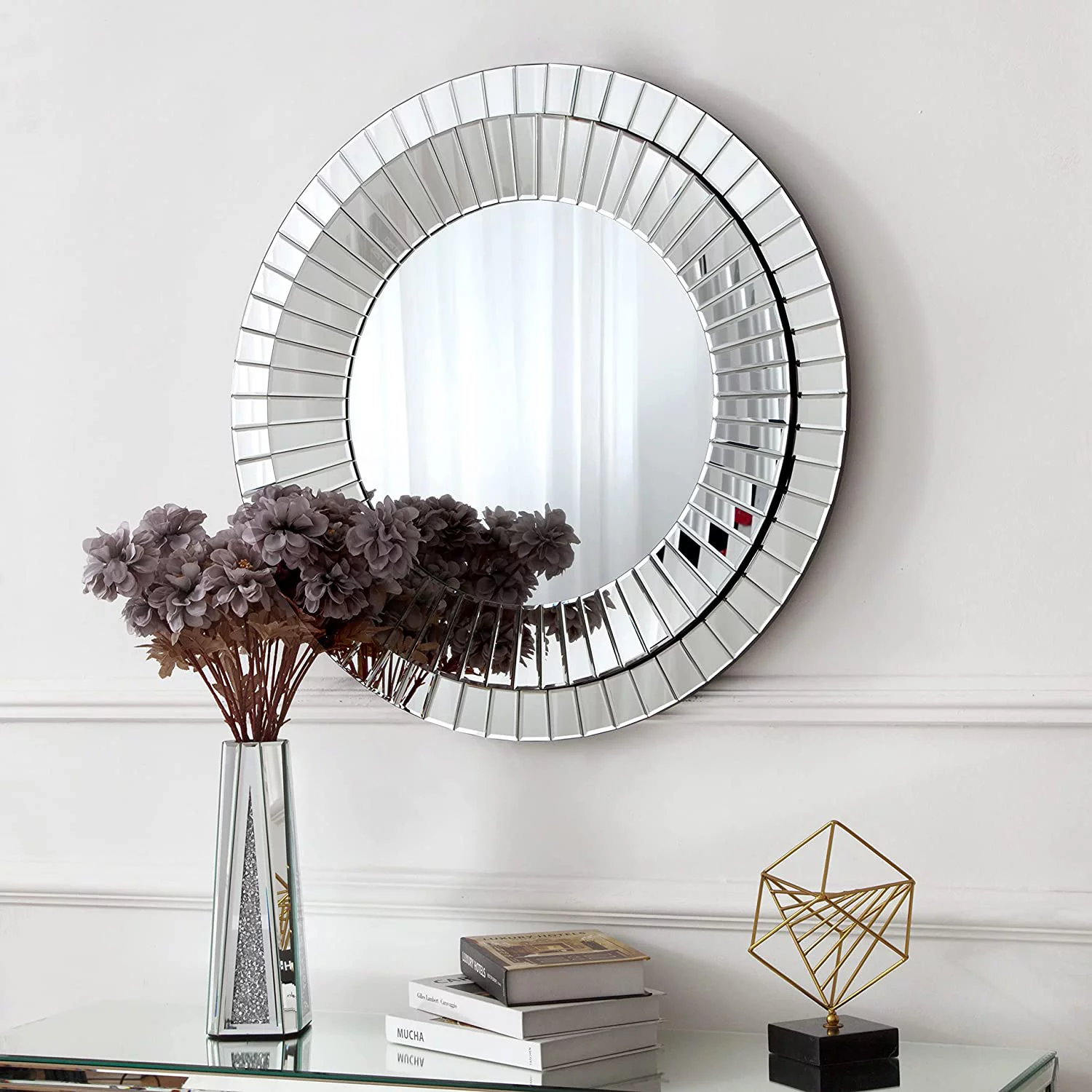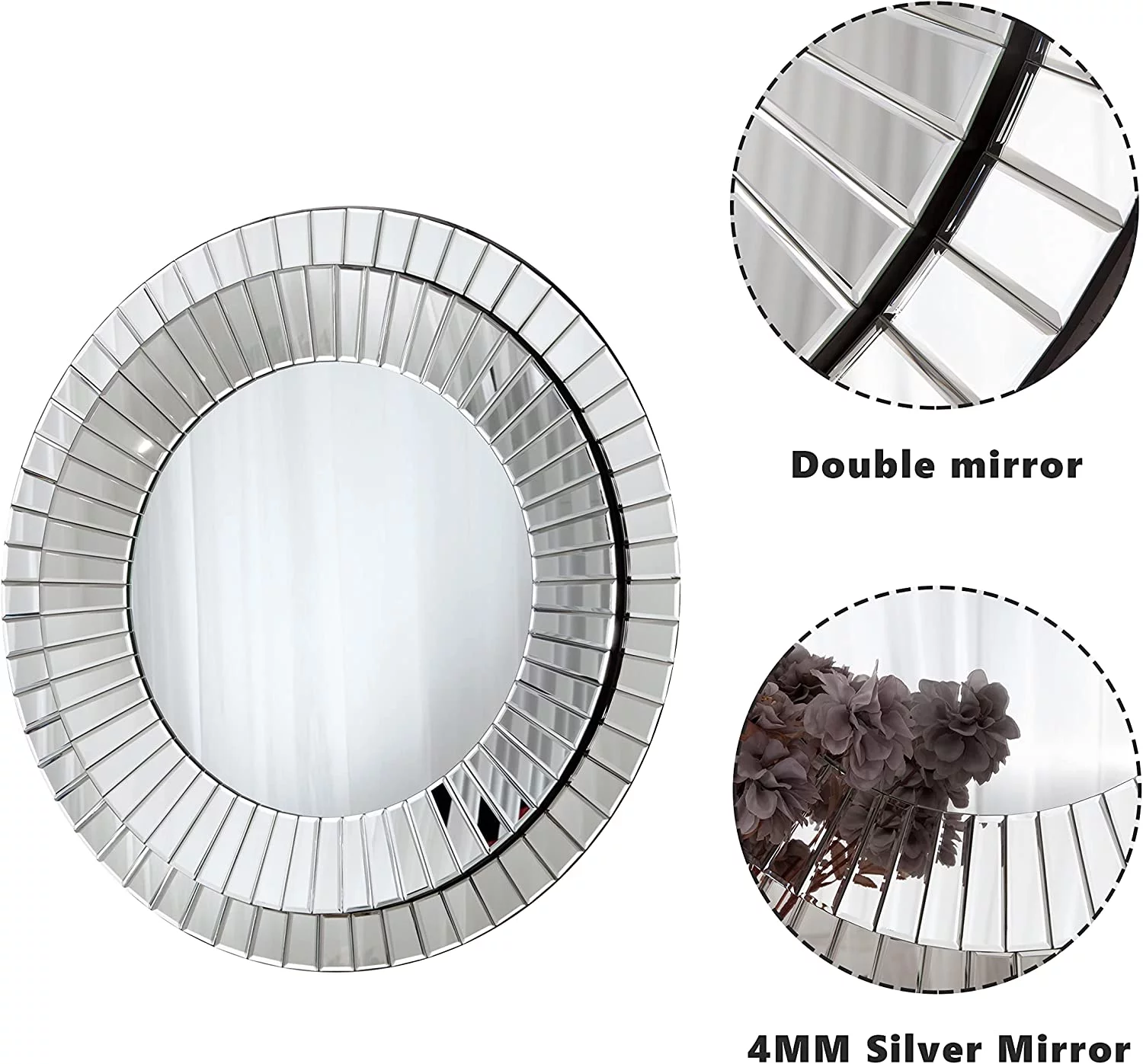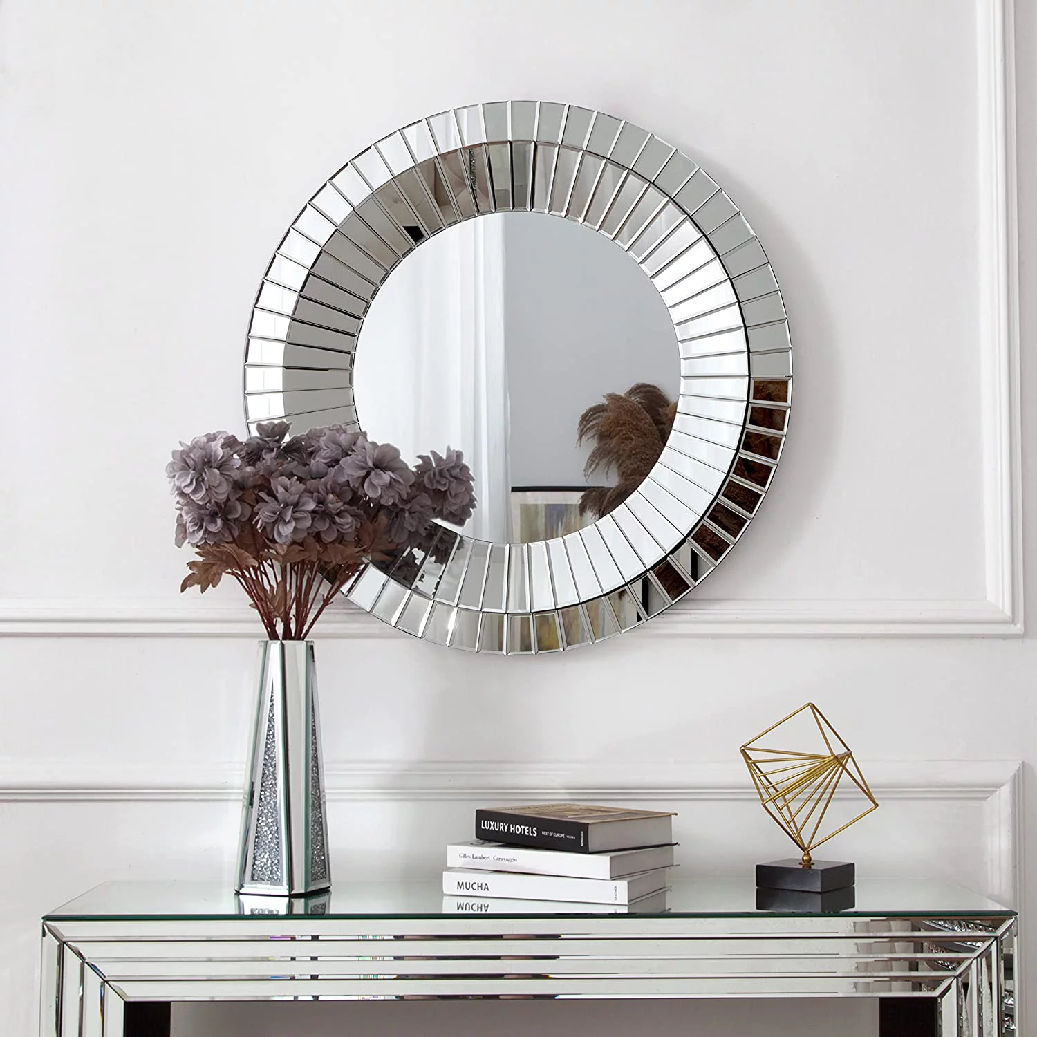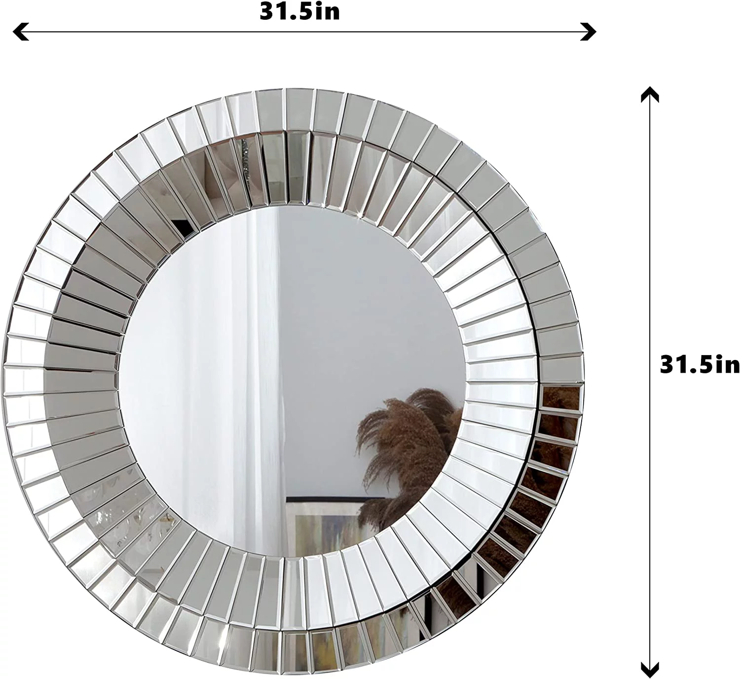SHYFOY 31.5'' Round Wall Mirror Decorative for Living Room,Accent Wall Mirrors Glass Beveled Frame for Home Decoration