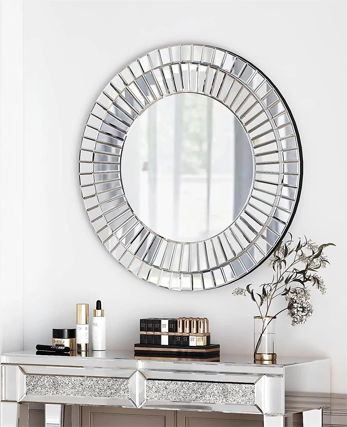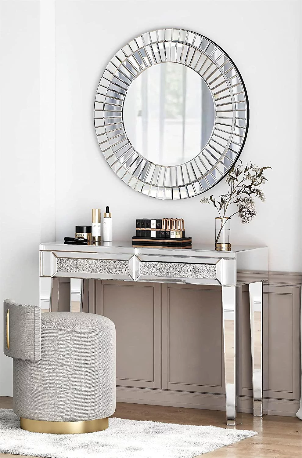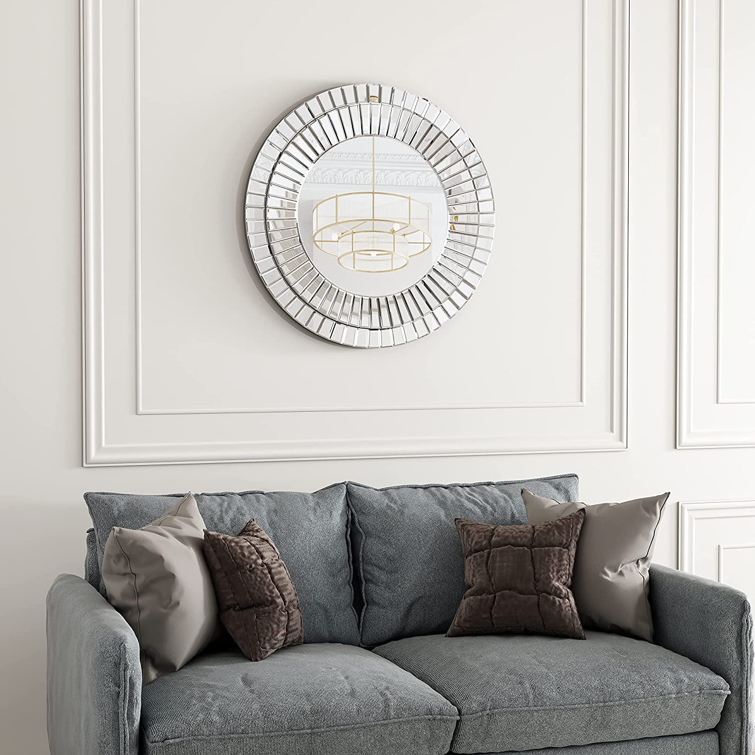 SHYFOY 31.5'' Round Wall Mirror Decorative for Living Room,Accent Wall Mirrors Glass Beveled Frame for Home Decoration