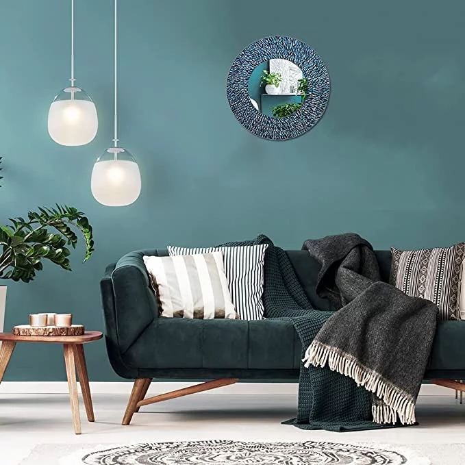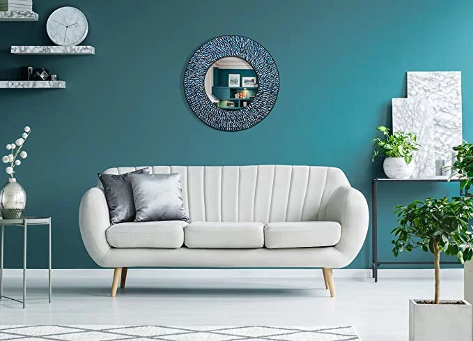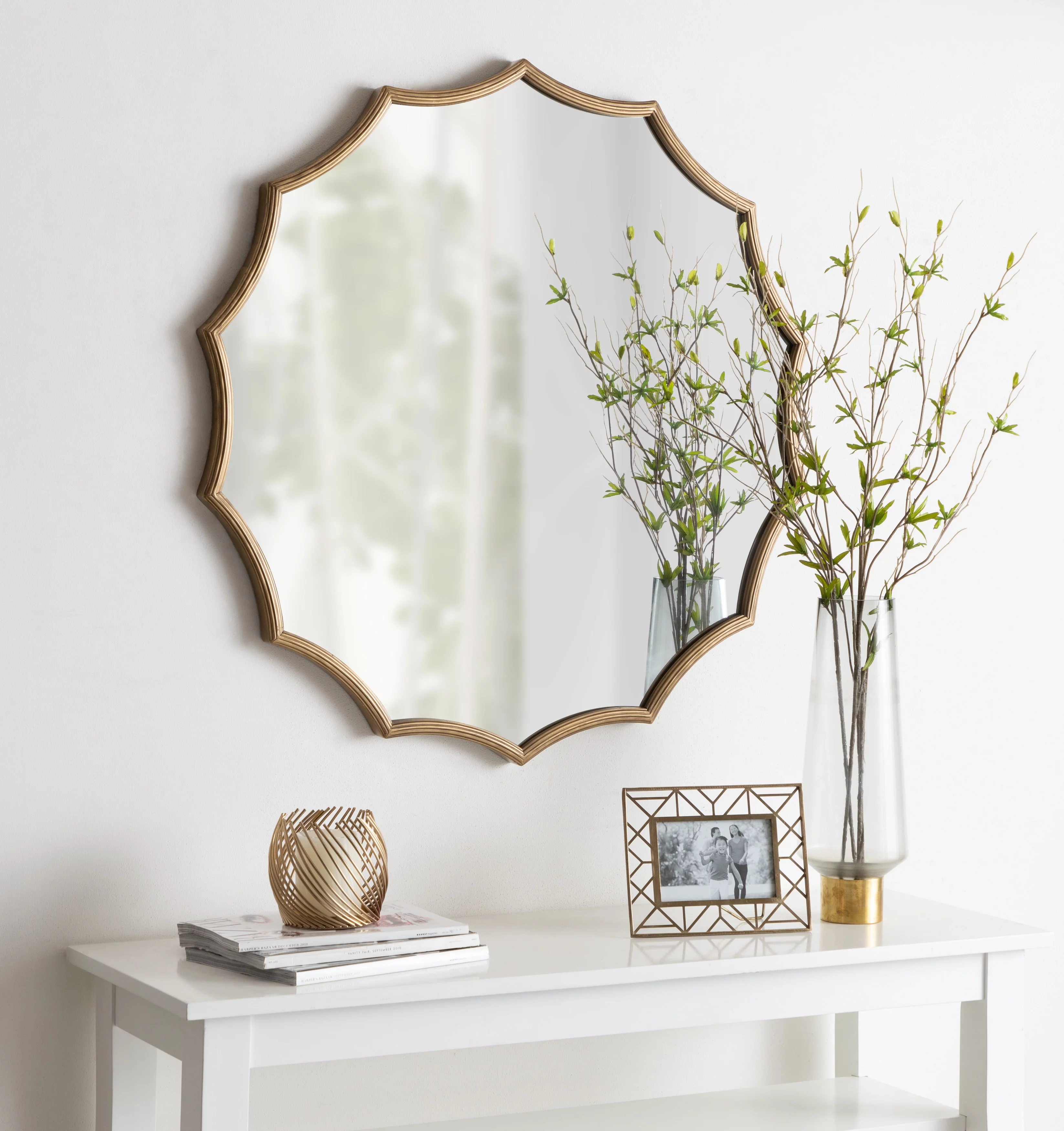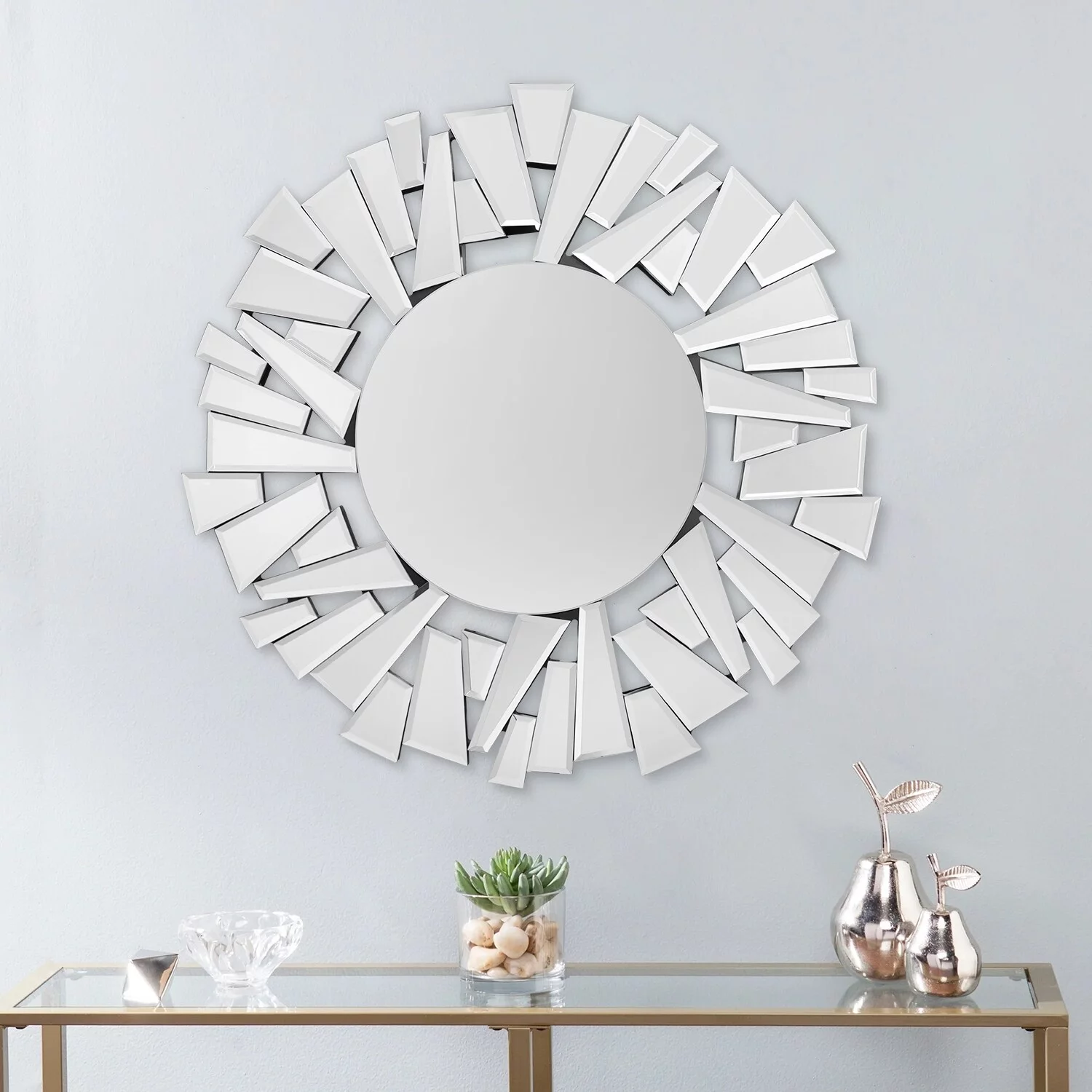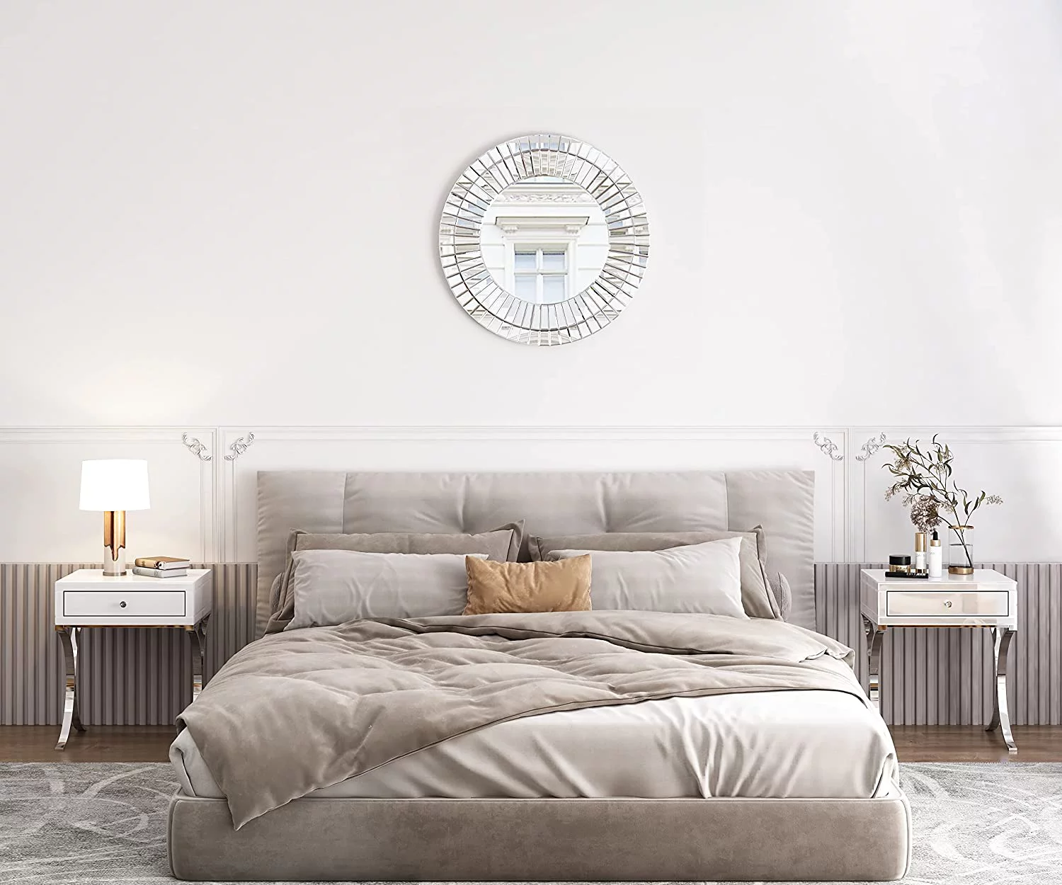 SHYFOY 31.5'' Round Wall Mirror Decorative for Living Room,Accent Wall Mirrors Glass Beveled Frame for Home Decoration