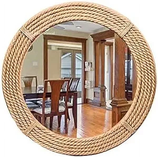 Home Dress Wall Mounted Nautical Round Jute Wall Mirror premium handmade for Hallway (24-inch).