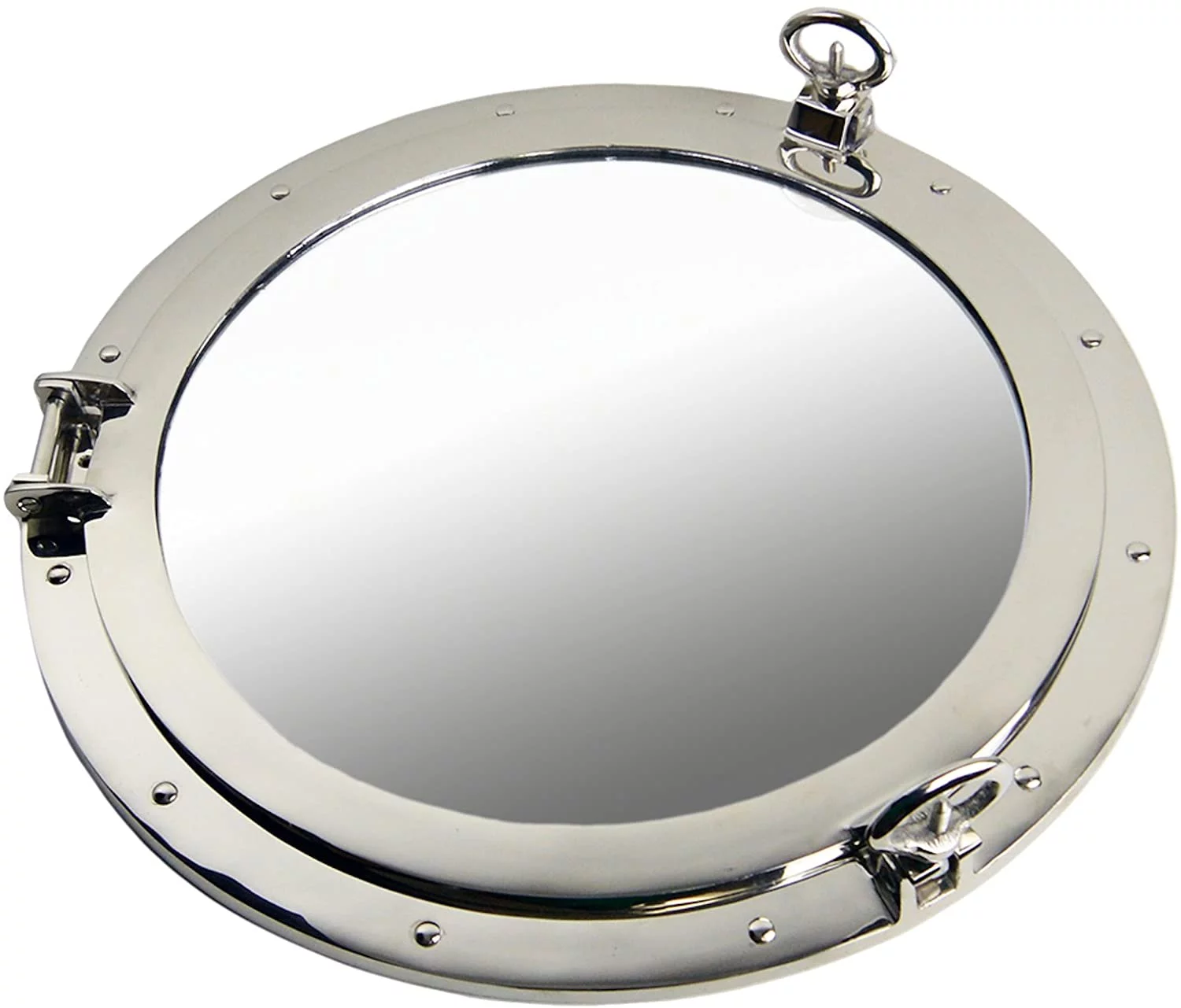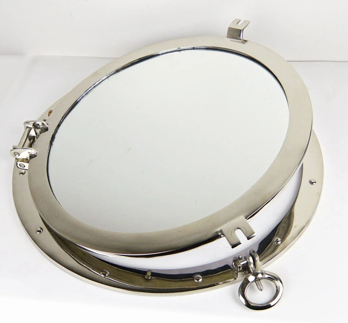 "Nautical Tropical Imports Porthole Mirror Nickel Finish Over Solid Brass Wall Mount 20 Inch"