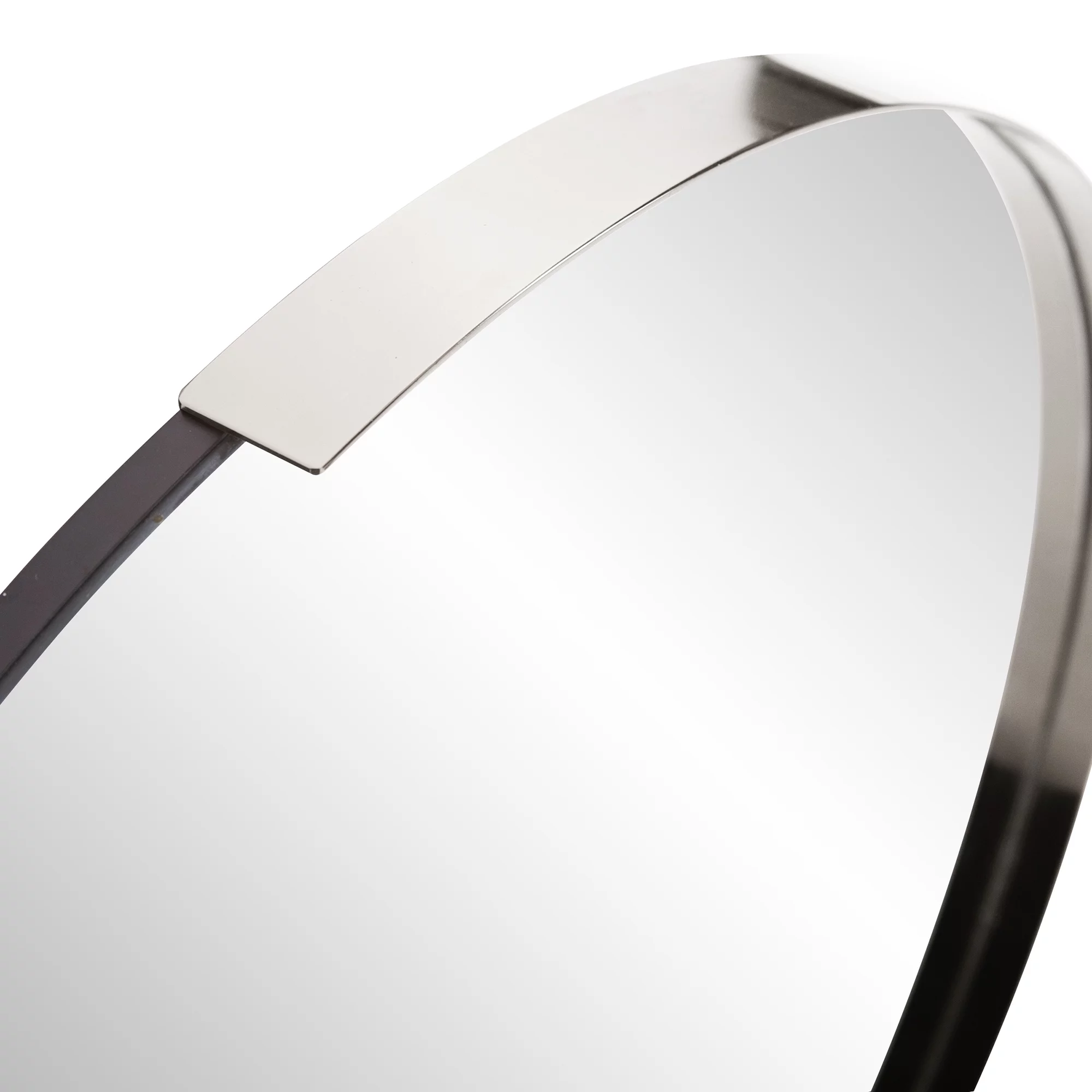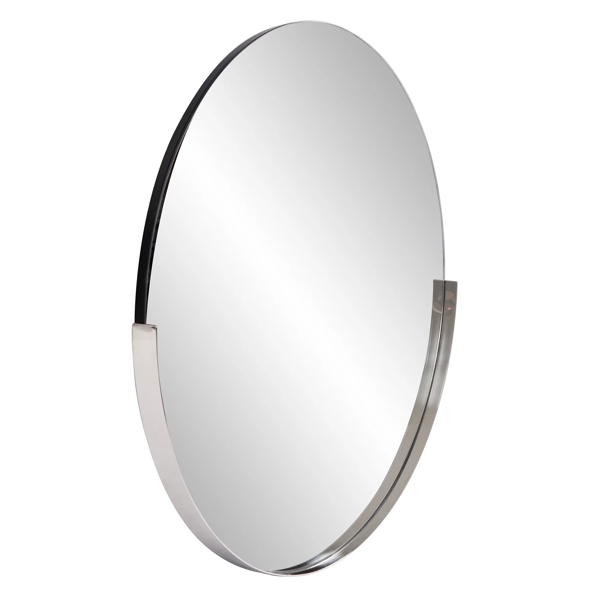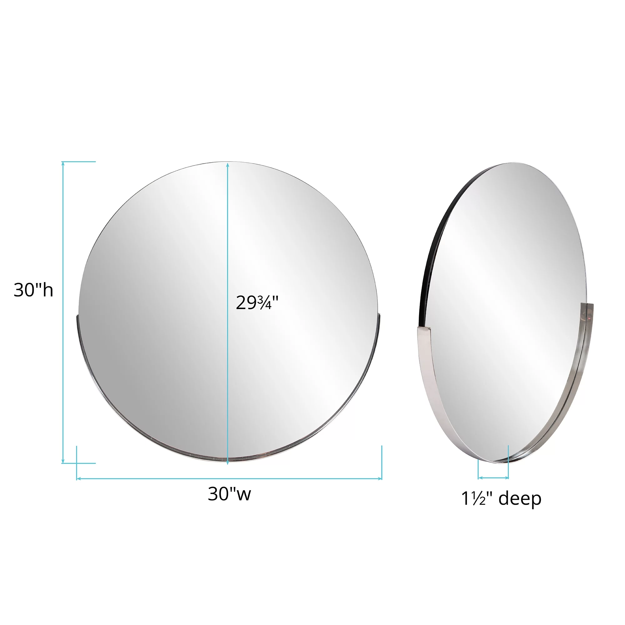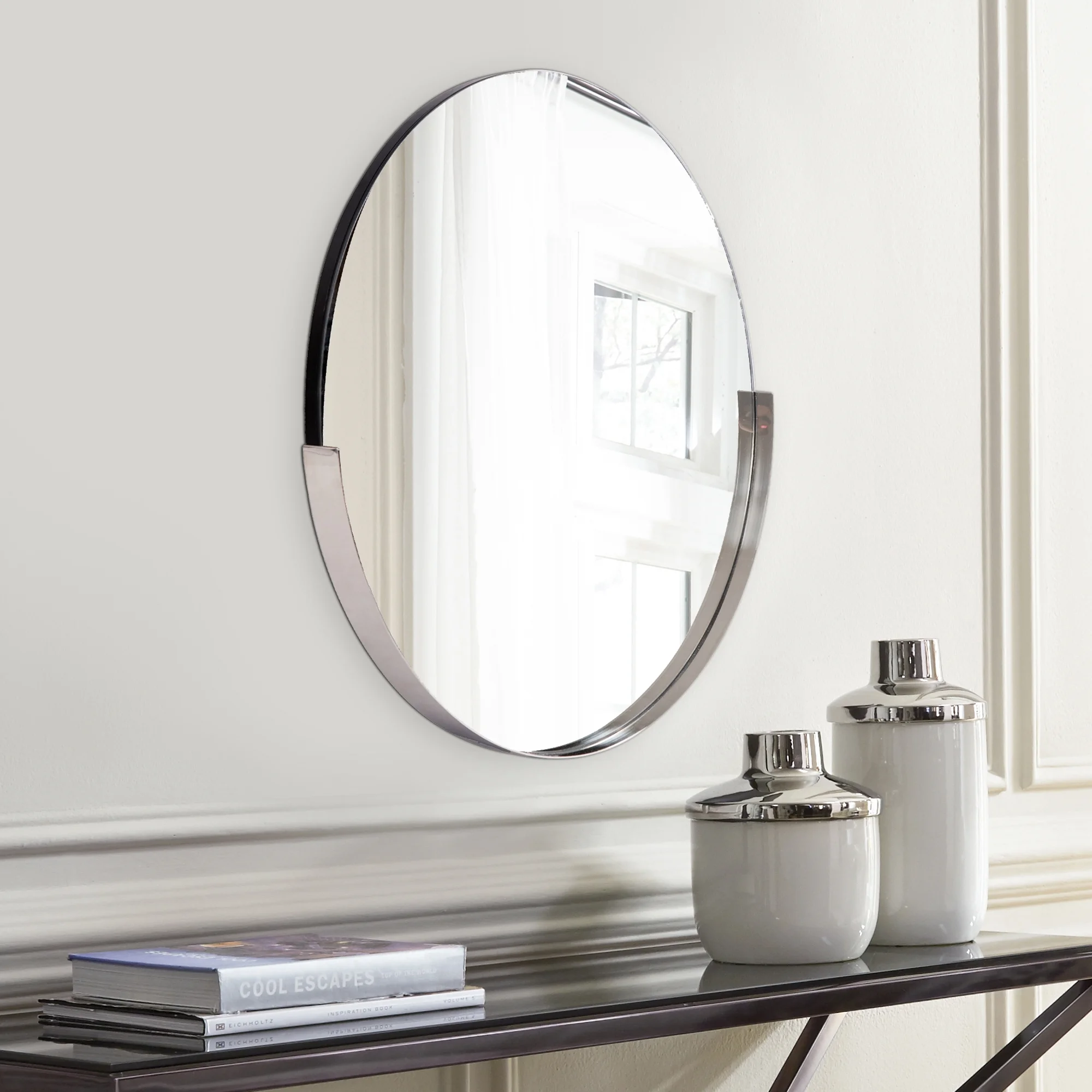 Tyler Dillon Silver Round Wall Mirror with Partial Stainless Steel Frame 30"D