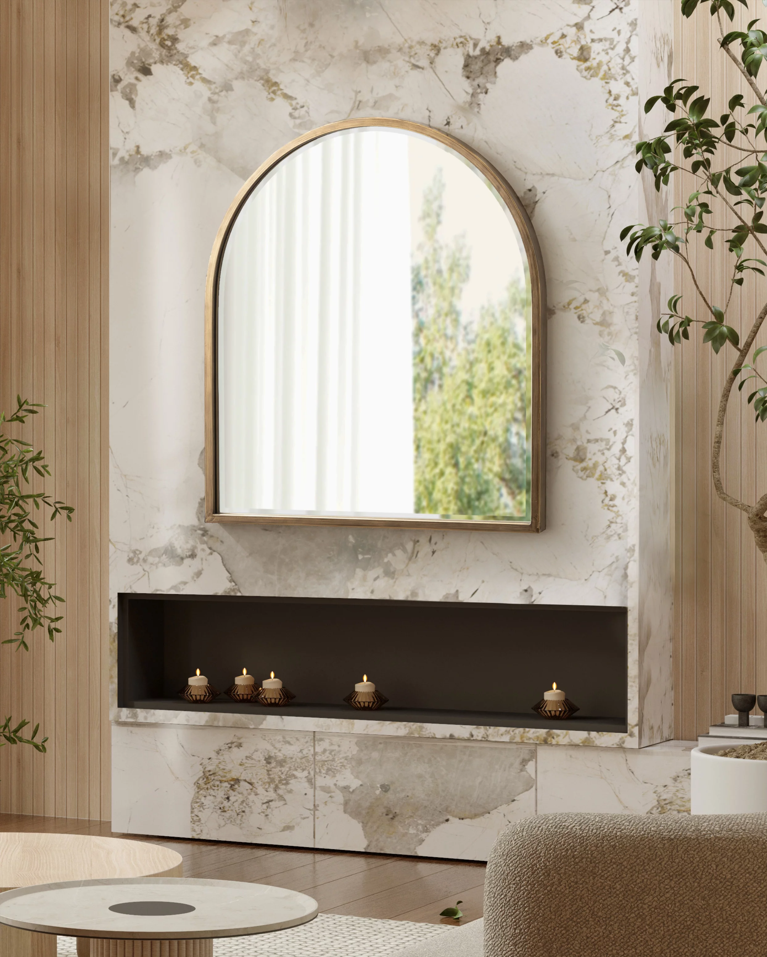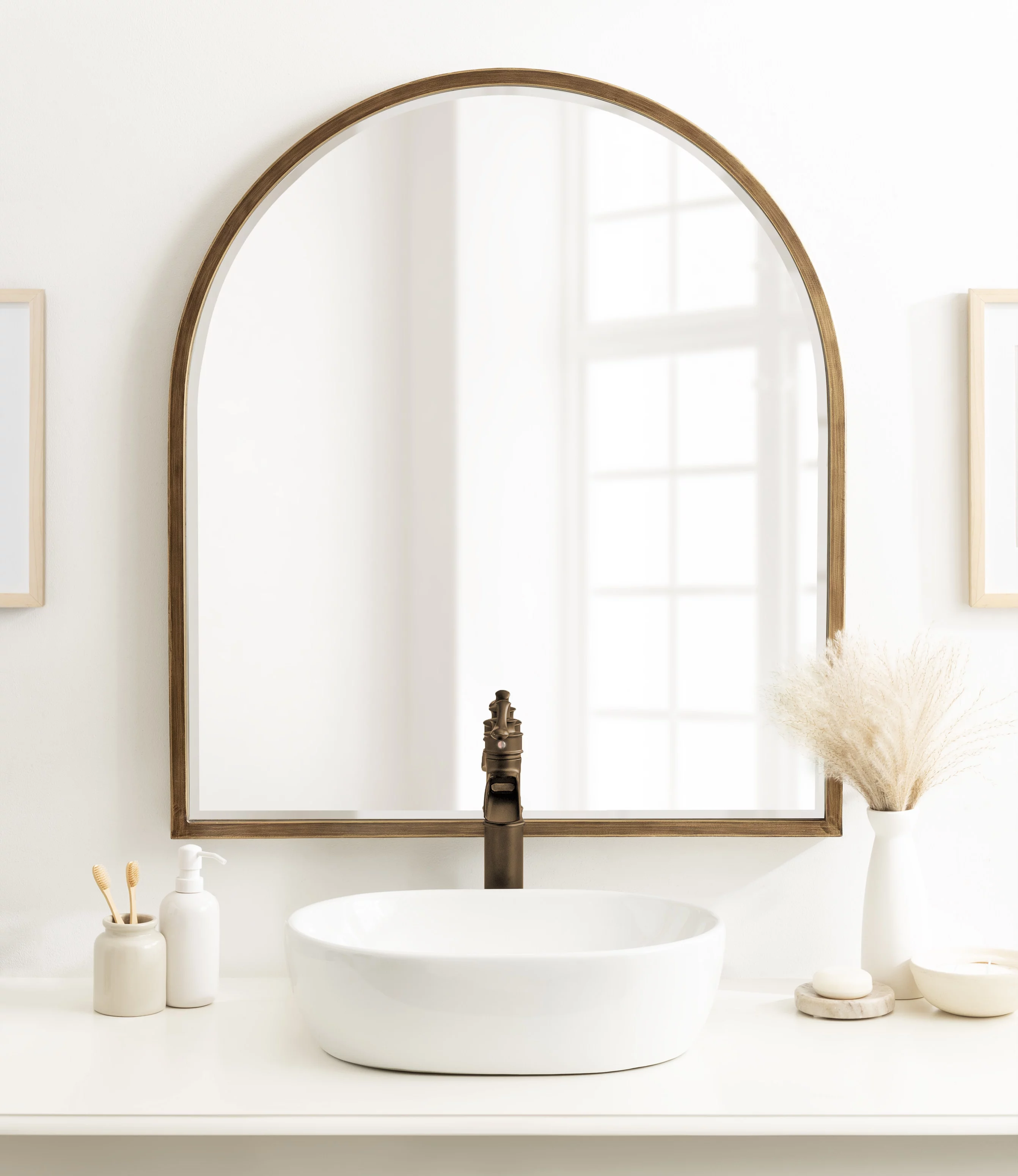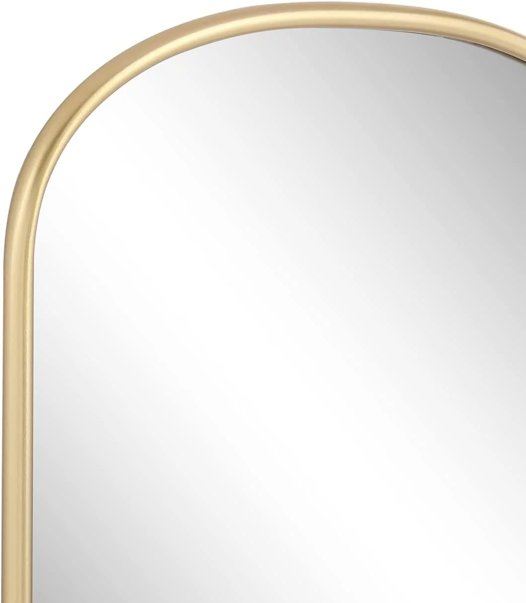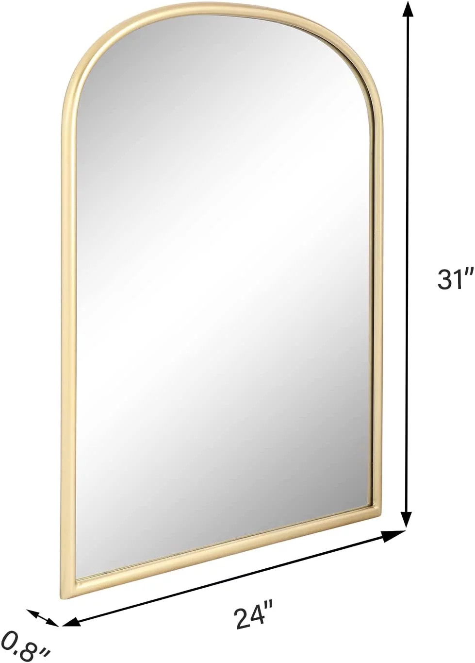 LuuLake Arch Mirror Round Metal Frame Wall Mirror Mid Century Modern Decor Arch Bathroom Mirror 24"x31" ,Gold