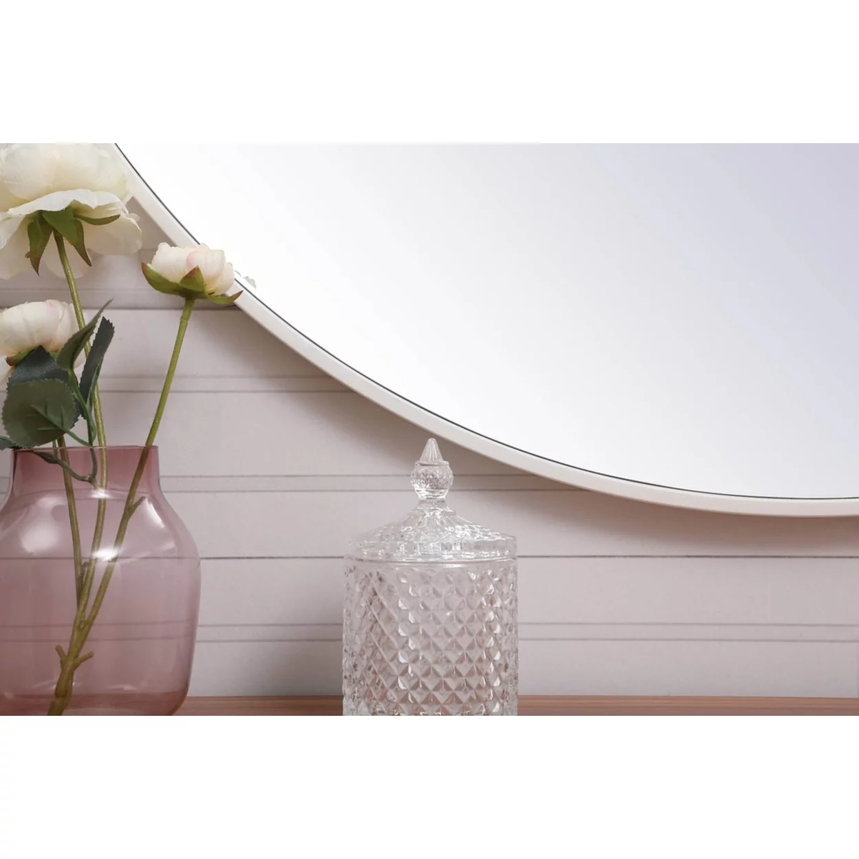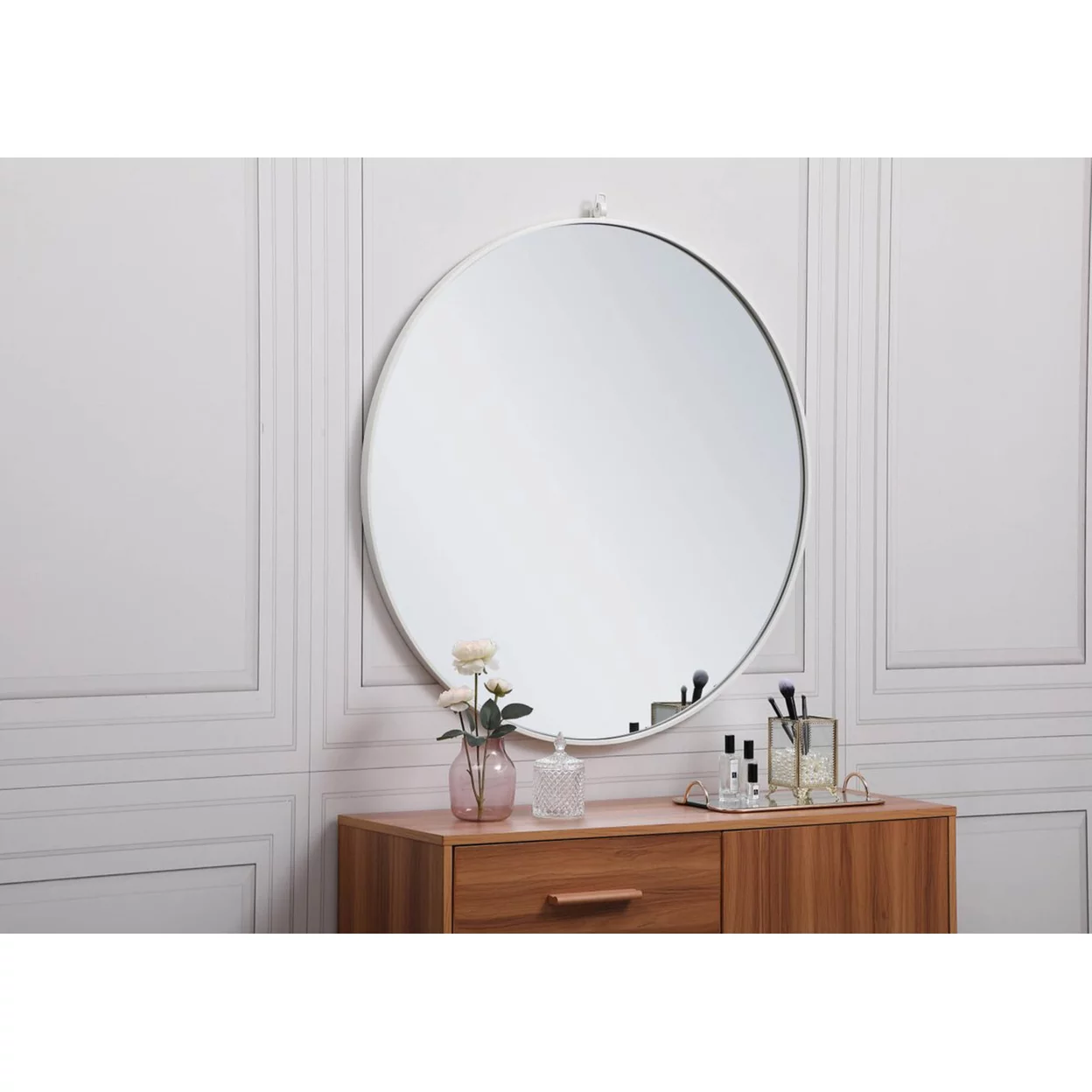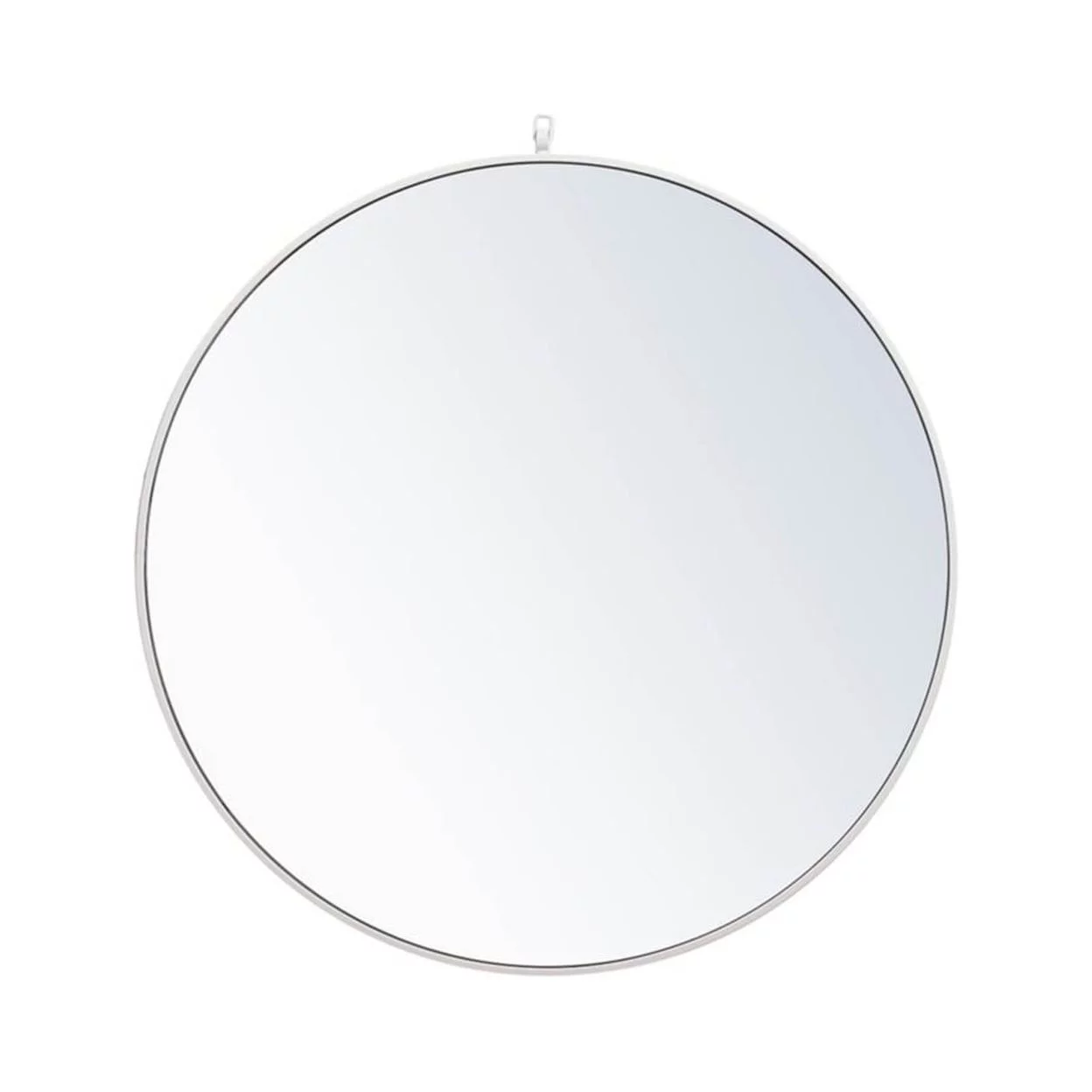 Midcentury Modern Metal Frame Round Mirror With Decorative Hook 36" In White