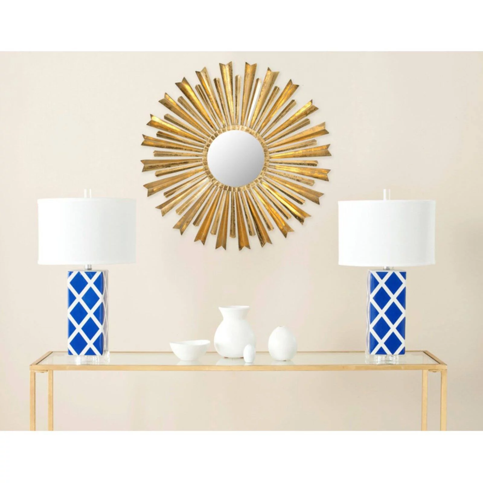 32 Inch Accent Wall Mirror, Round Metal Frame with Agate Inspired Pattern- Saltoro Sherpi