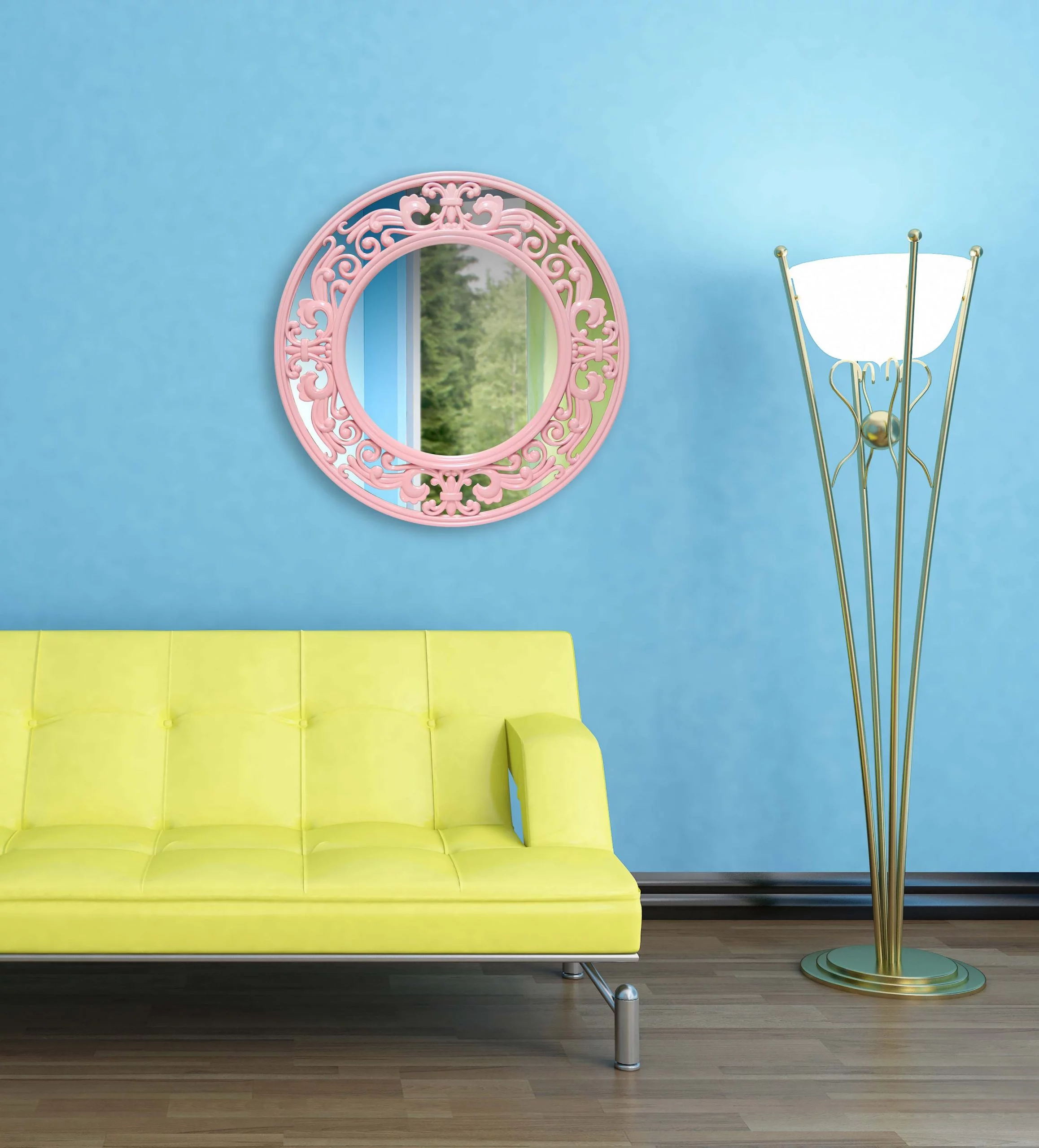 Infinity Instruments Bubblegum Victoria Pink Round Transitional 23.5-inch Wall Mirror