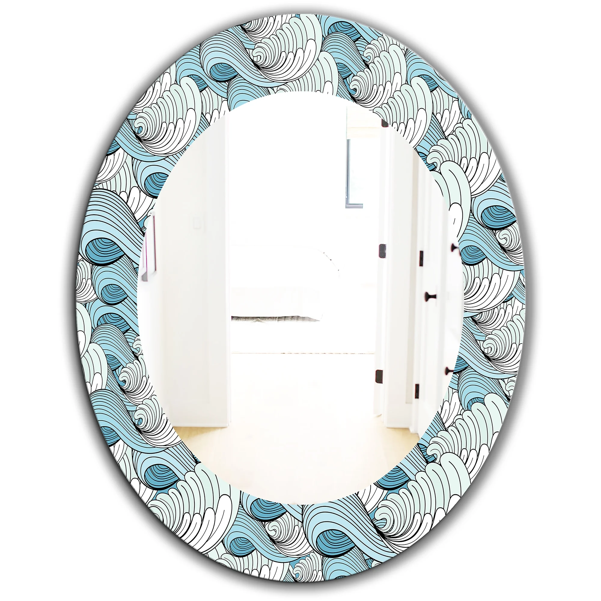 Designart 'Great Wave Inspiration' Traditional Mirror - Oval or Round Wall Mirror