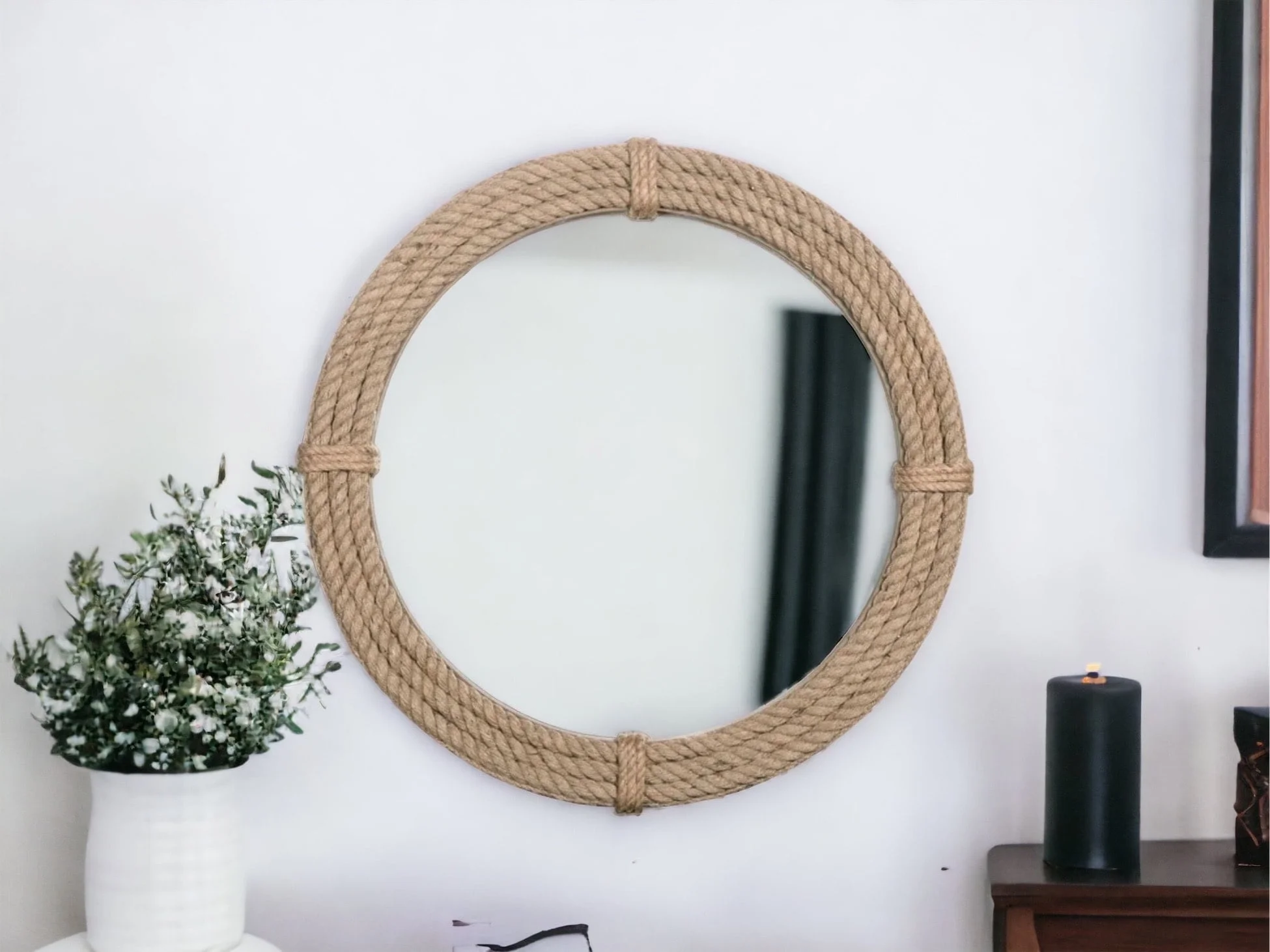 Capital International Brown Wall Mounted Nautical Jute Mirror for Hallway / Hanging Mirror (18')