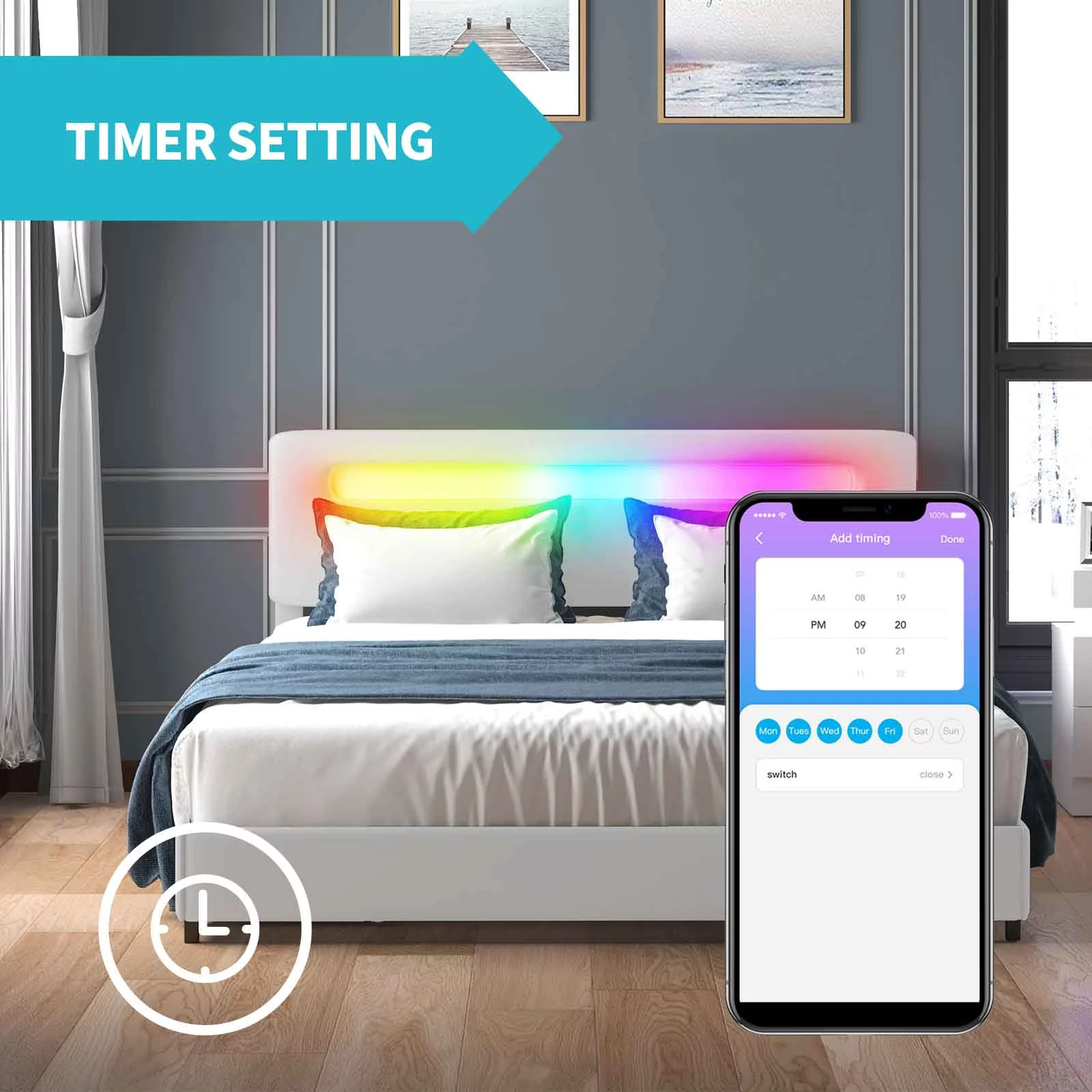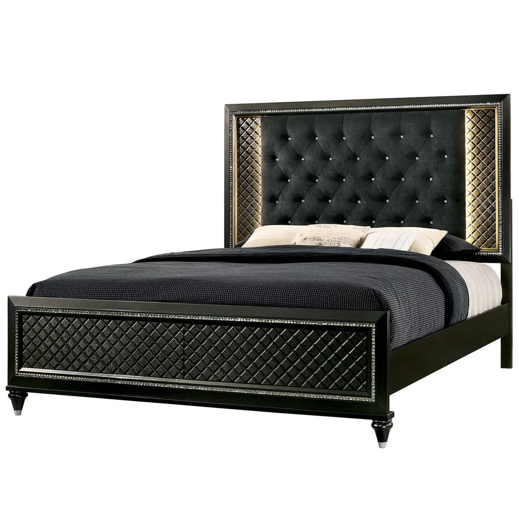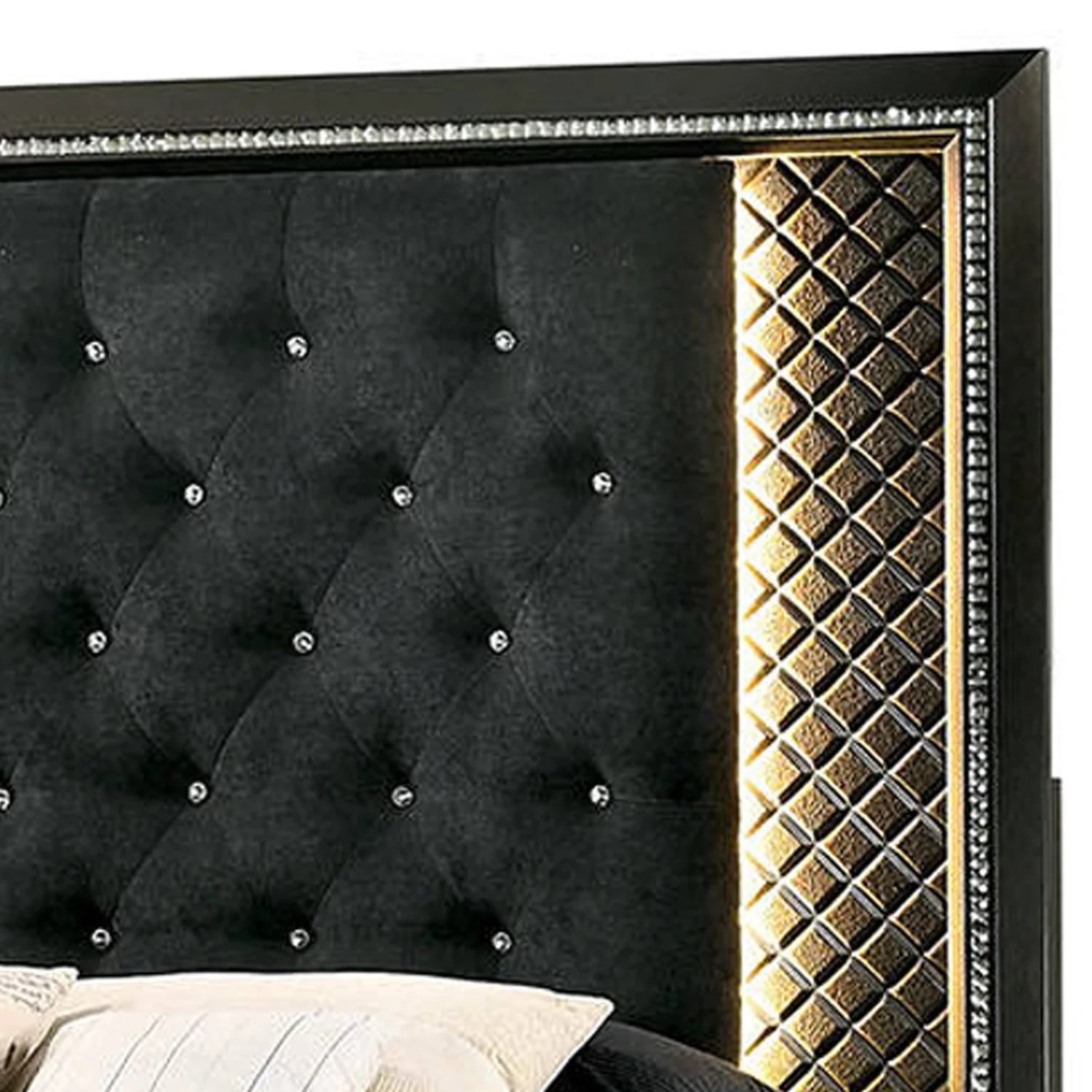 Pearl Black Metallic Finish Eastern King Bed 1pc Button-Tufted LED Headboard Bed Modern Bedroom Furniture