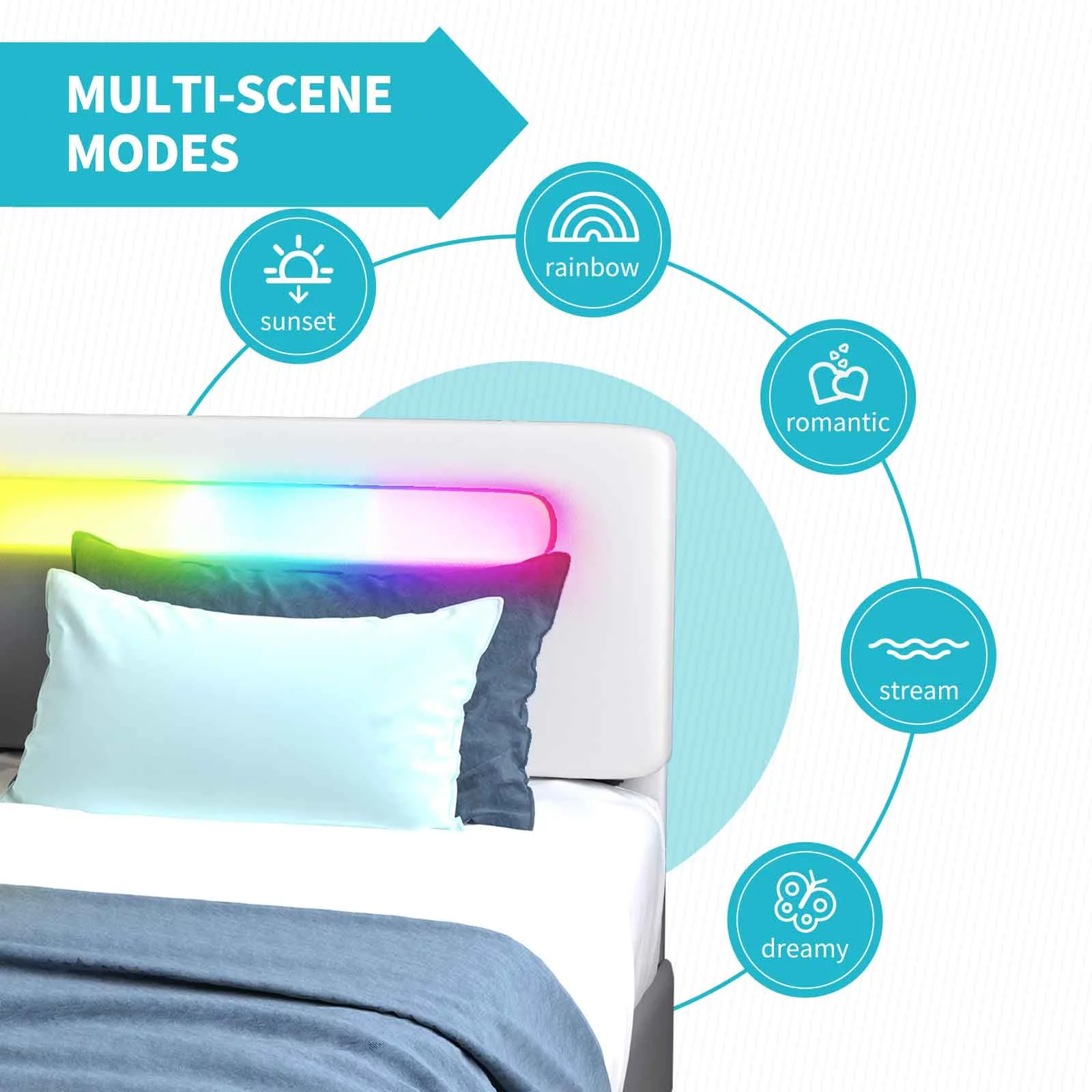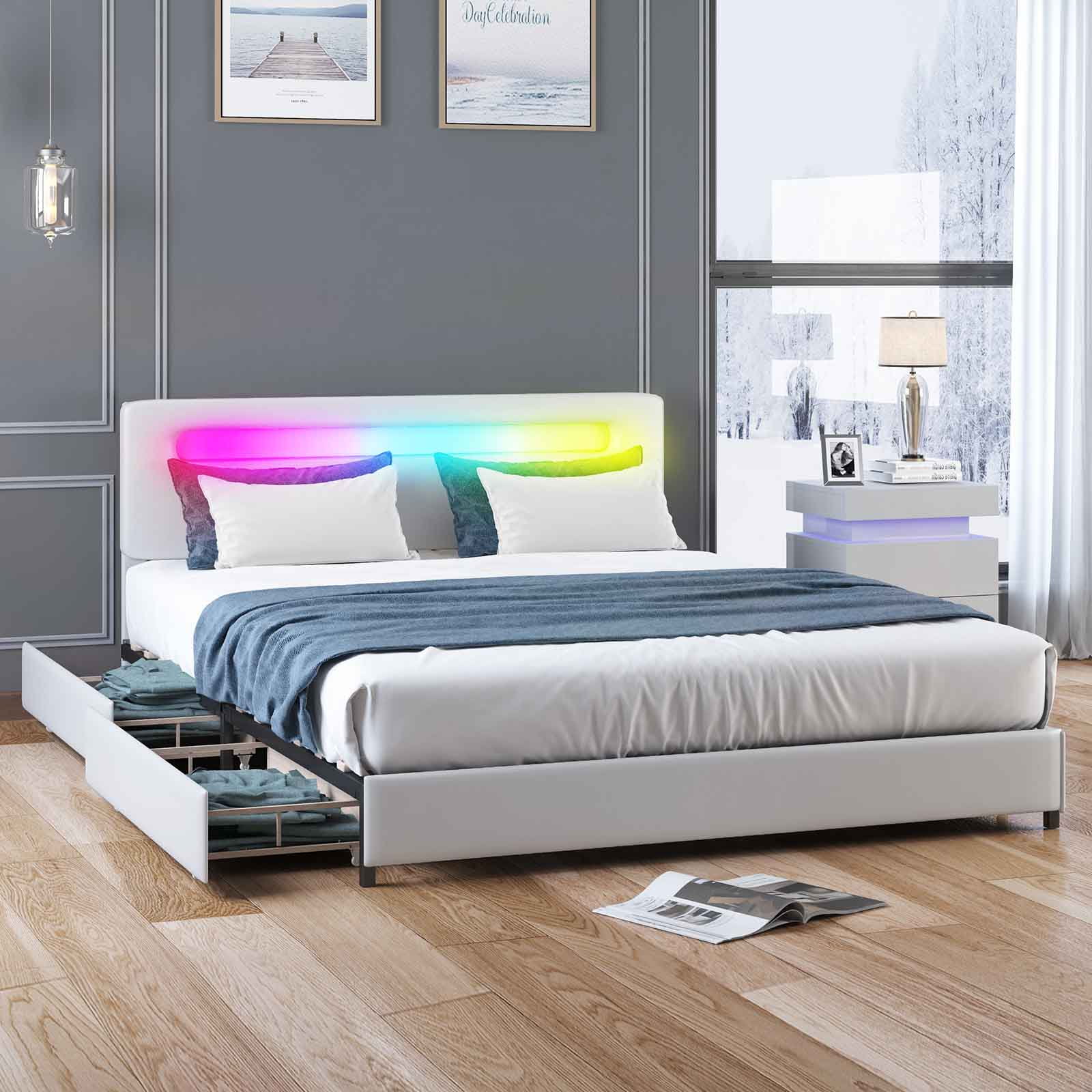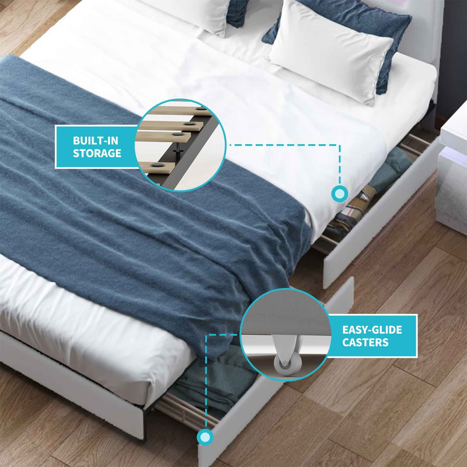 2 Drawer California King Bed with Button Tufted Headboard and LED Trim,Gray
