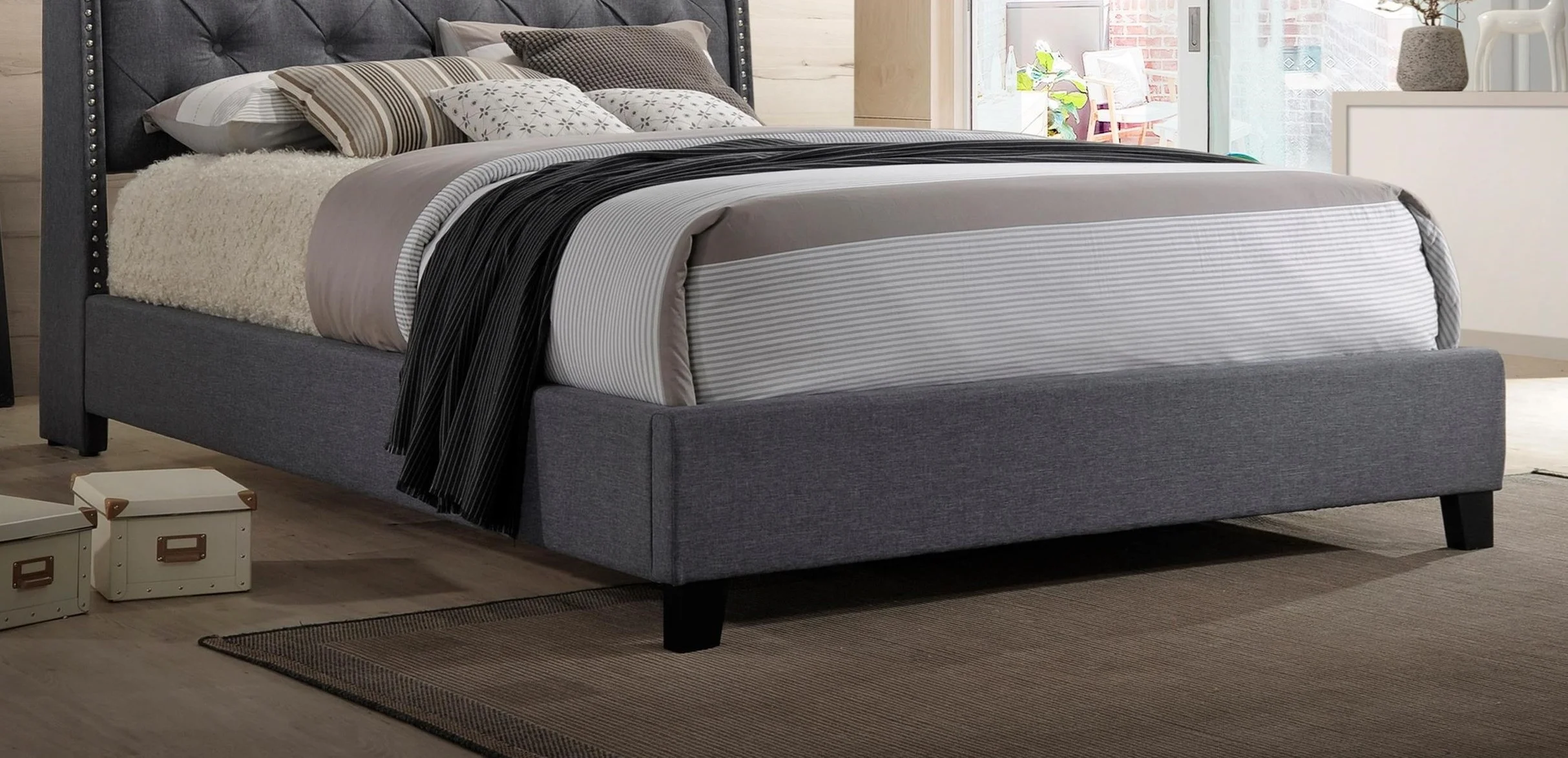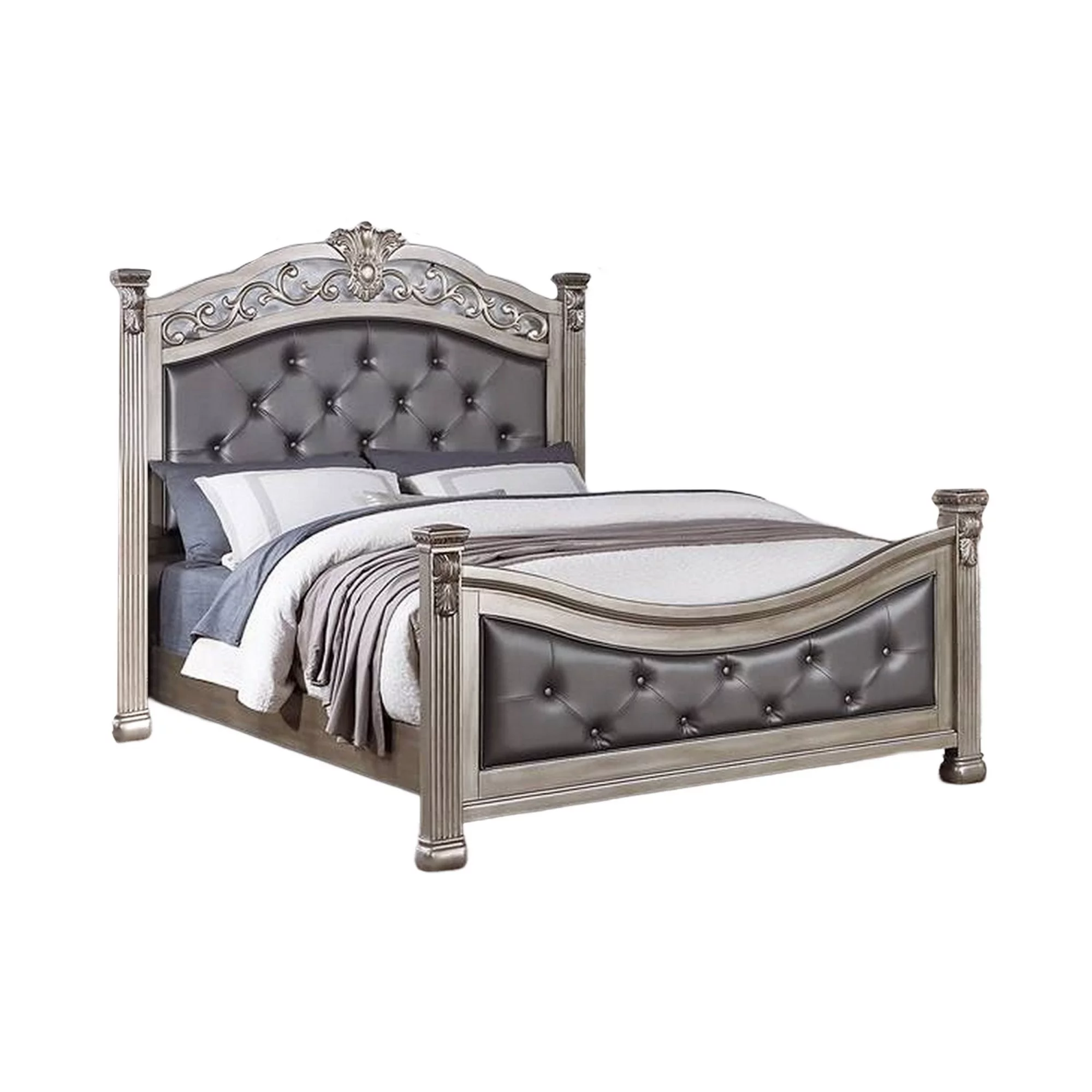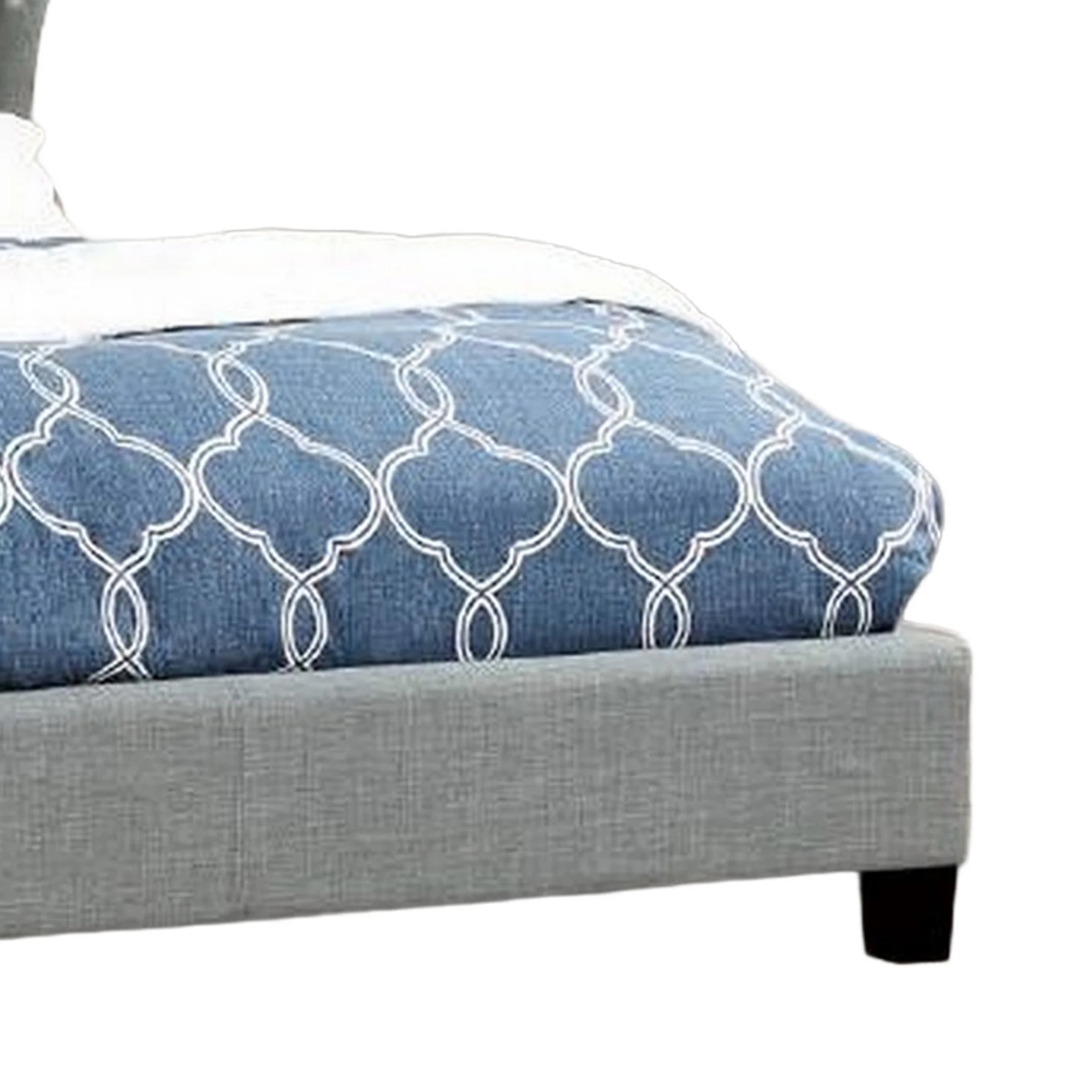 Benjara Ancy King Size Bed, Tufted and Upholstered Headboard, Light Gray Finish