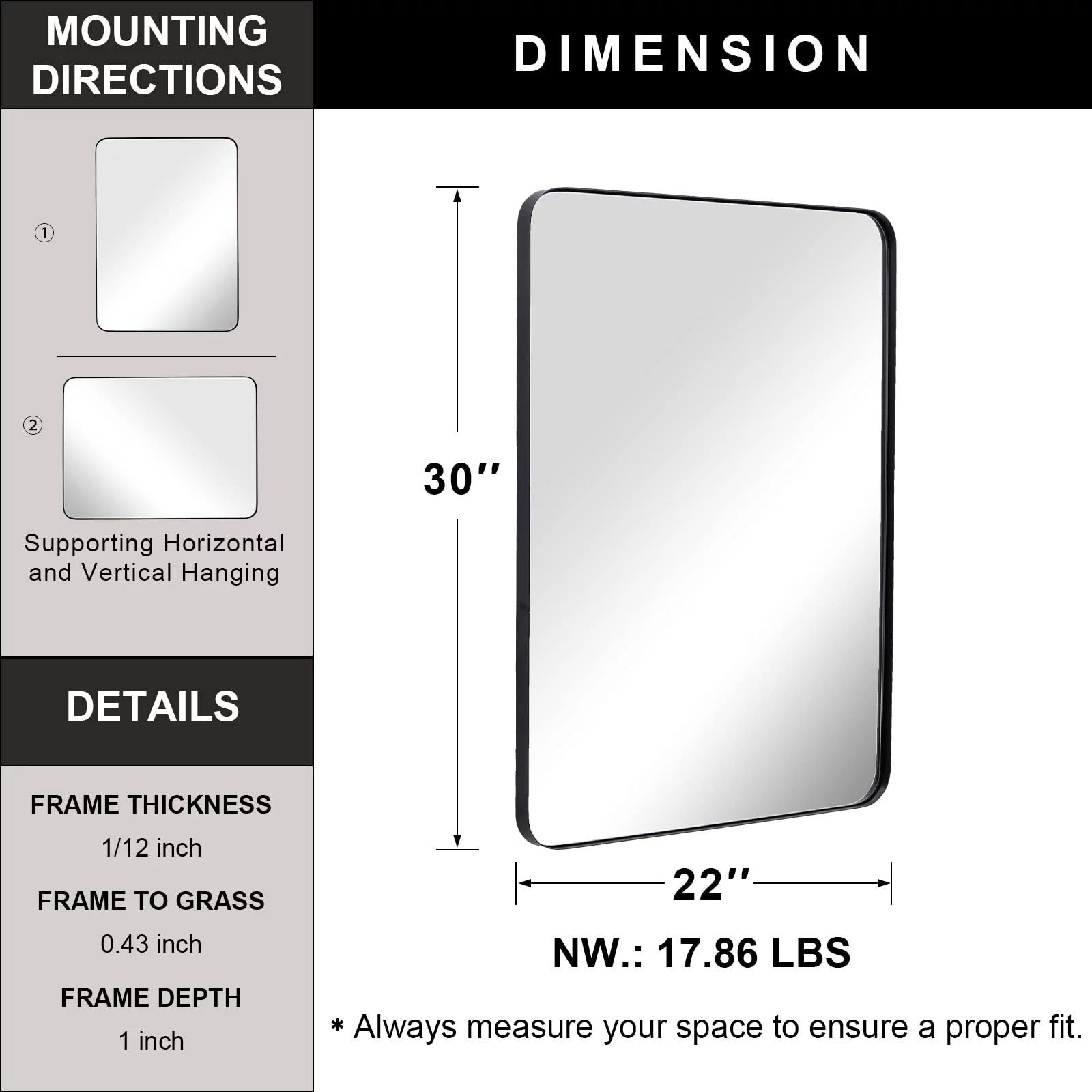 NeuType Large Arch Mirror Full Length 71"x24" Round Corner Aluminum Alloy Mirror,Black