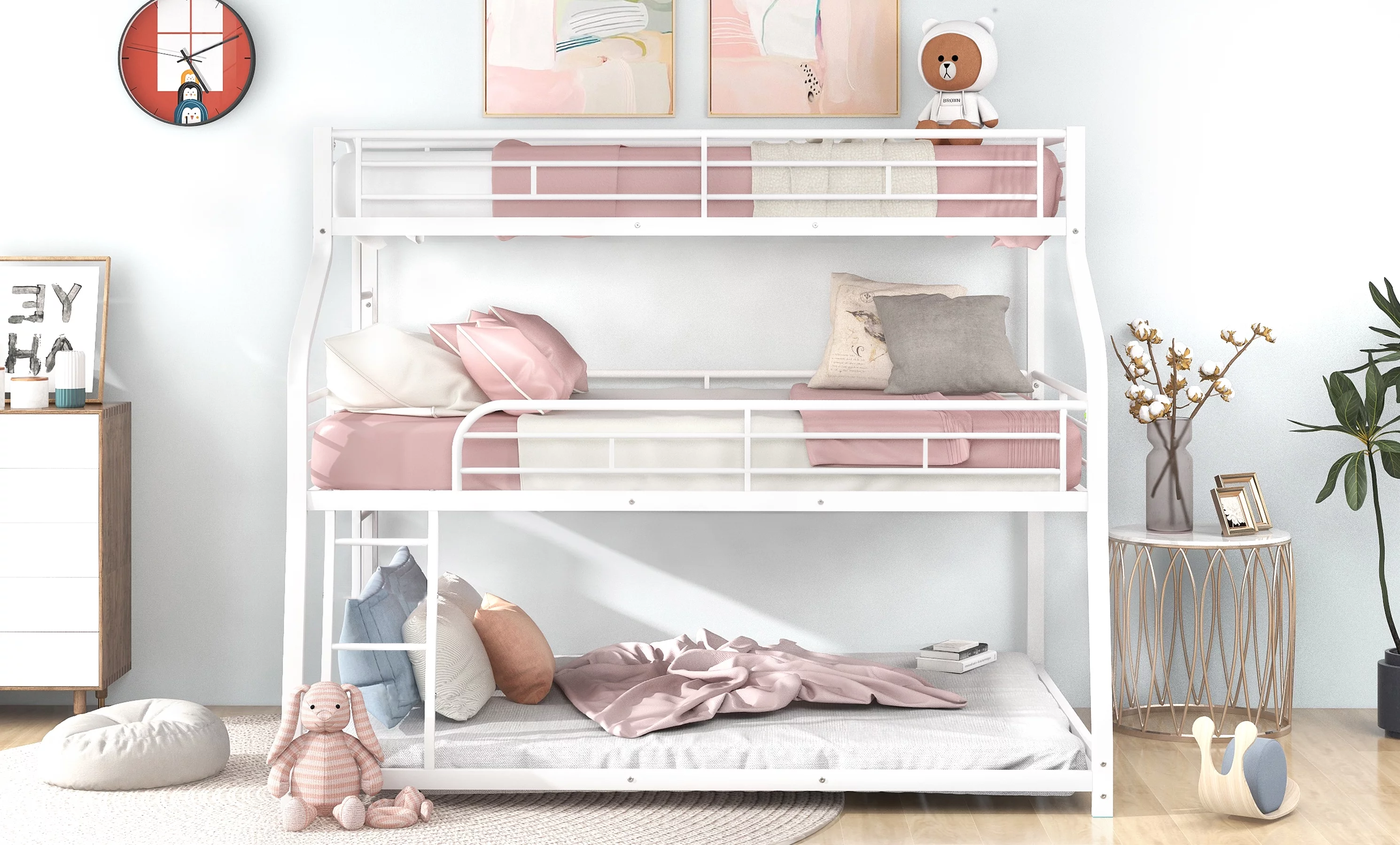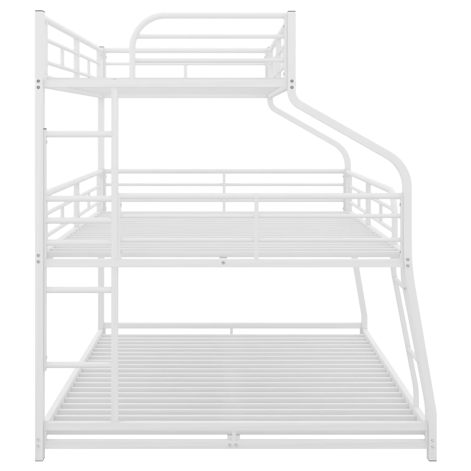 Twin XL/Full XL/Queen Triple Bunk Bed with Long and Short Ladder and Full-Length Guardrails,White