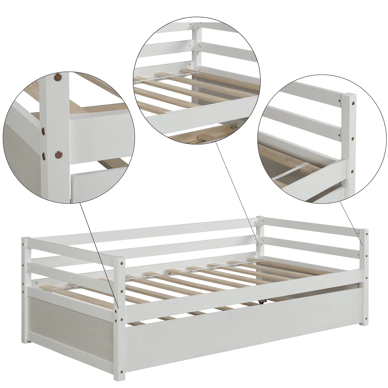 Wooden Twin Size House Bed with 2 Drawers and Storage Shelf,Twin Platform Bed Frame with Pitched Roof