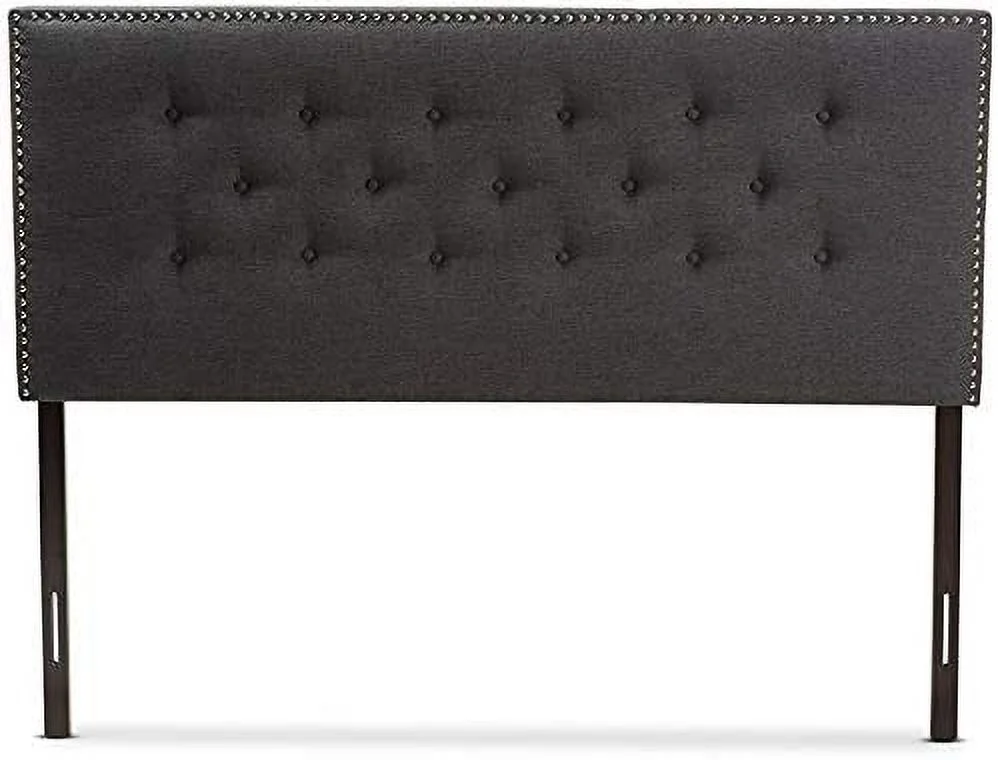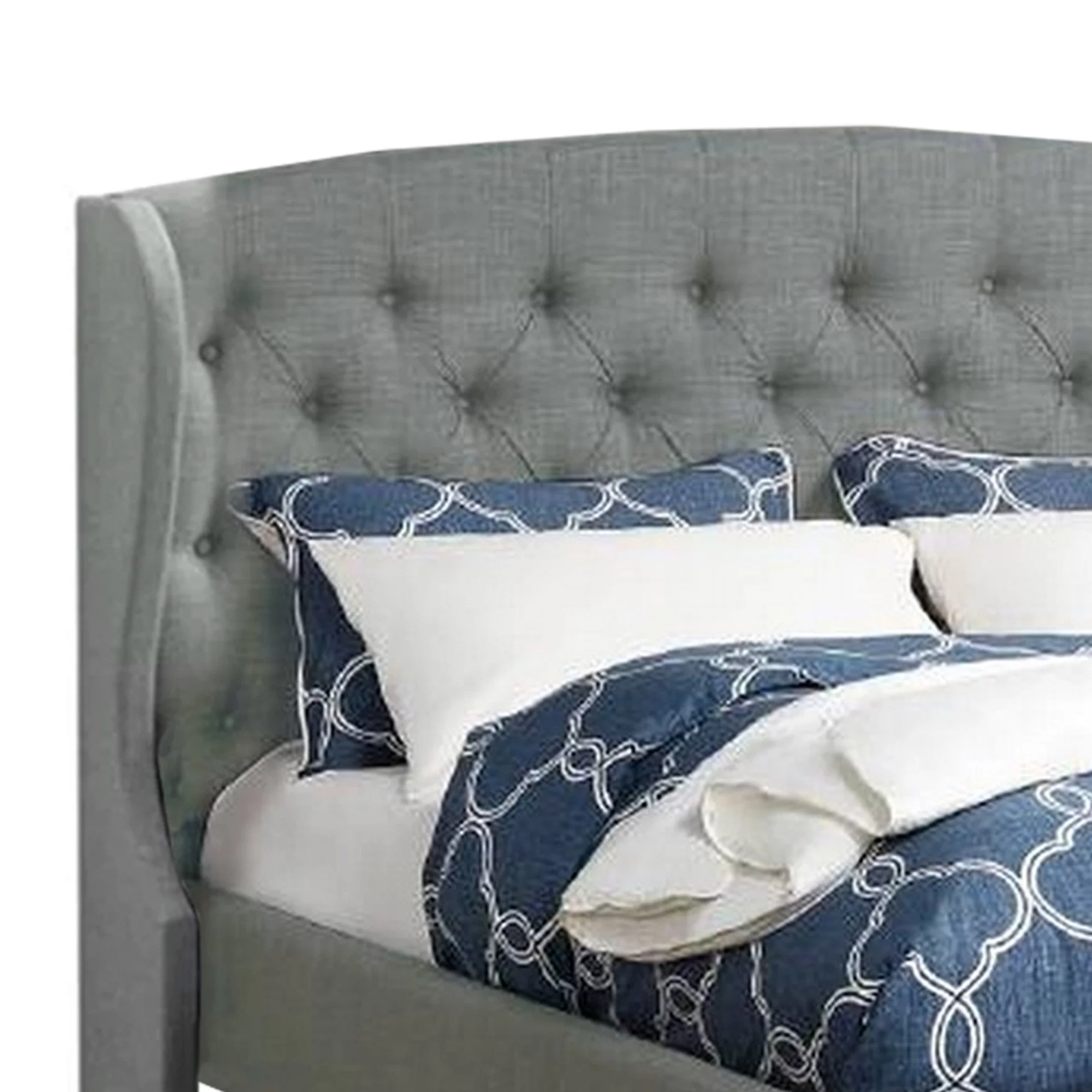1Pc Grey Color Elegant Contemporary Upholstered King Bed Button Tufted Headboard Demi-Wings Bedroom Furniture