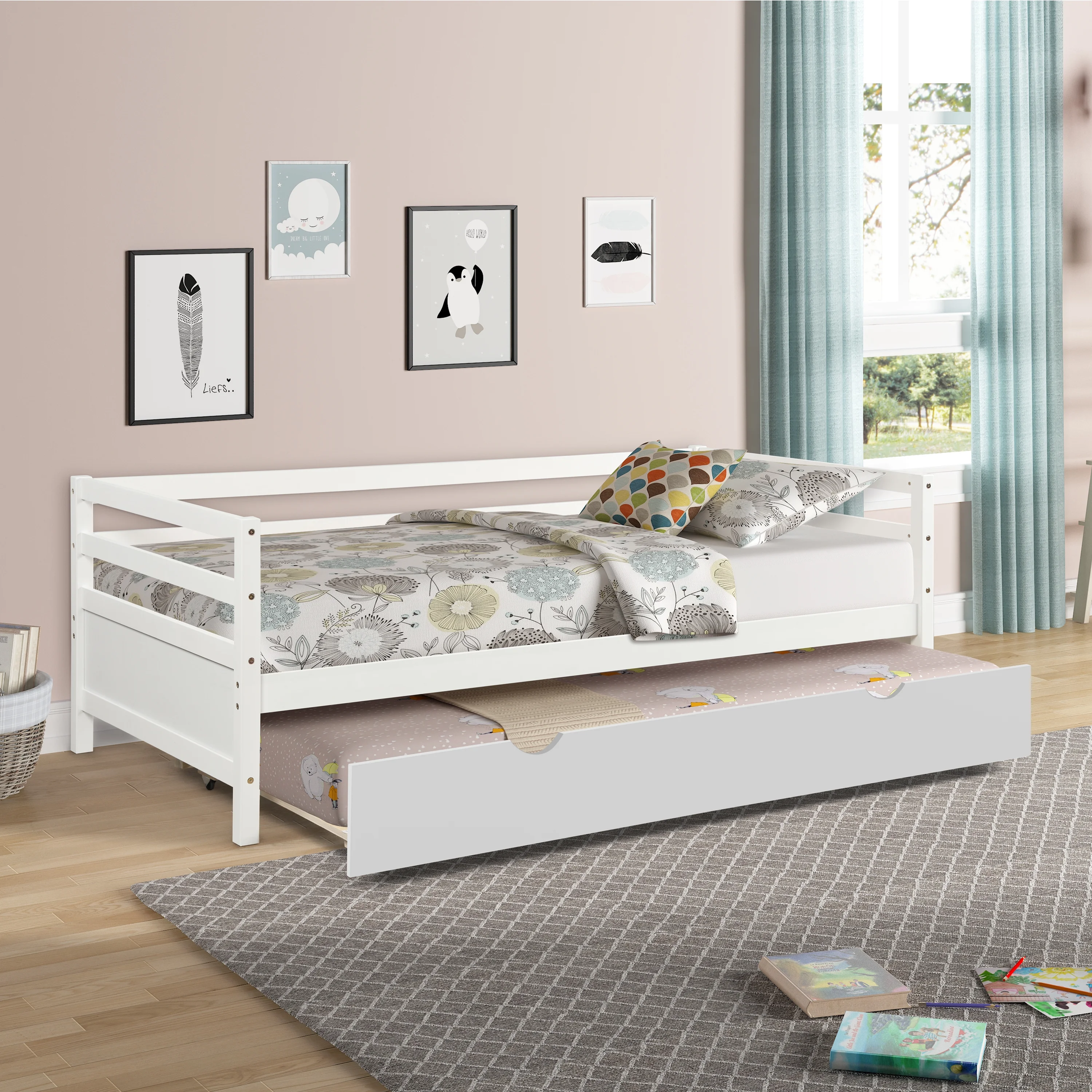 CoSoTower Full Size Floor Wooden Bed with House Roof Frame, Fence Guardrails , White