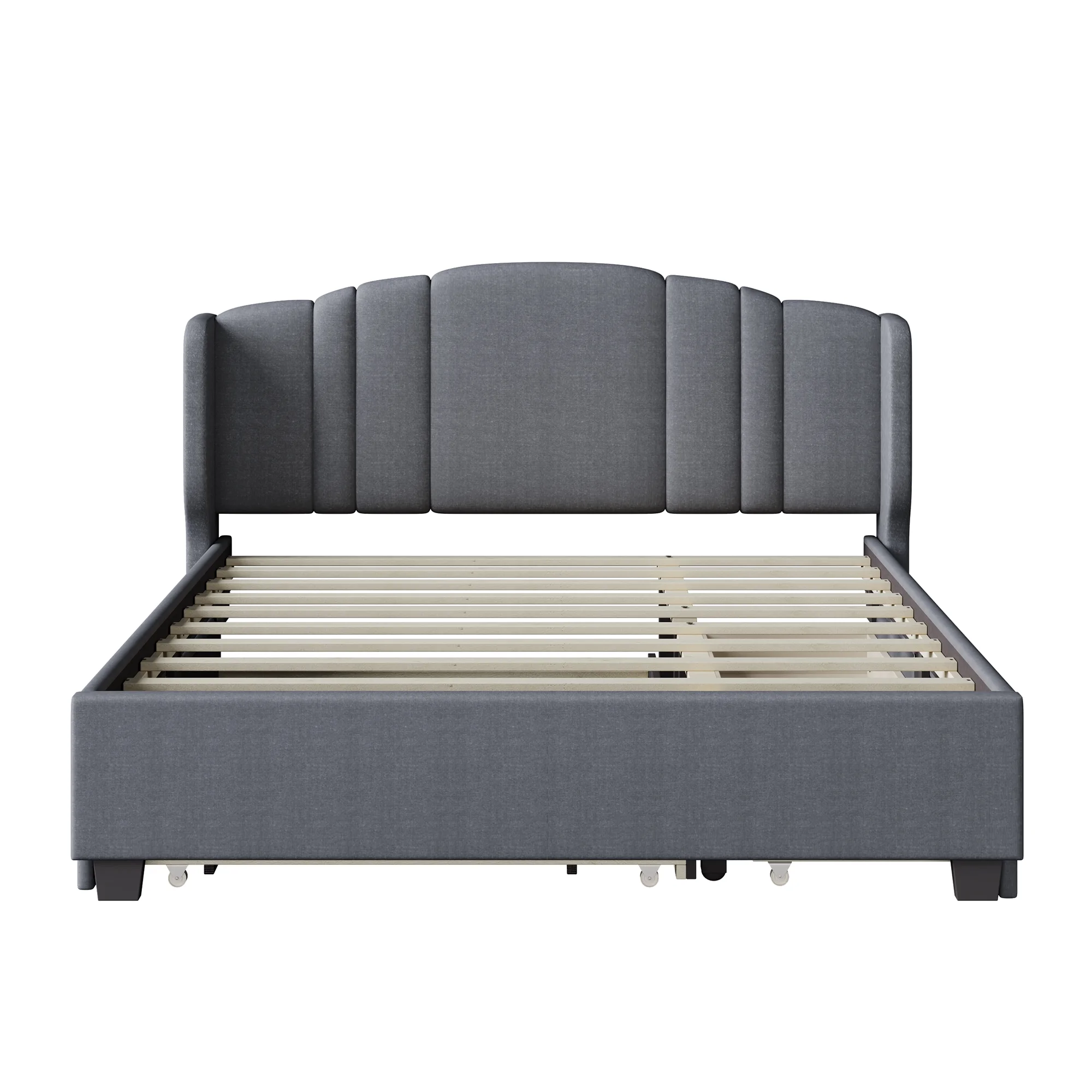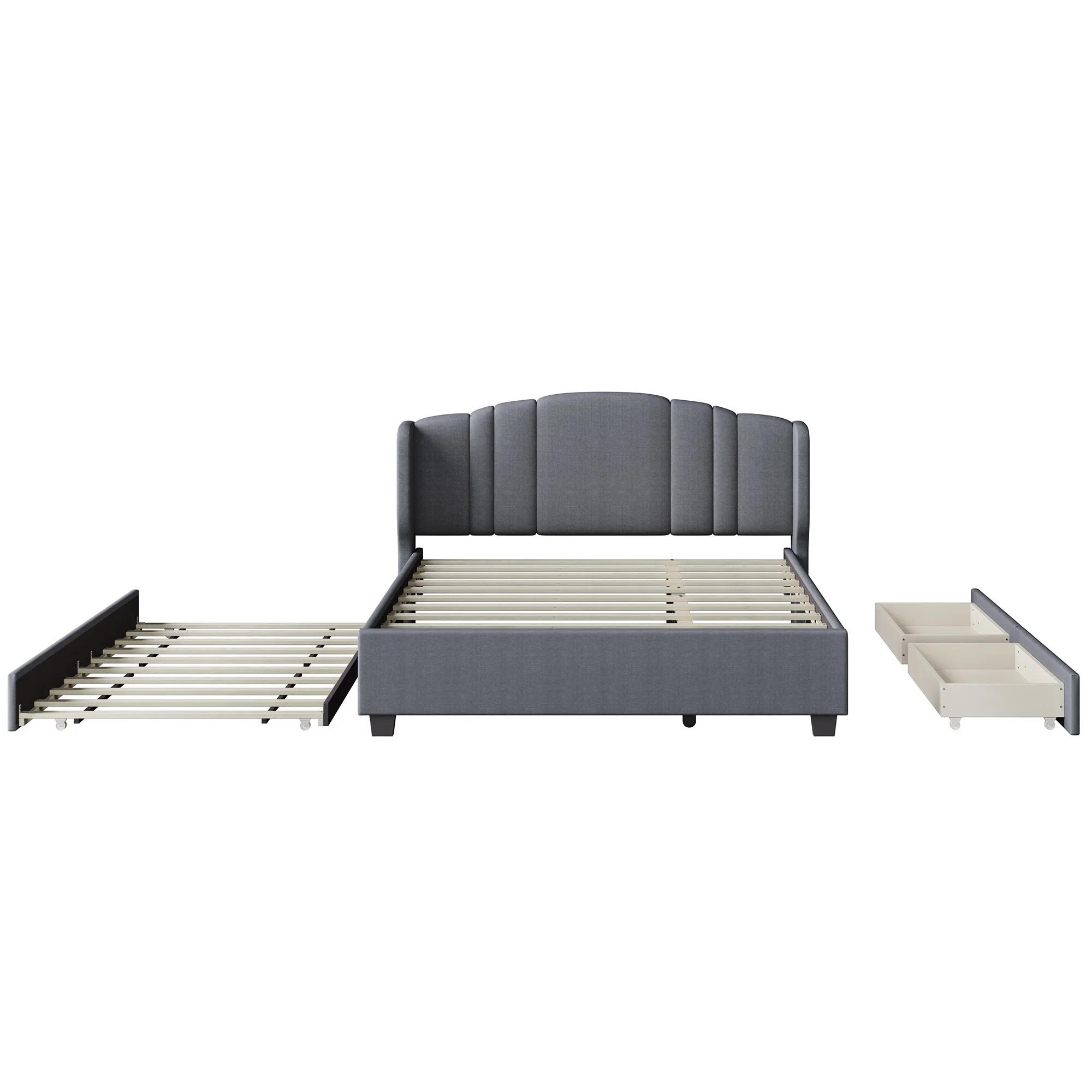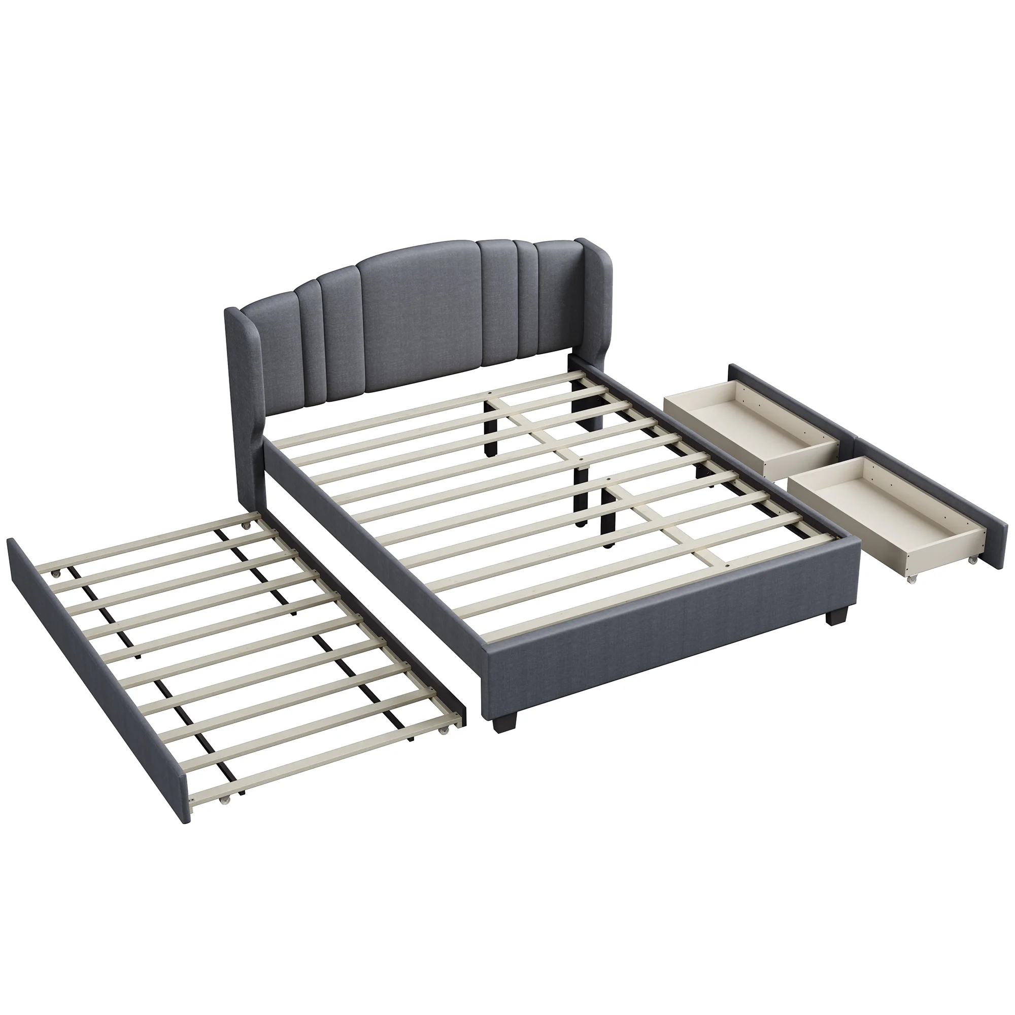 CoSoTower Modern Design Twin Size Platform Bed Frame with Trundle for Grey Color