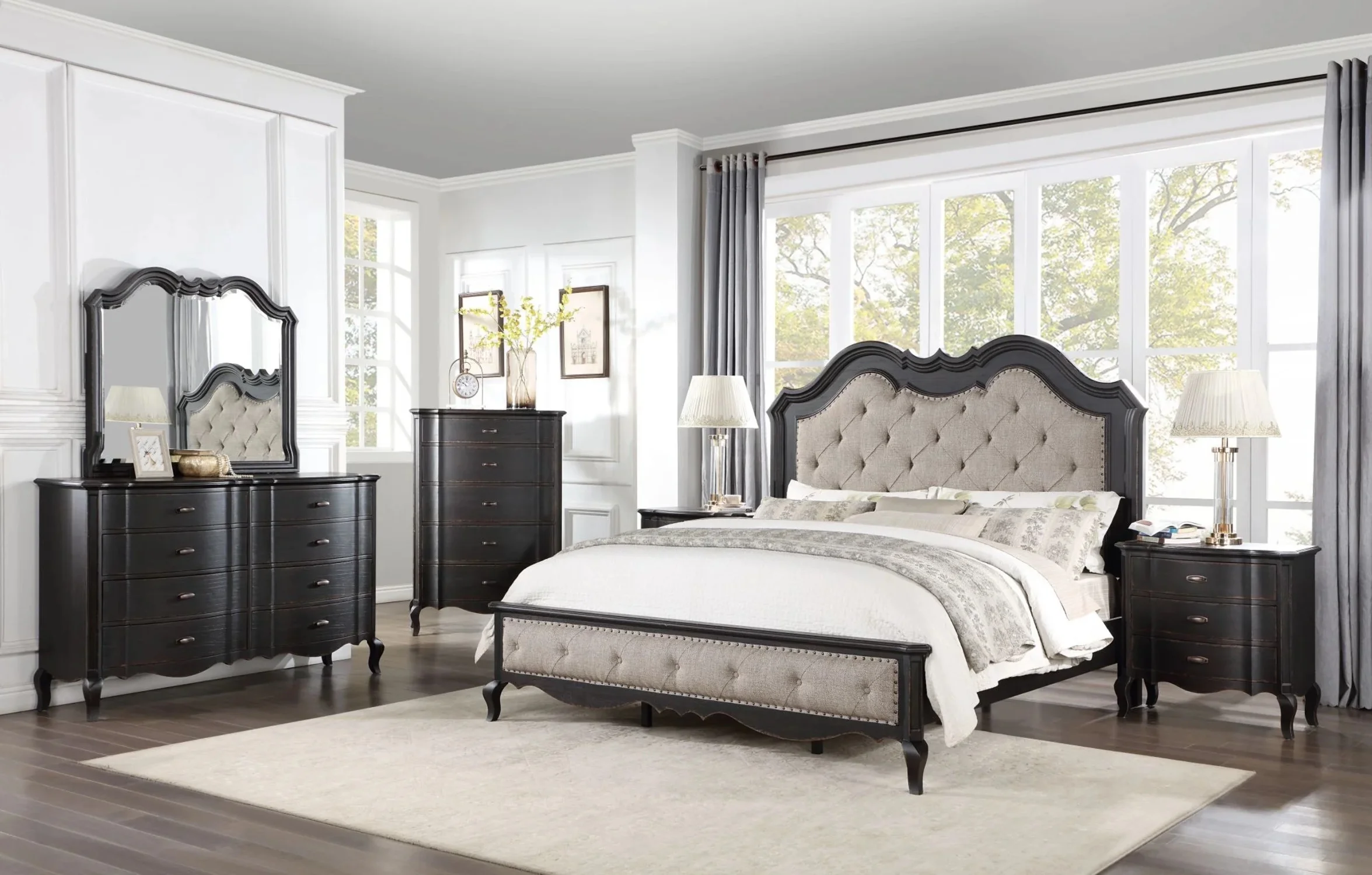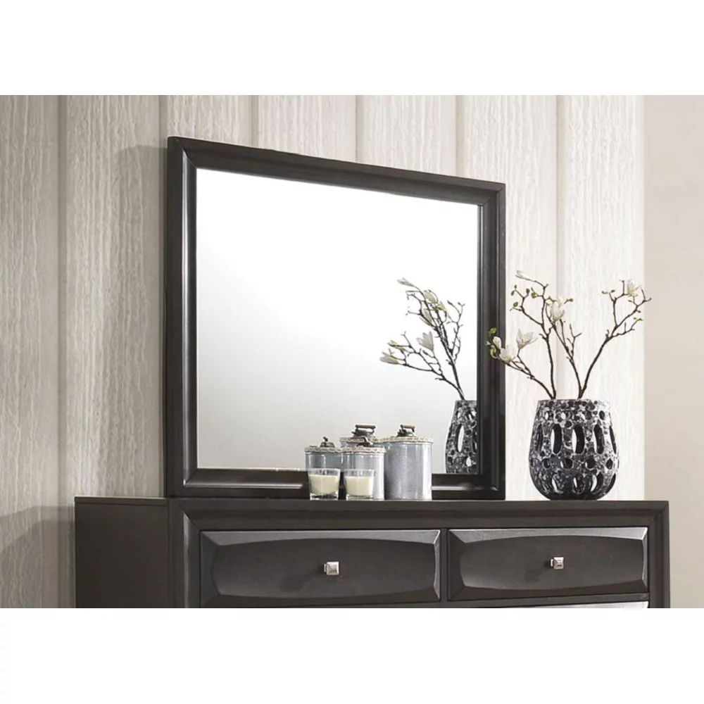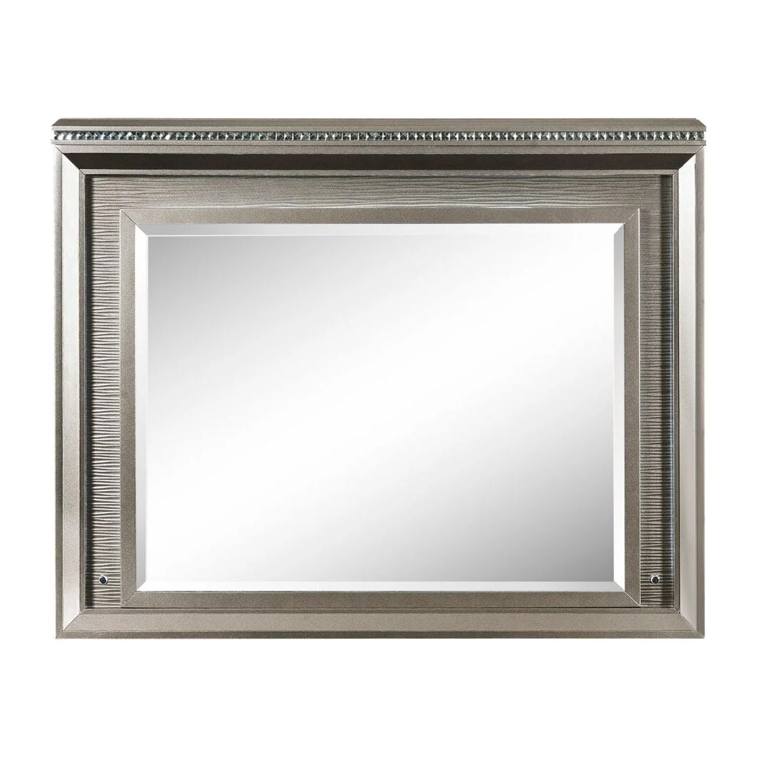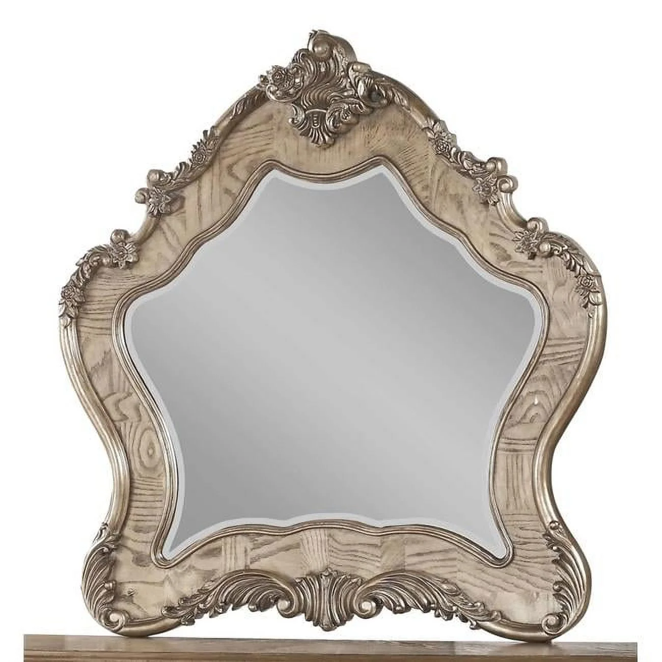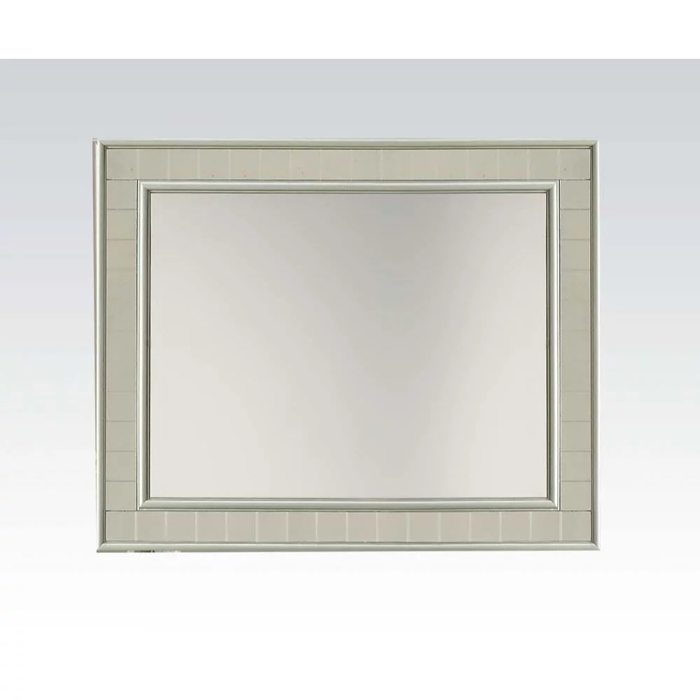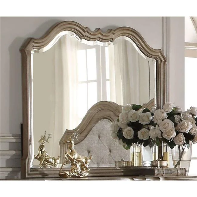 Acme Furniture Jaqueline Mirror in Light Gray Linen & Antique White Finish