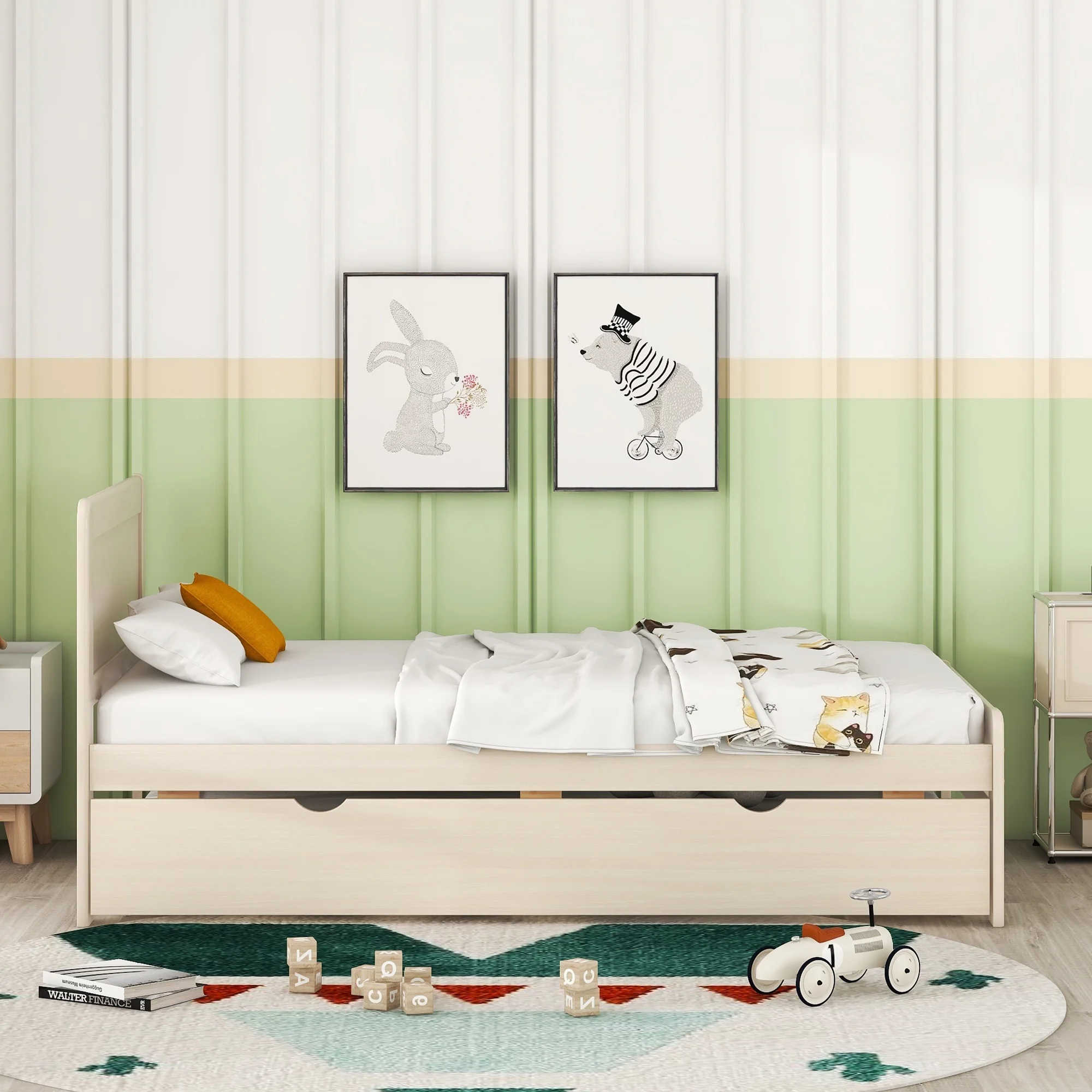 CoSoTower Modern Design Twin Size Platform Bed Frame with Trundle for White Washed Color